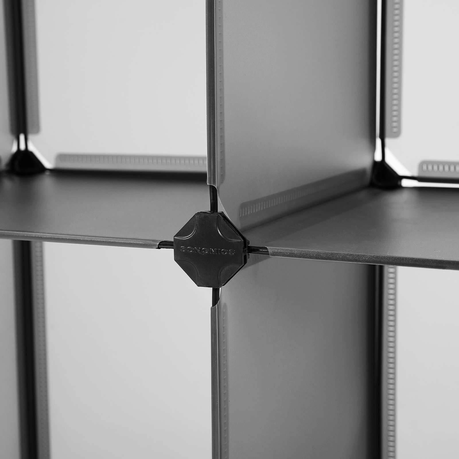 Mukautettavissa tarpeisiisi: Voit rakentaa ja laajentaa tätä hyllyjärjestelmää eri muodoissa mukana toimitettujen varaosaliittimien avulla, jotta se sopii tiloihisi. Anna mielikuvituksesi lentää ja löydä lisää mahdollisuuksia tämän tyylikkään harmaan kenkähyllyn avulla! Tuotetiedot: