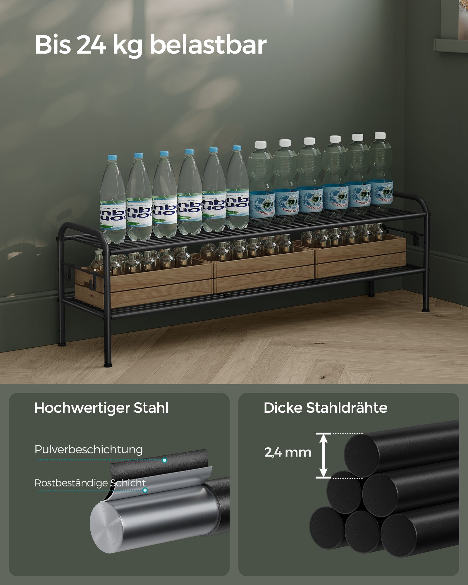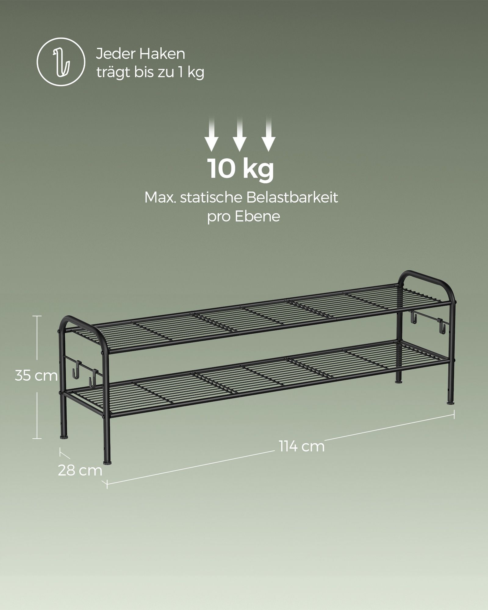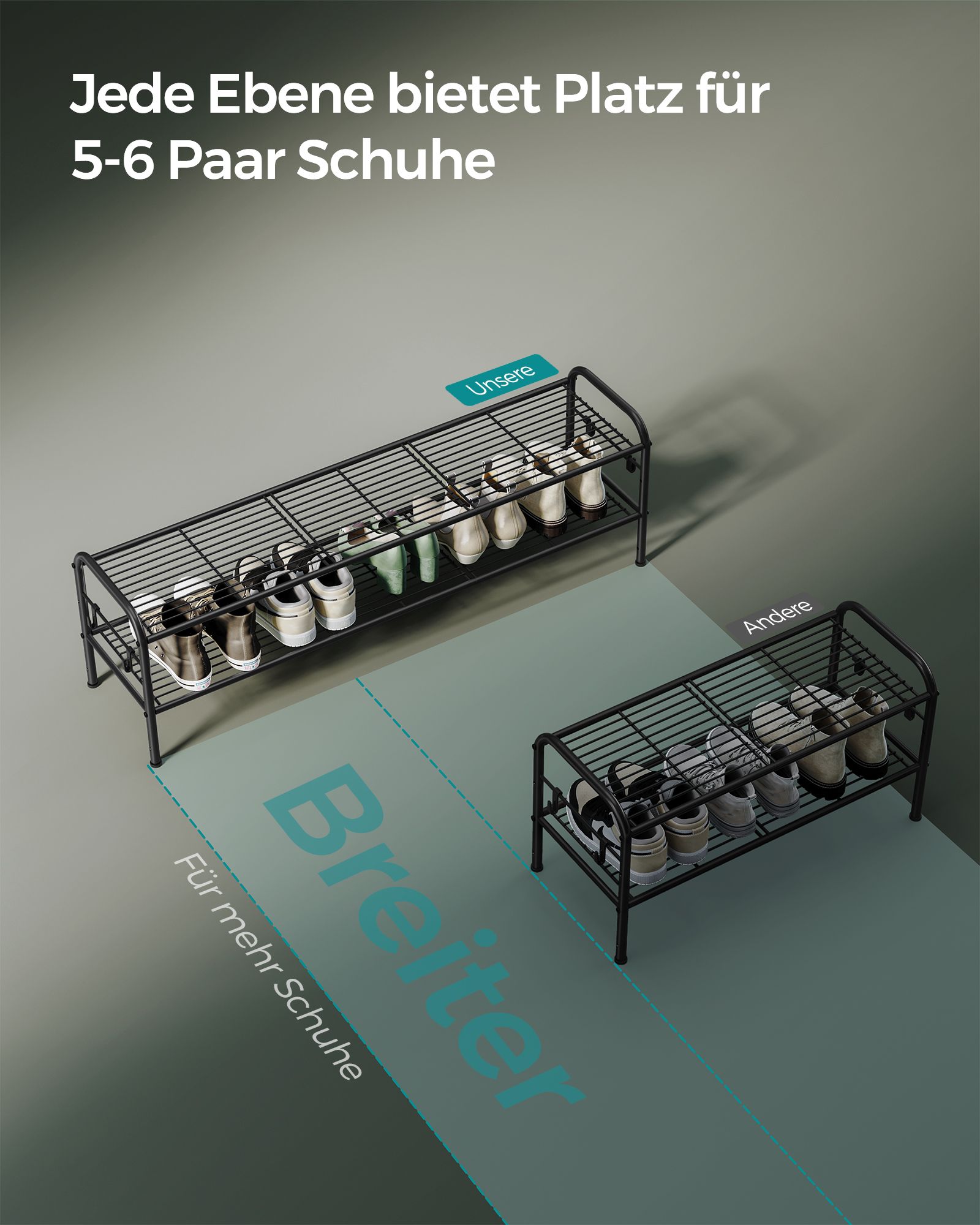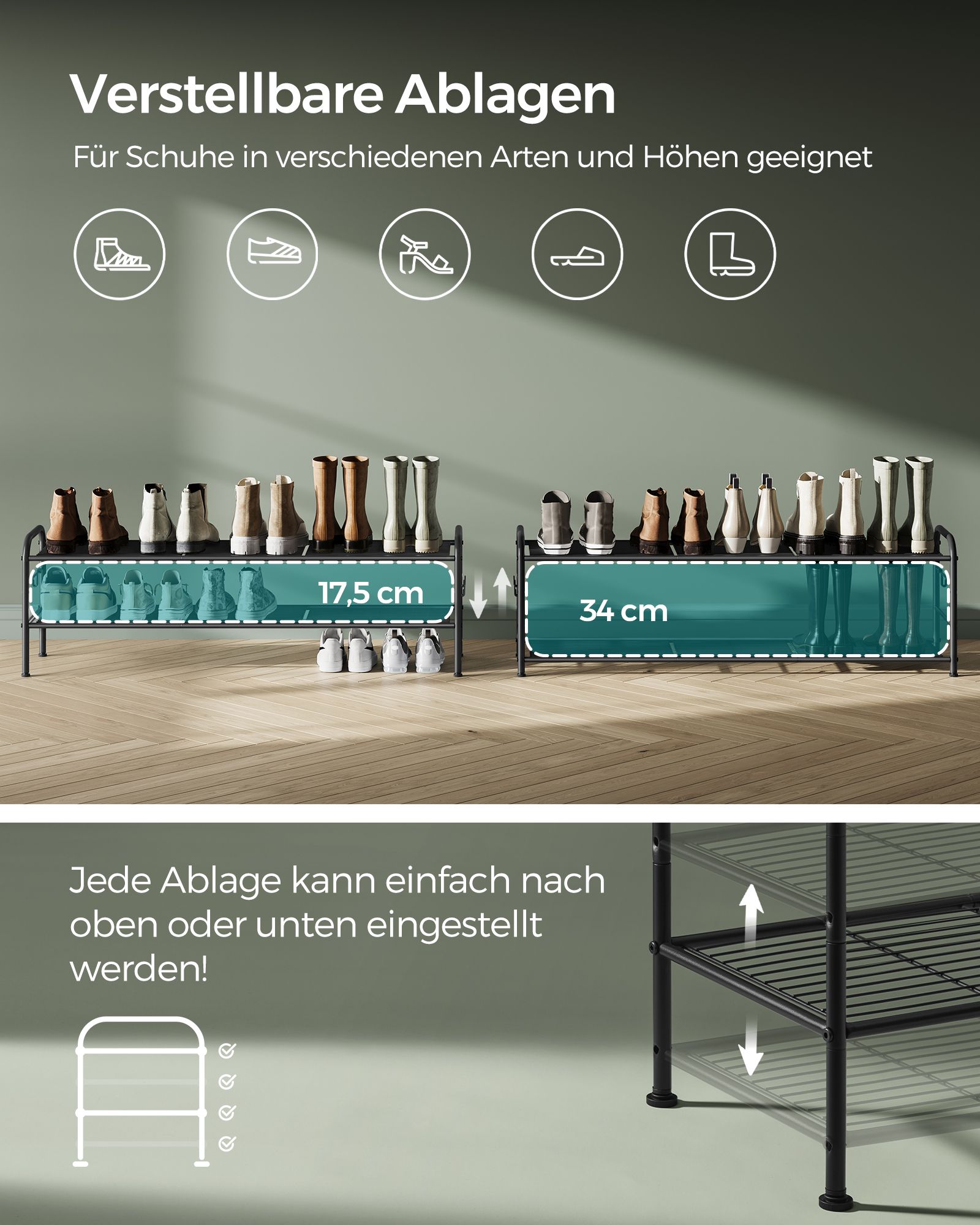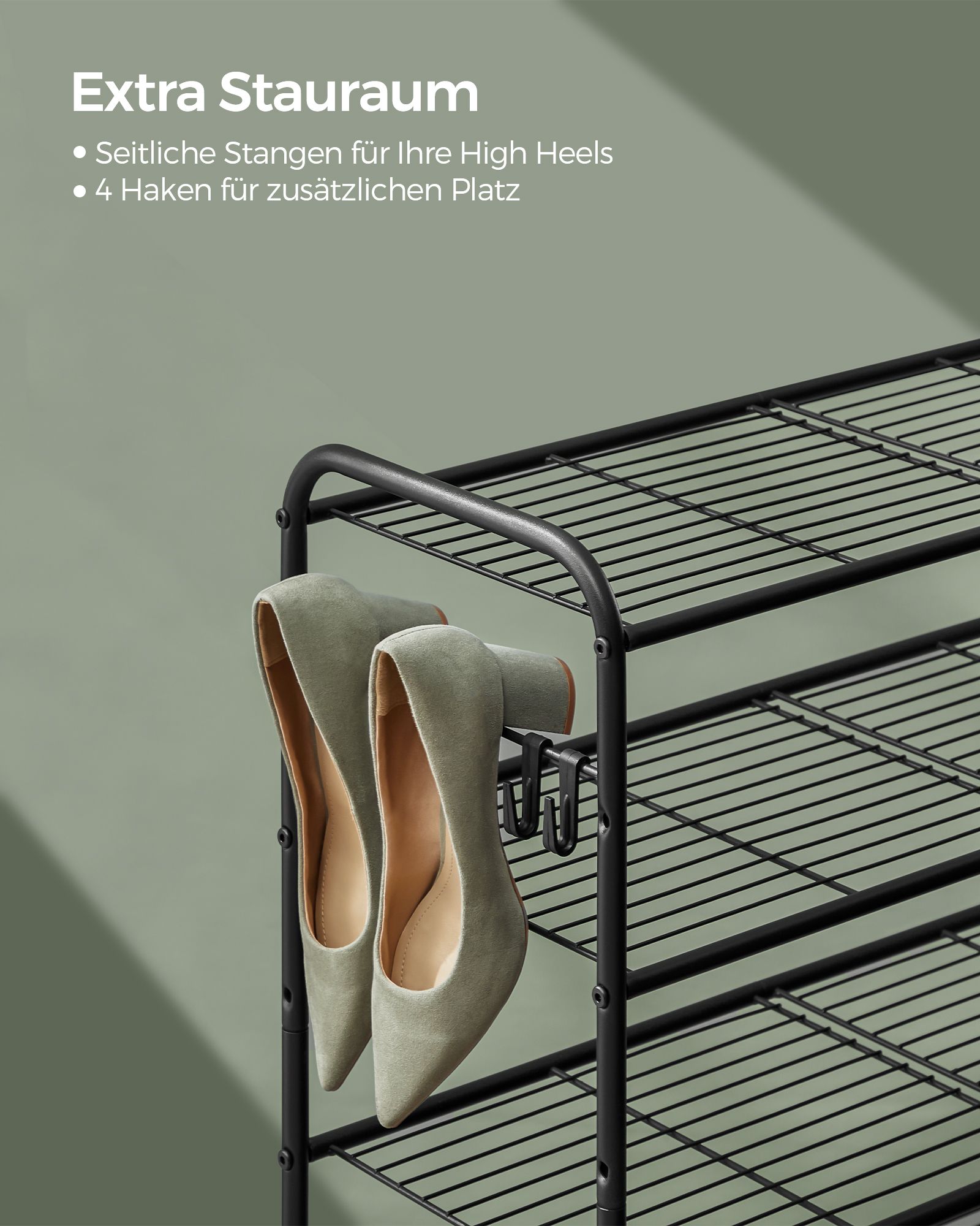 SONGMICS kenkähylly, 3-tasoinen kenkäteline, metallihylly 4 sivukoukulla, 12 parille kenkiä, korkeussäädettävä hylly, eteiseen, vaatehuoneeseen, helppo asentaa
