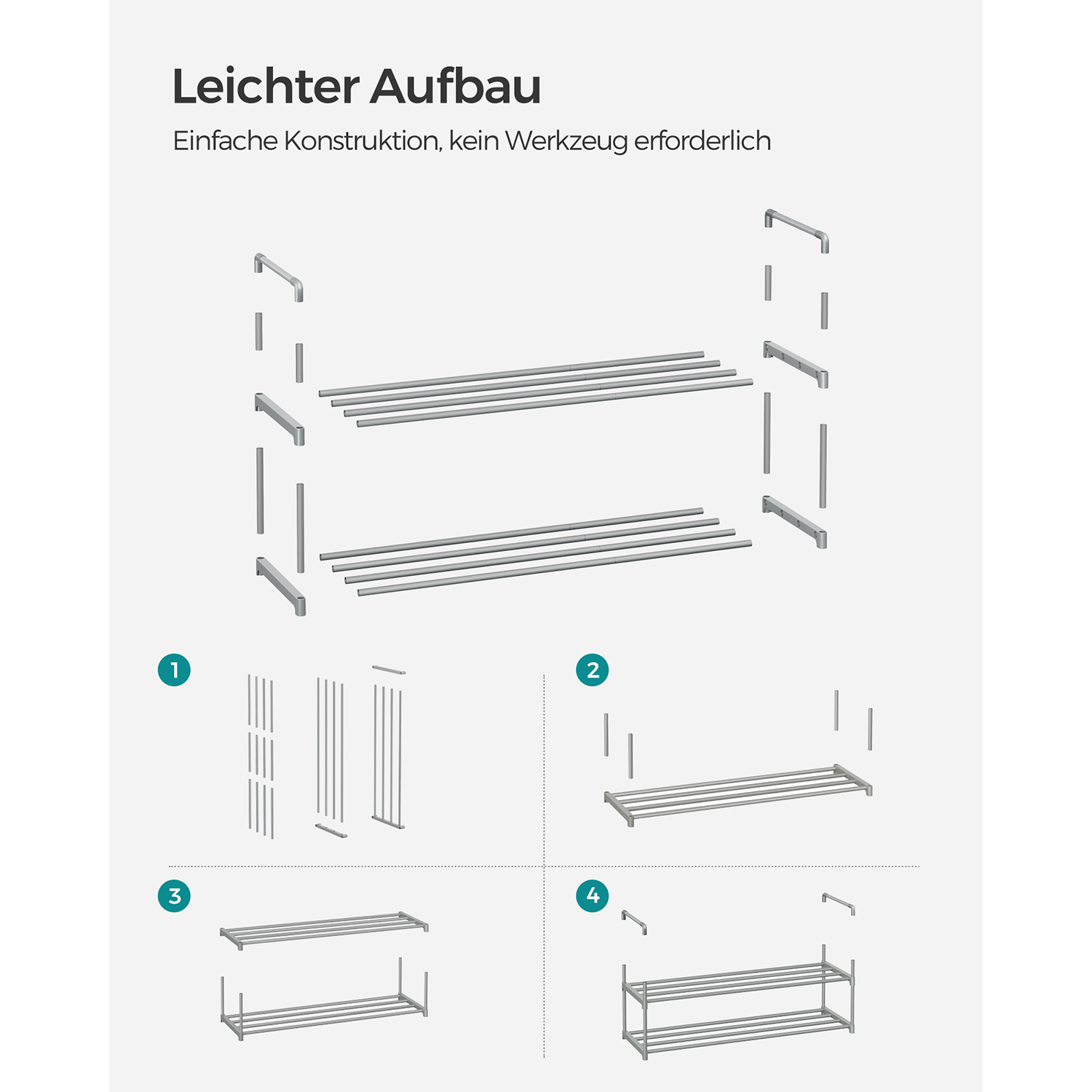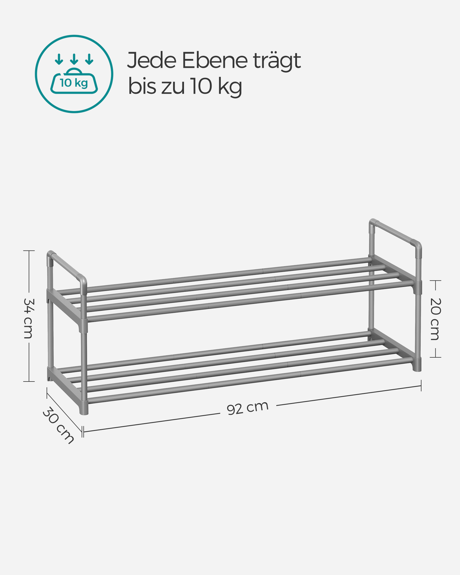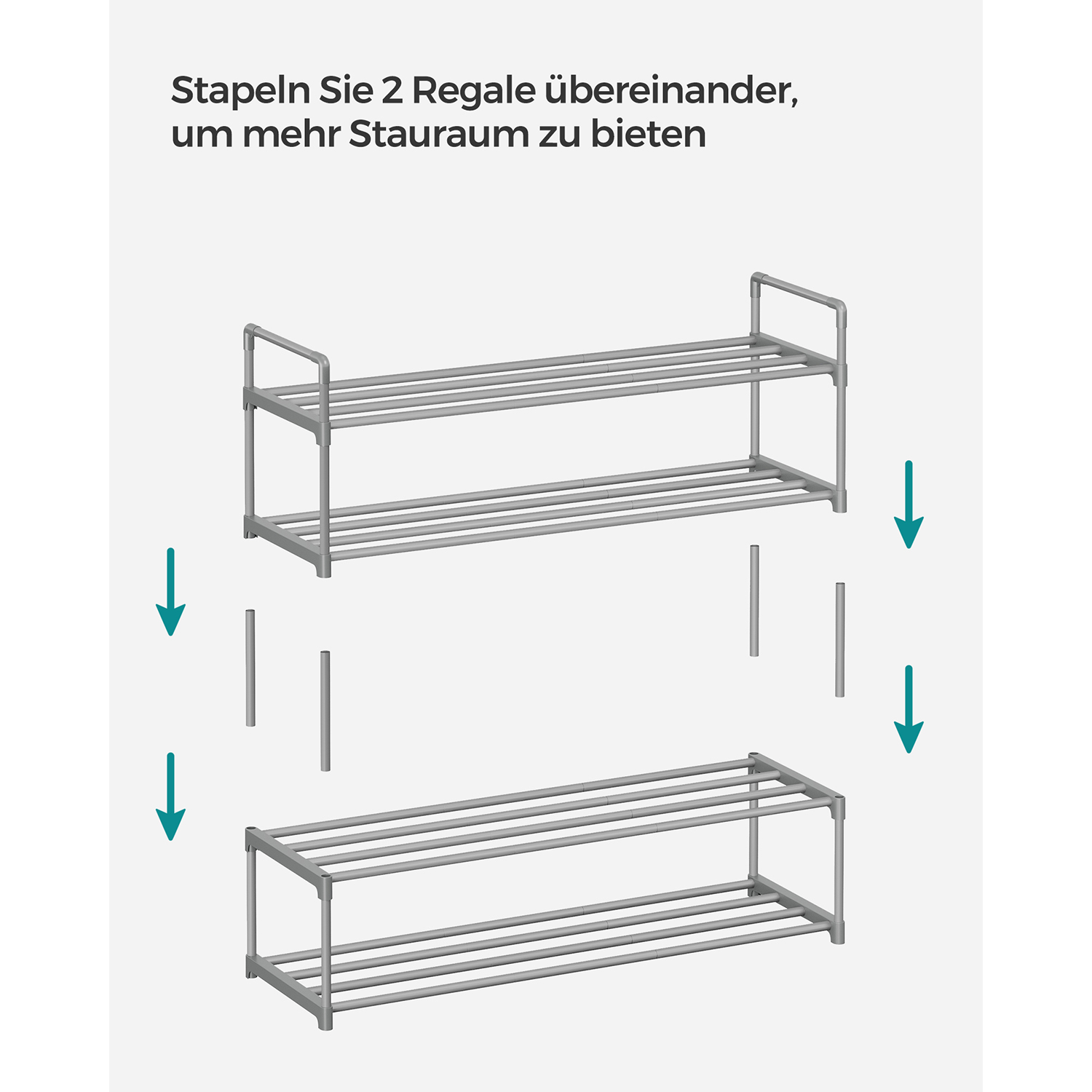 SONGMICS kenkähylly kenkäteline, 4 hyllyä, mahtuu jopa 20 kenkää, harmaa 92 x 74 x 30 cm (L x K x S) LSA14G, metalli, 92 x 30 x 74 cm