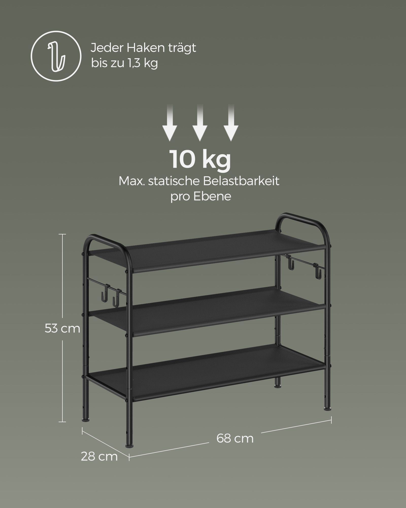 SONGMICS kenkähylly, kenkäteline, tasot, kangashylly, sivukoukut, korkeussäädettävä hylly, eteisen vaatekaappi, helppo asentaa