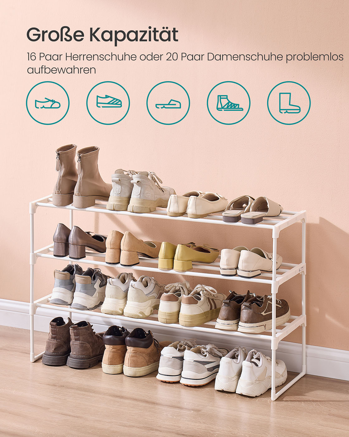 SONGMICS kenkähylly 4 tasoa, metallinen kenkäteline, kenkien säilytys, kenkien järjestelijä, pystyssä tai ylösalaisin, 5–10 parille kenkiä, pinottava, eteinen, 30 x 42,5 x 71,5 cm, musta LSA004B01