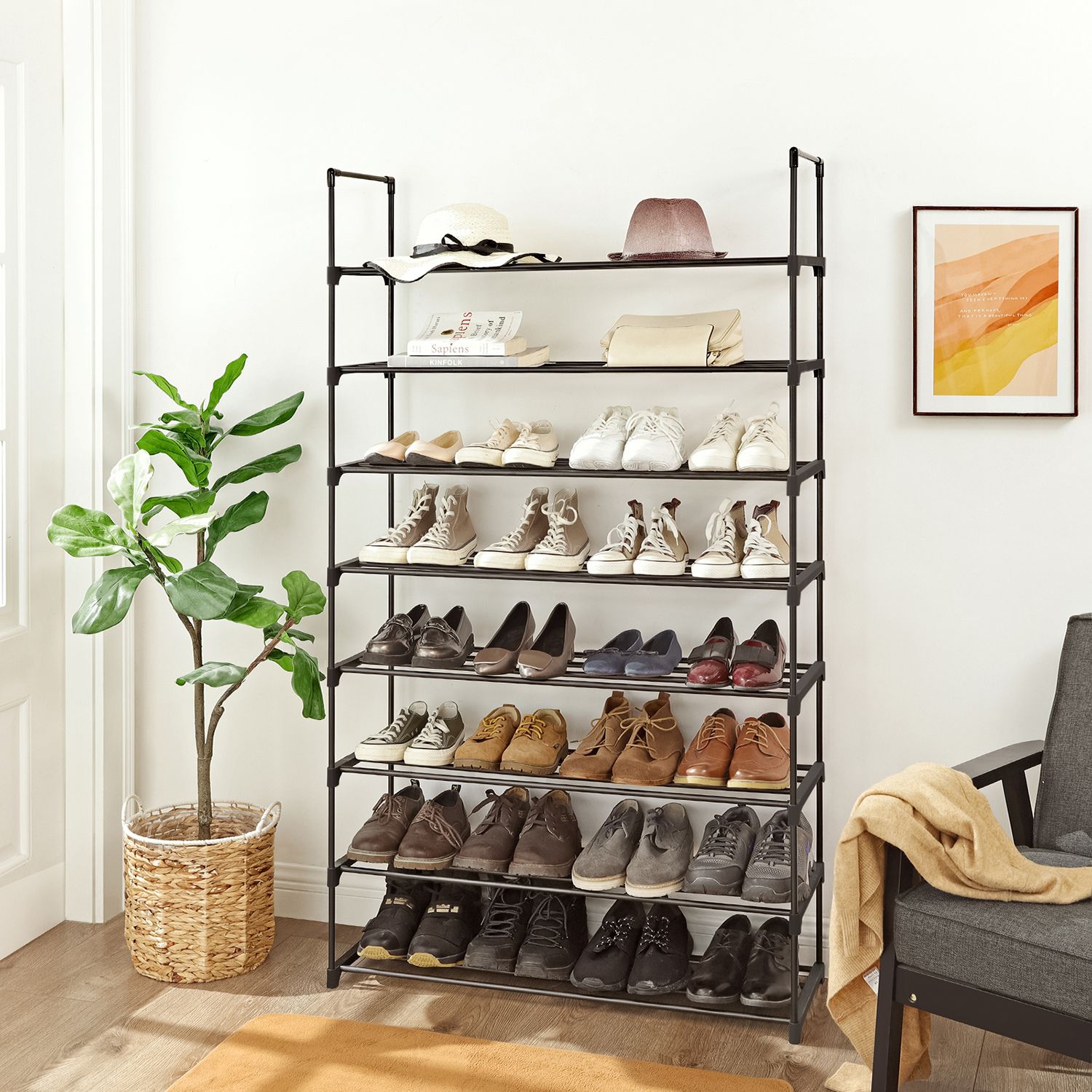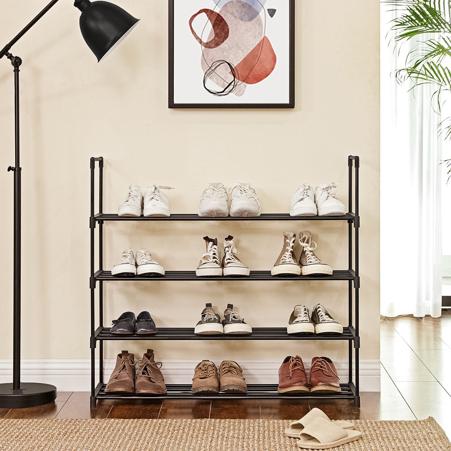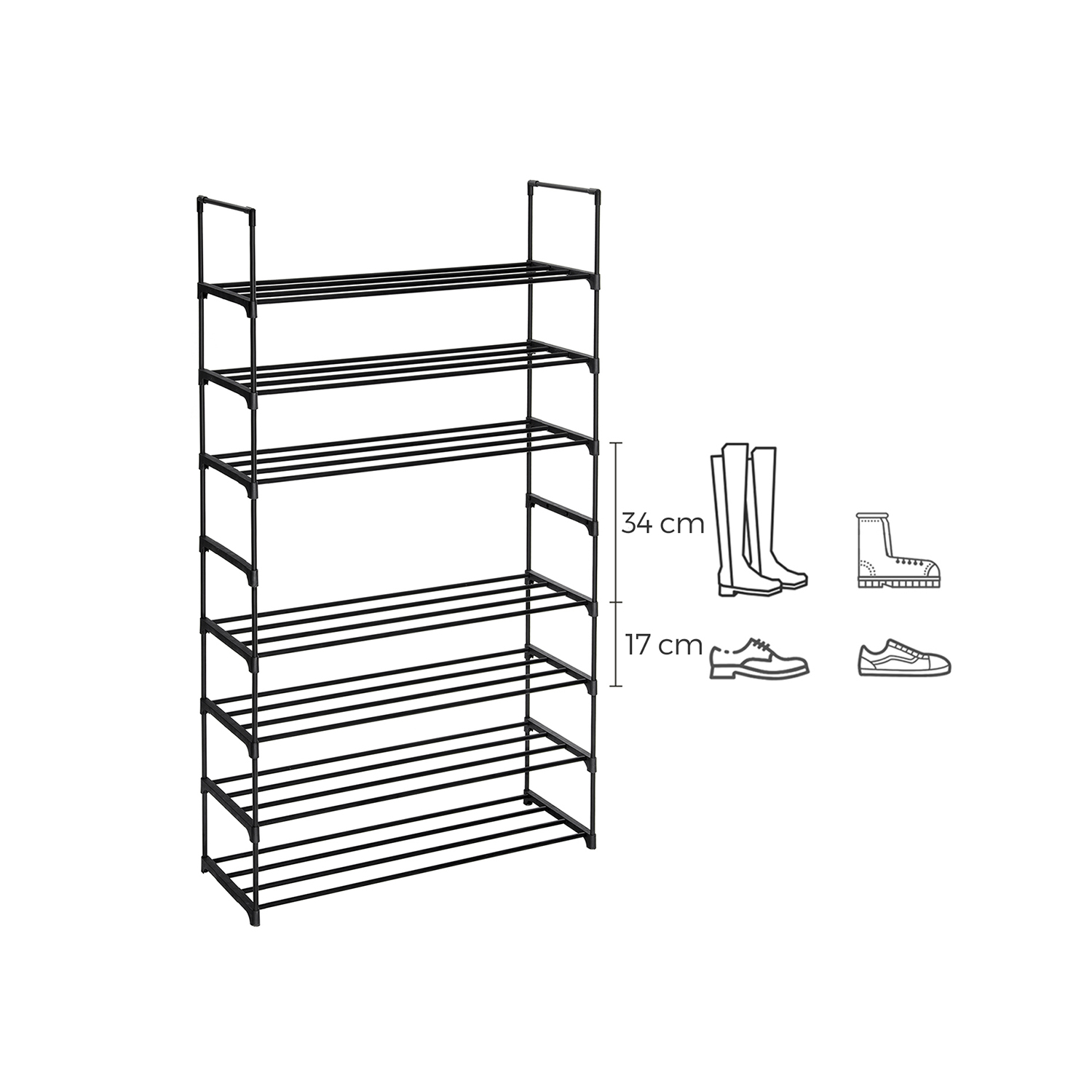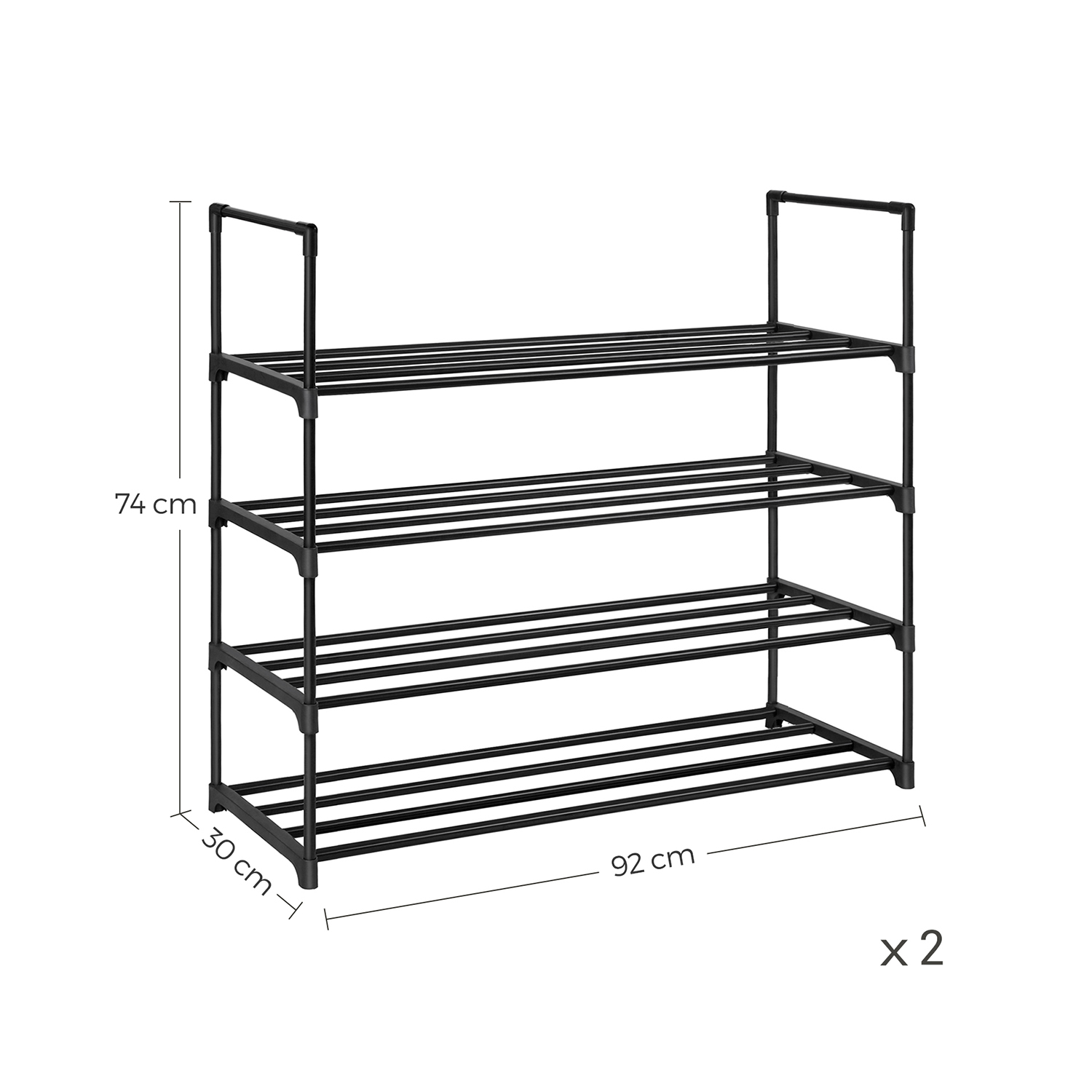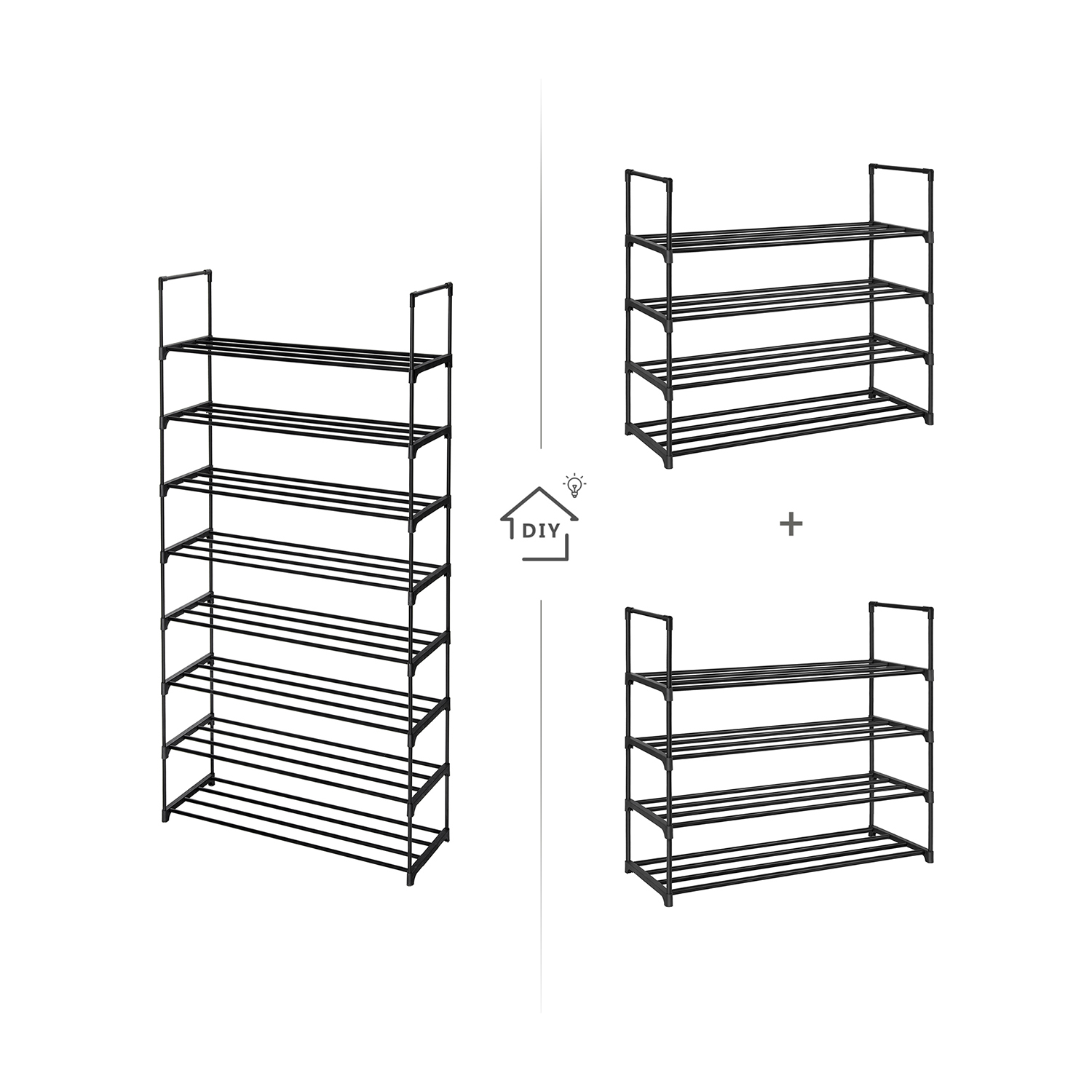 SONGMICS kenkähylly, 2 kpl, kenkäorganisaattori, 3 hyllytasoa, metallinen kenkäsäilytys, 24–30 parille kenkiä, pinottava, olohuoneeseen, eteiseen, sisäänkäyntiin, musta LSA06BK