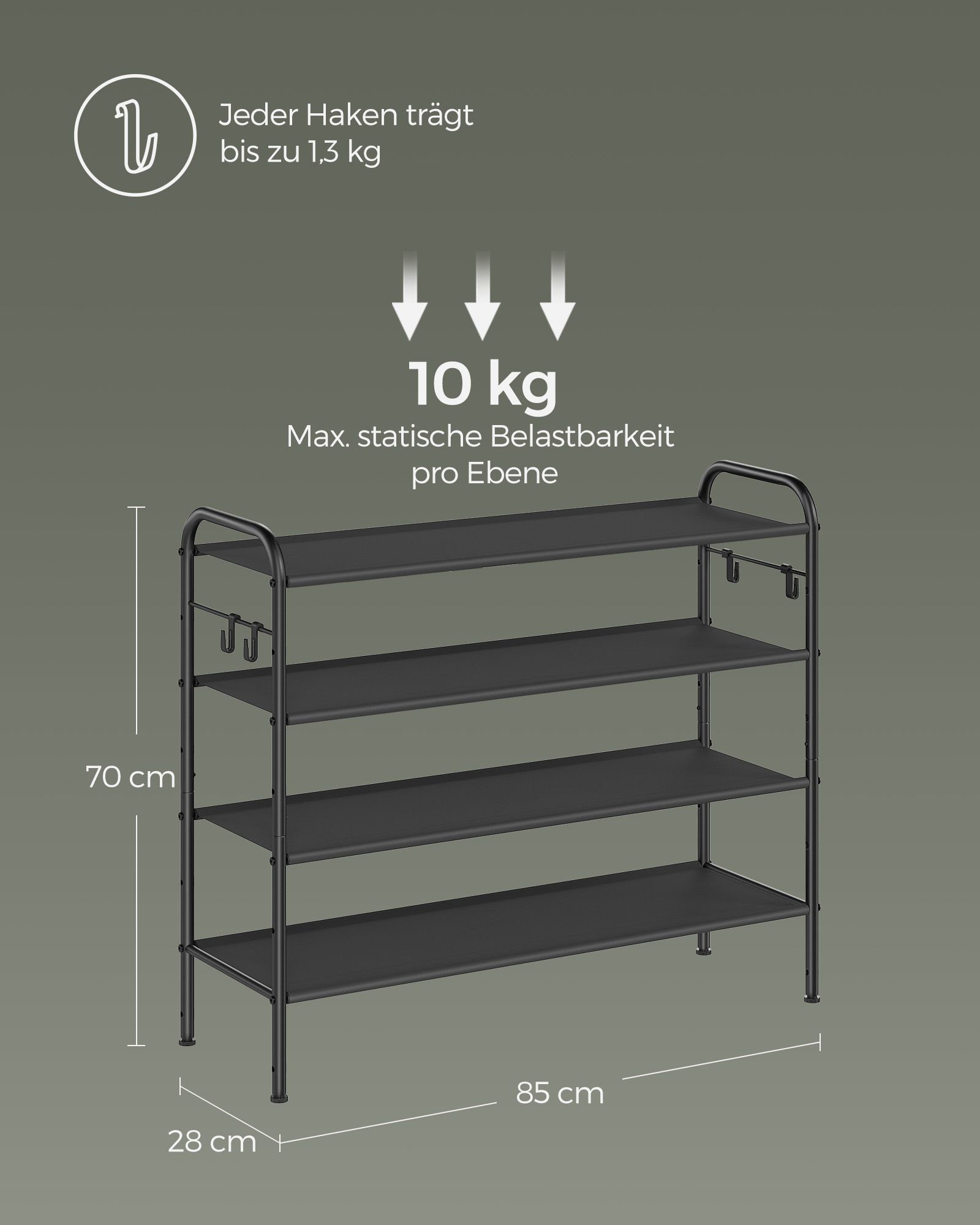 Maks. staattinen kantavuus tasoa kohti: 10 kg