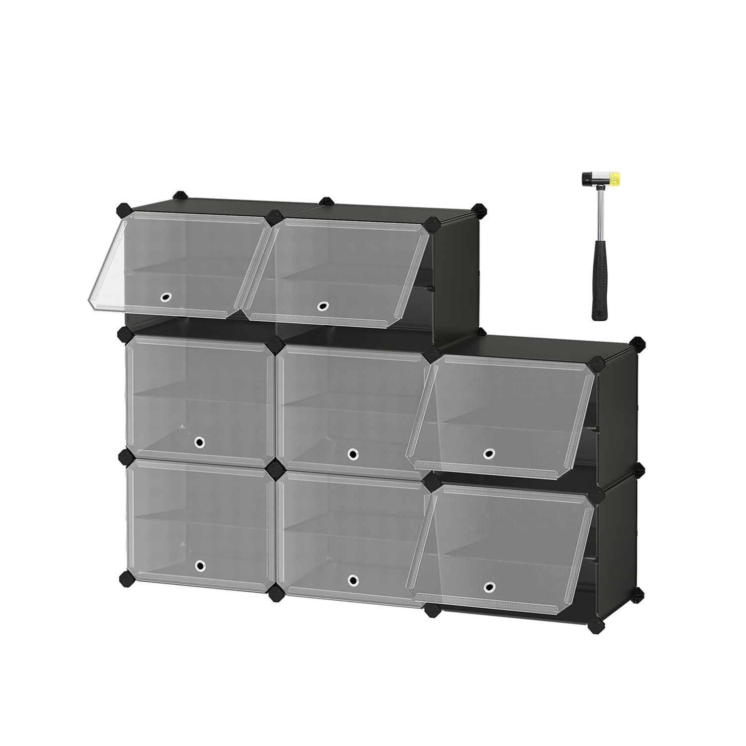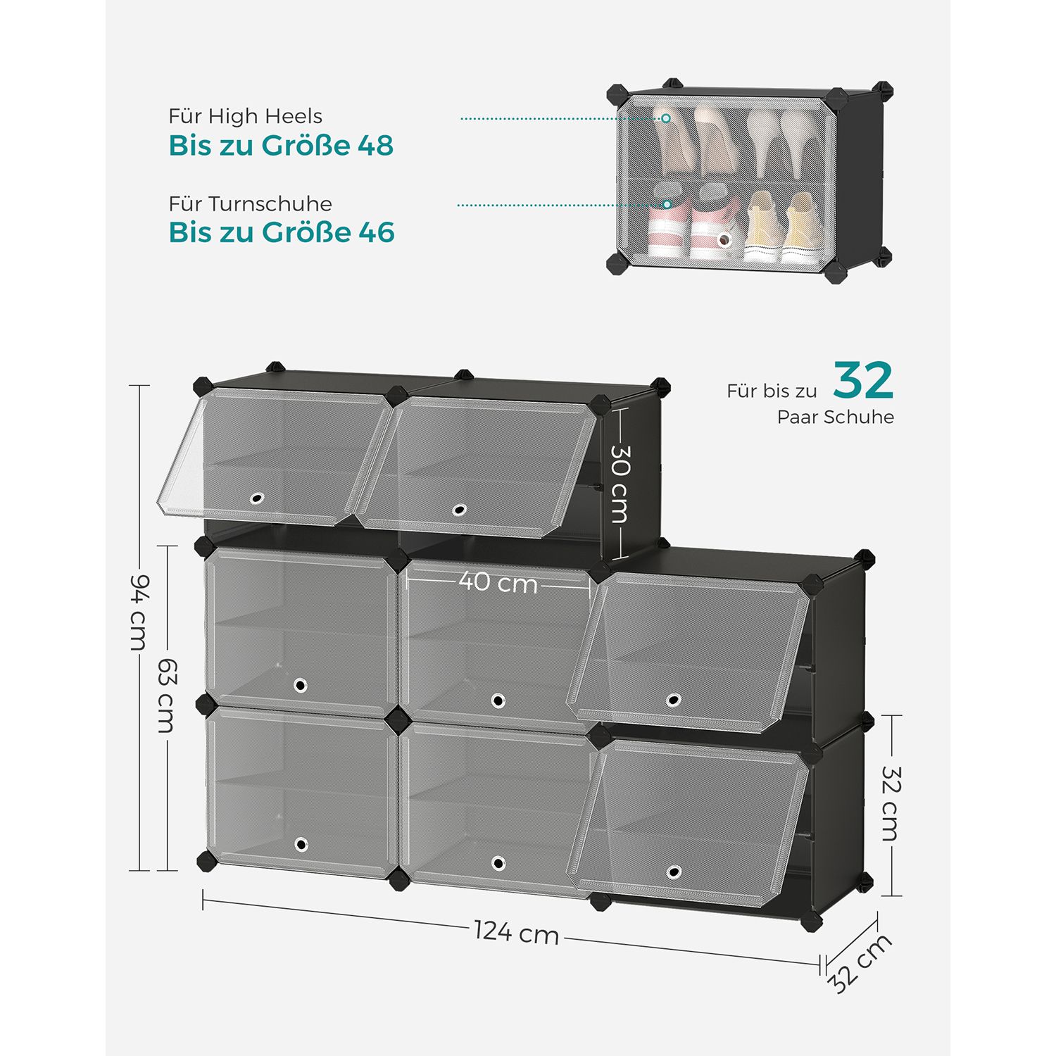 SONGMICS kenkähylly 8 lokerolla, kenkäkaappi, 30 x 40 x 30 cm per lokero, kapea, ovet, teräsrunko, muovi, eteiseen, makuuhuoneeseen, sisäänkäyntialueelle, musta LPC034B01