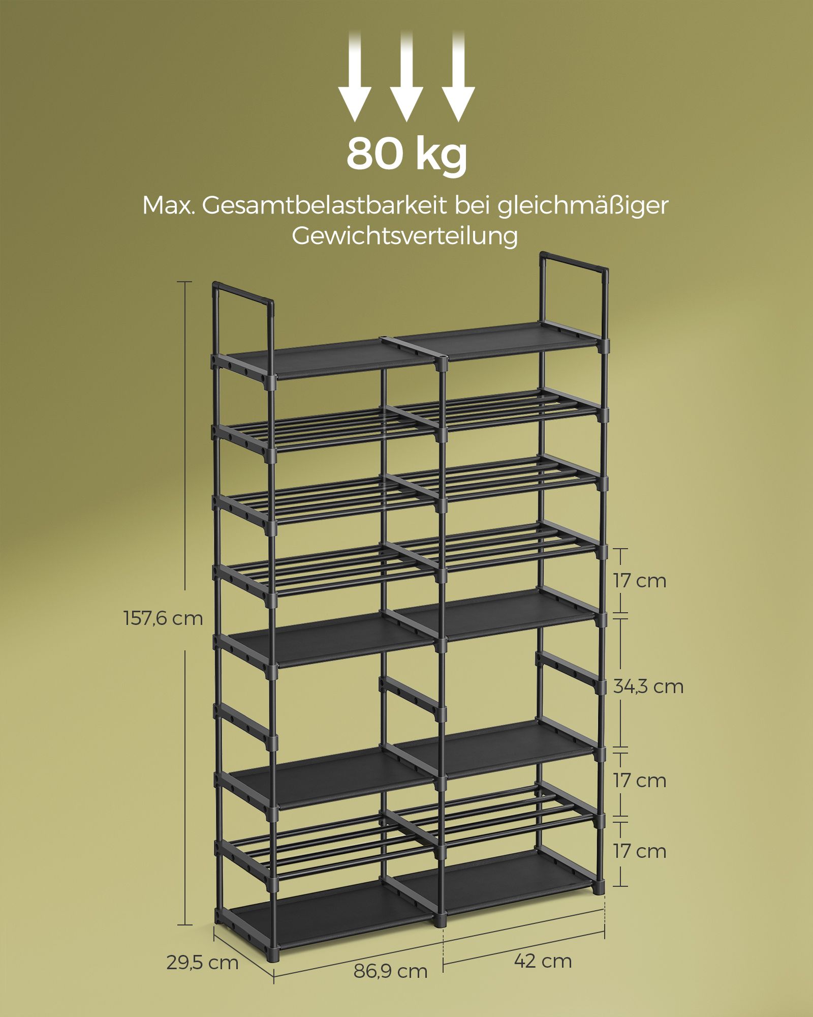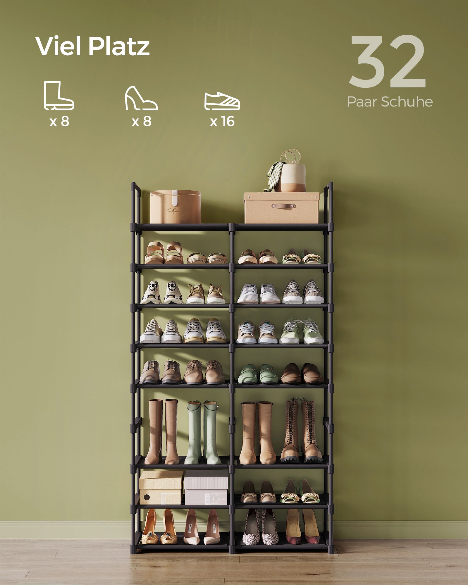 SONGMICS säädettävä kenkäteline, kenkäteline tasoilla, säilytysteline, teräsputket, kuitukangas, jopa parille kenkiä, tilaa säästävä, eteiseen, vaatehuoneeseen, autotalliin