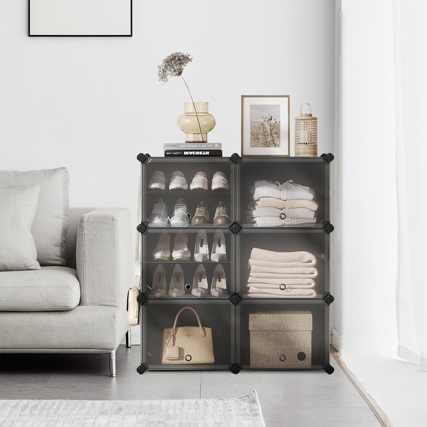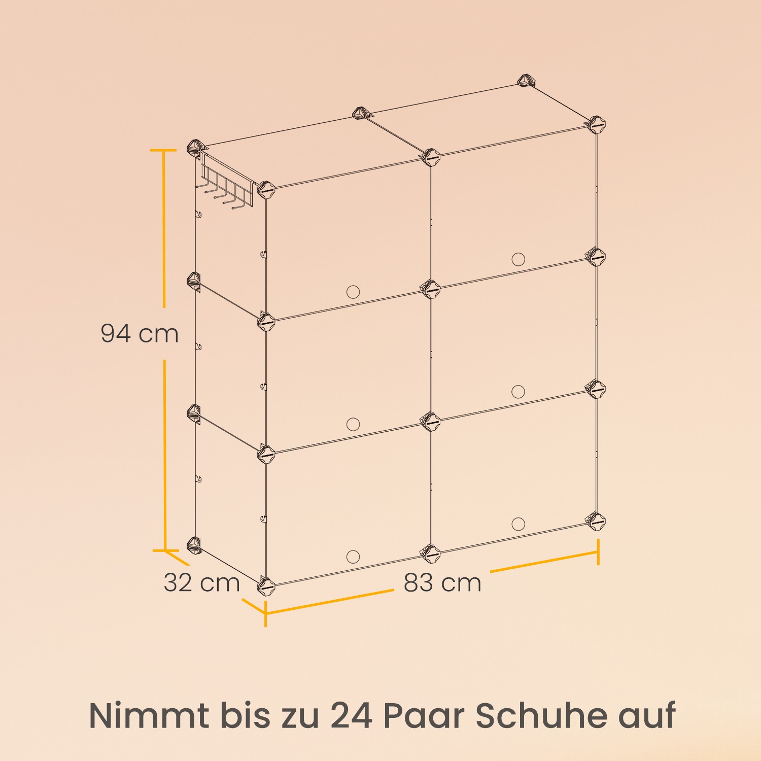Kenkähylly 12 lokerolla, kenkäkaappi, 30 x 40 x 30 cm per lokero, kapea, ovet, teräsrunko, muovi, valkoinen