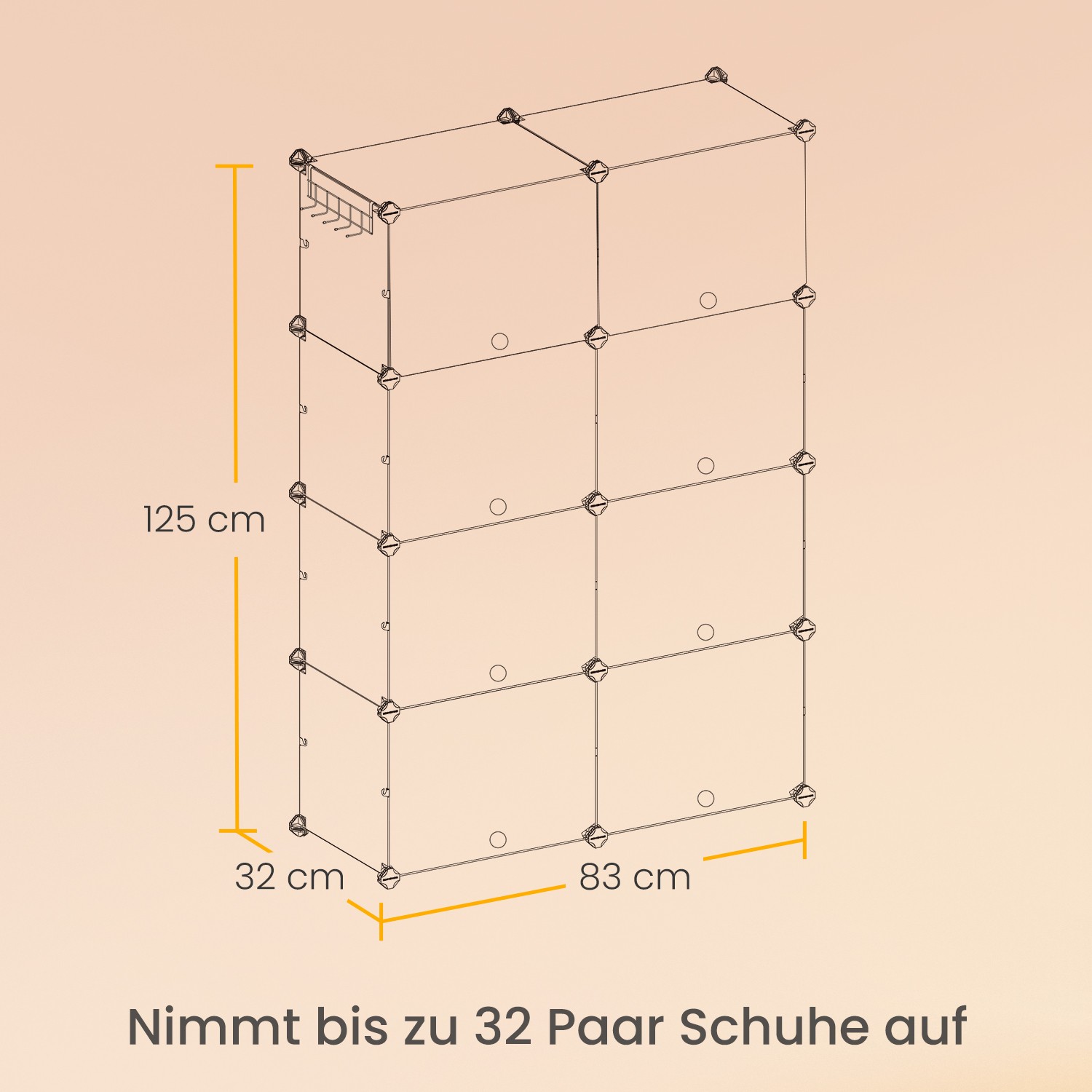 – 2 rivin mitat: 32 x 124 x 94 cm (S x L x K)