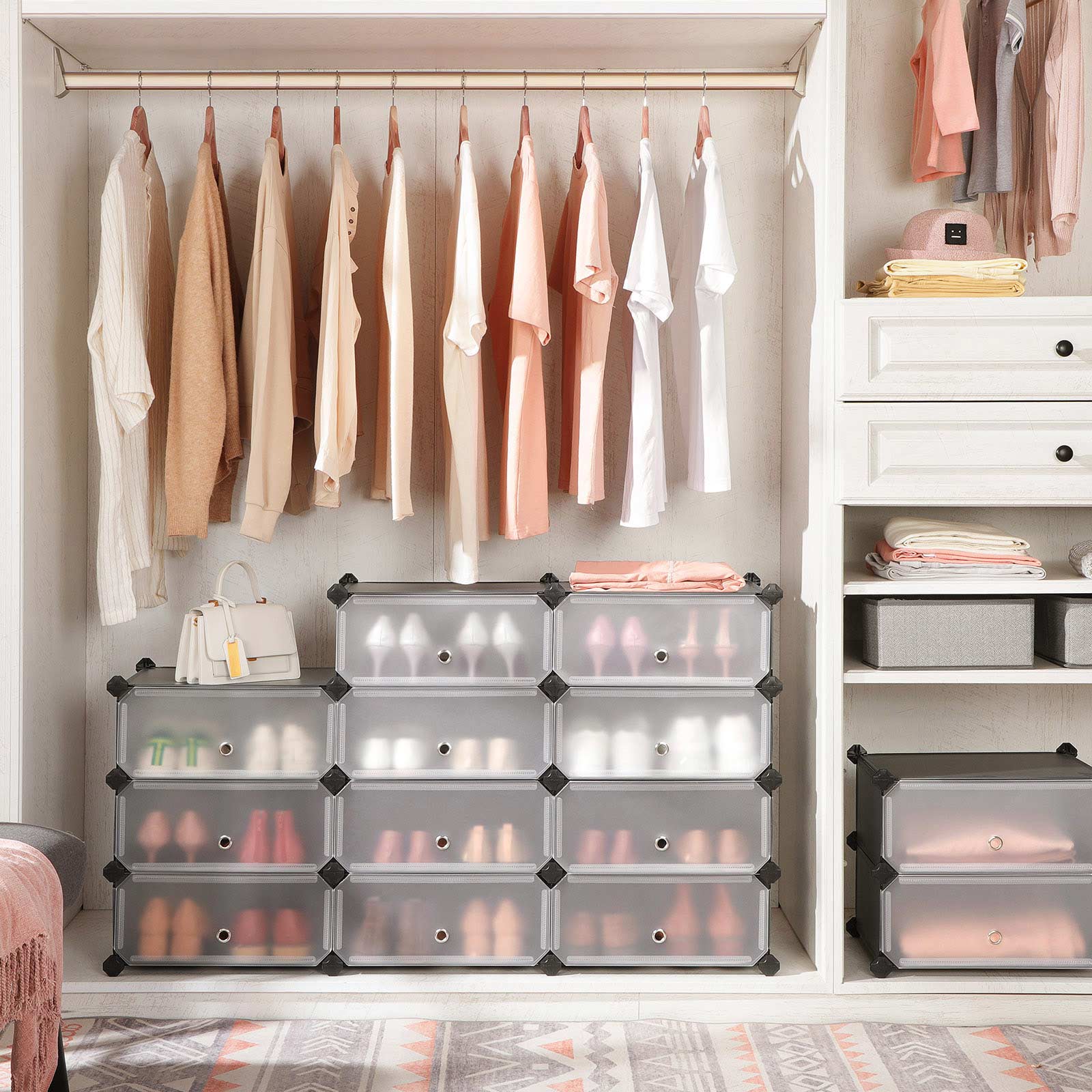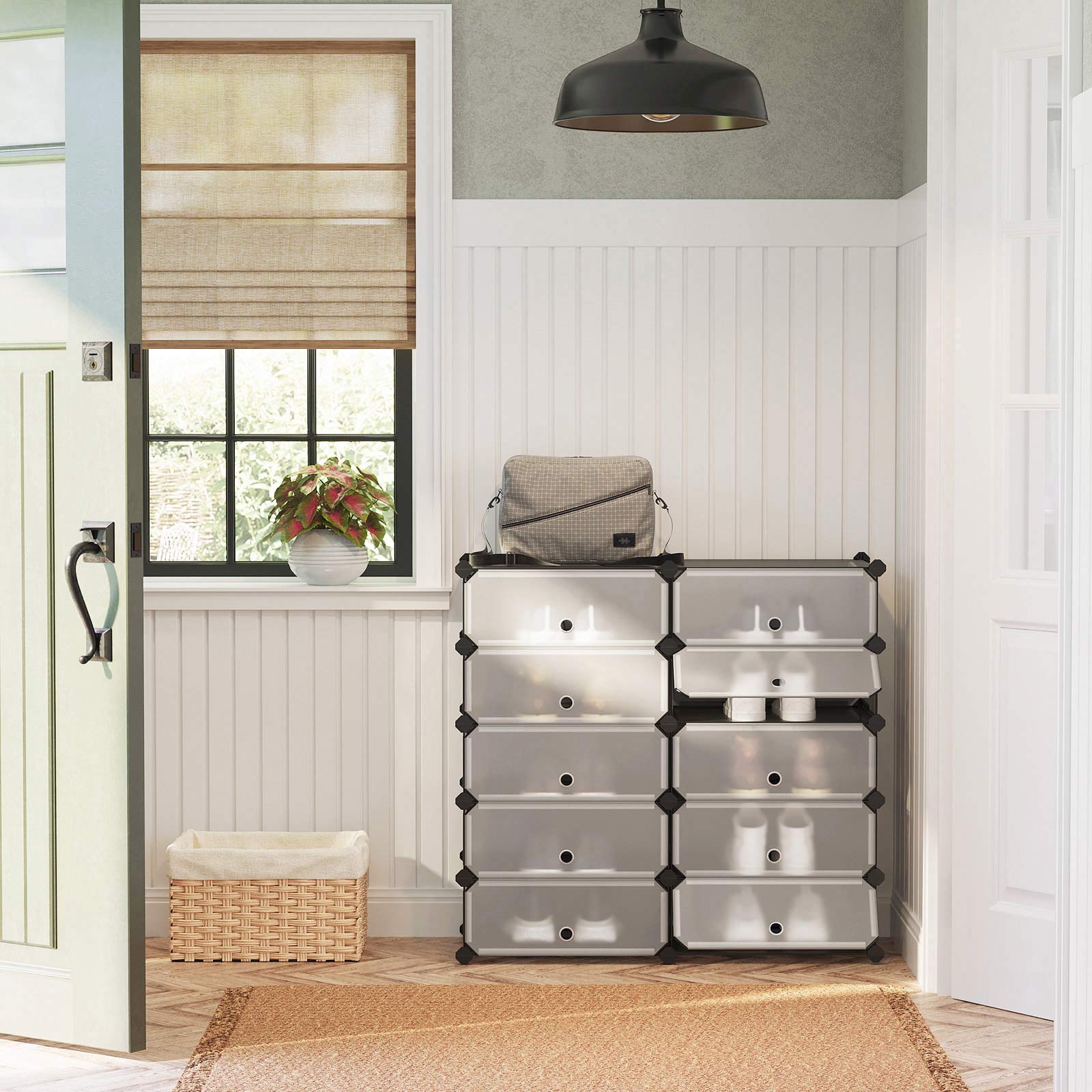 SONGMICS kenkähylly, hyllyjärjestelmä 10 lokerolla, pistokehylly, muovilevyt, metallirunko, säilytys, vaatekaappi, kenkäjärjestelijä, 40 x 30 x 17 cm per lokero, vintage-ruskea LPC010A01