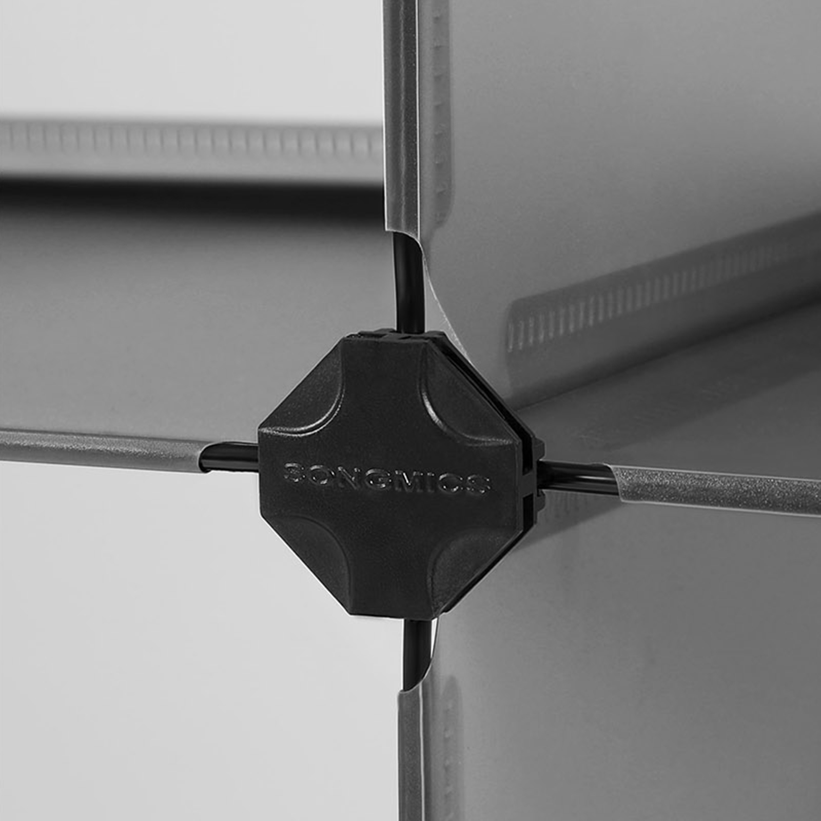 Mukautettavissa tarpeisiisi: Voit rakentaa ja laajentaa tätä pistokehikkojärjestelmää mukana toimitettujen varaosaliittimien avulla eri muodoissa, jotta se sopii tiloihisi. Tuotetiedot: – Väri: harmaa – Materiaali: PP-muovilevyt, metallirunko, ABS-muoviliittimet – Koko (1 x 10): 43 x 31 x 173 cm (P x L x K) – Koko (2 x 5): 83 x 31 x 88 cm (P x L x K) – Paino: 7,2 kg – Maks. staattinen kantavuus per hylly: 10 kg Toimitus sisältää: – 12 x harmaa muovilevy (40 x 30 cm) – 20 x harmaa muovilevy (30 x 17 cm) – 10 x harmaa muovilevy (40 x 17 cm) – 10 x puoliläpinäkyvä muovilevy (40 x 17 cm) – 48 x ABS-muoviliitoskappale – 1 x vasara – 2 x kaatumissuoja – 1 x ohjeet (DE, EN, FR, ES, IT) SONGMICS Huomautukset:- Älä istu tuotteen päälle tai aseta sen päälle liian painavia esineitä. – Älä altista tuotetta voimakkaalle auringonvalolle pitkäksi aikaa. – Kaikki muovilevyt on painettava tiukasti liitoskappaleisiin; käytä tähän myös vasaraa, jotta kaikki osat kiinnittyvät tukevasti toisiinsa. Paina lisäksi jokaisen rivin kokoamisen jälkeen liitoskappaleita, kunnes ne ovat täysin lukittuneet. – Kiinnitä tuote seinään mukana toimitetulla kaatumissuojalla, jos se on yli 60 cm korkea. – Pidä tuote poissa terävistä tai teräksisistä esineistä sekä tulen lähteistä vahingoittumisen välttämiseksi.