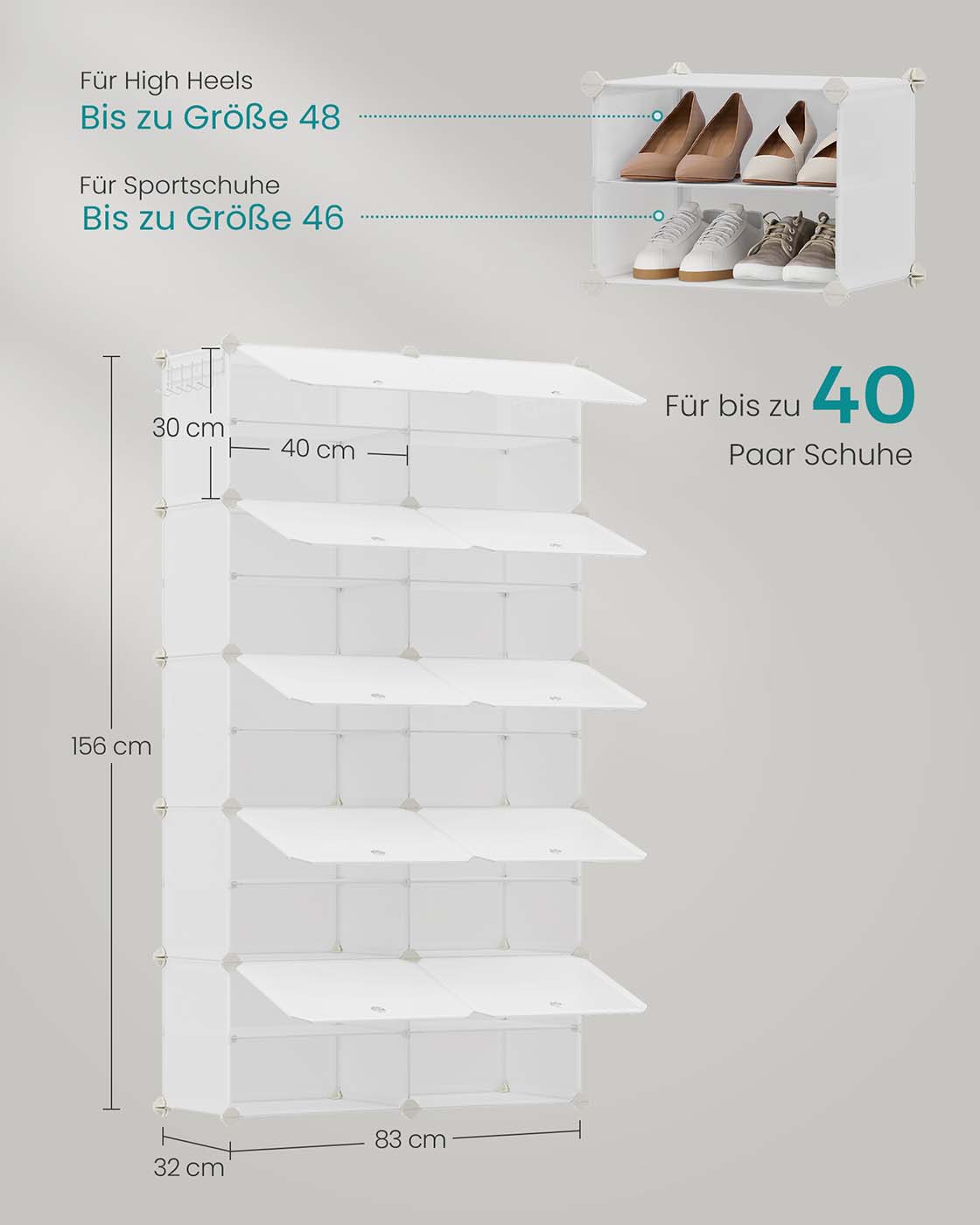 Sisäkoko per lokero: 30 x 40 x 30 cm (S x L x K)