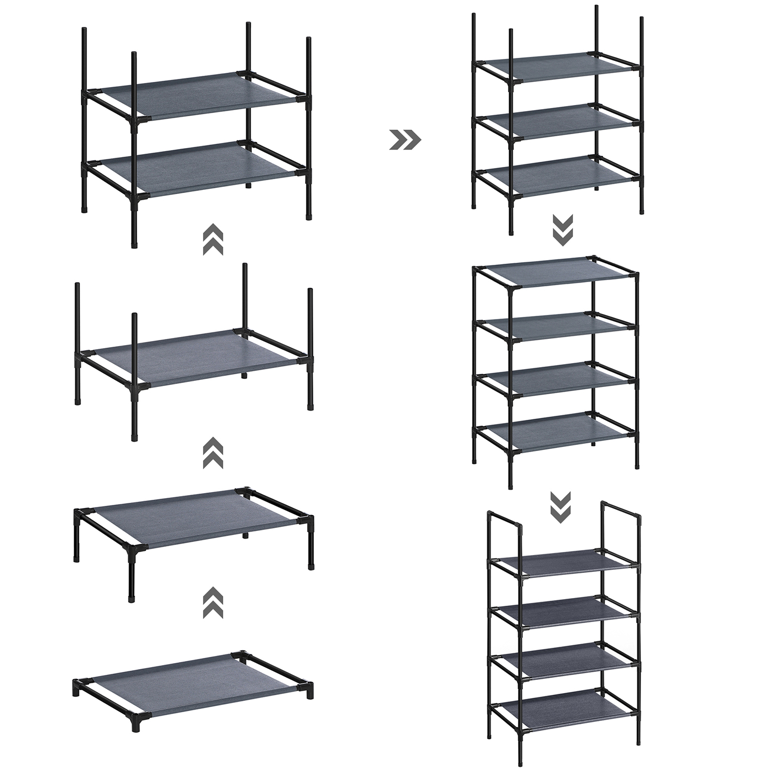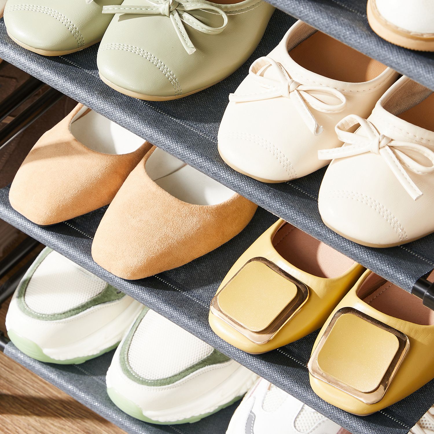 Säilytysasiantuntijasi. Ärsyttääkö sinua, että kenkäkokoelmasi on aina sekaisin? Älä huoli! Tämä SONGMICS-kenkähylly 4 hyllyllä on juuri mitä tarvitset. Vahvistetut metalliputket ja korkealaatuiset muoviliittimet takaavat korkean vakauden ja hyvän kantavuuden, joten tämä hylly kestää kenkäsi ongelmitta. Lisäksi kuitukankaiset hyllyt ovat kulutusta kestäviä ja helppoja puhdistaa. Kevyen painonsa ansiosta hyllyä on myös helppo kuljettaa. Kun hallitset kaaoksen, hallitset myös elämääsi! Hemmottele itseäsi tällä tilaa säästävällä 4 hyllyllä varustetulla hyllyllä ja pidä kenkäkaos kurissa. Tuotetiedot:- Väri: harmaa – Materiaali: metalliputki, kuitukangas, muoviliitin – Hyllyn koko: 45 x 28 x 80 cm (P x L x K) – Hyllyn paino: 0,7 kg – Maks. staattinen kantavuus tasoa kohti: 3 kg – Maks. staattinen kantavuus hyllyä kohti: 12 kg Toimitus sisältää:- 2 x kenkähylly, 4 hyllyä – 2 x kaatumissuoja – 1 x ohjeet (DE, EN, FR, ES, IT) SONGMICS-ohjeet: – Älä käytä tuotetta ulkona.- Turvallisuussyistä lapset eivät saa kiivetä tuotteelle tai leikkiä sillä. – Kiinnitä tämä tuote seinään mukana toimitetulla kaatumissuojalla turvallisen käytön varmistamiseksi.