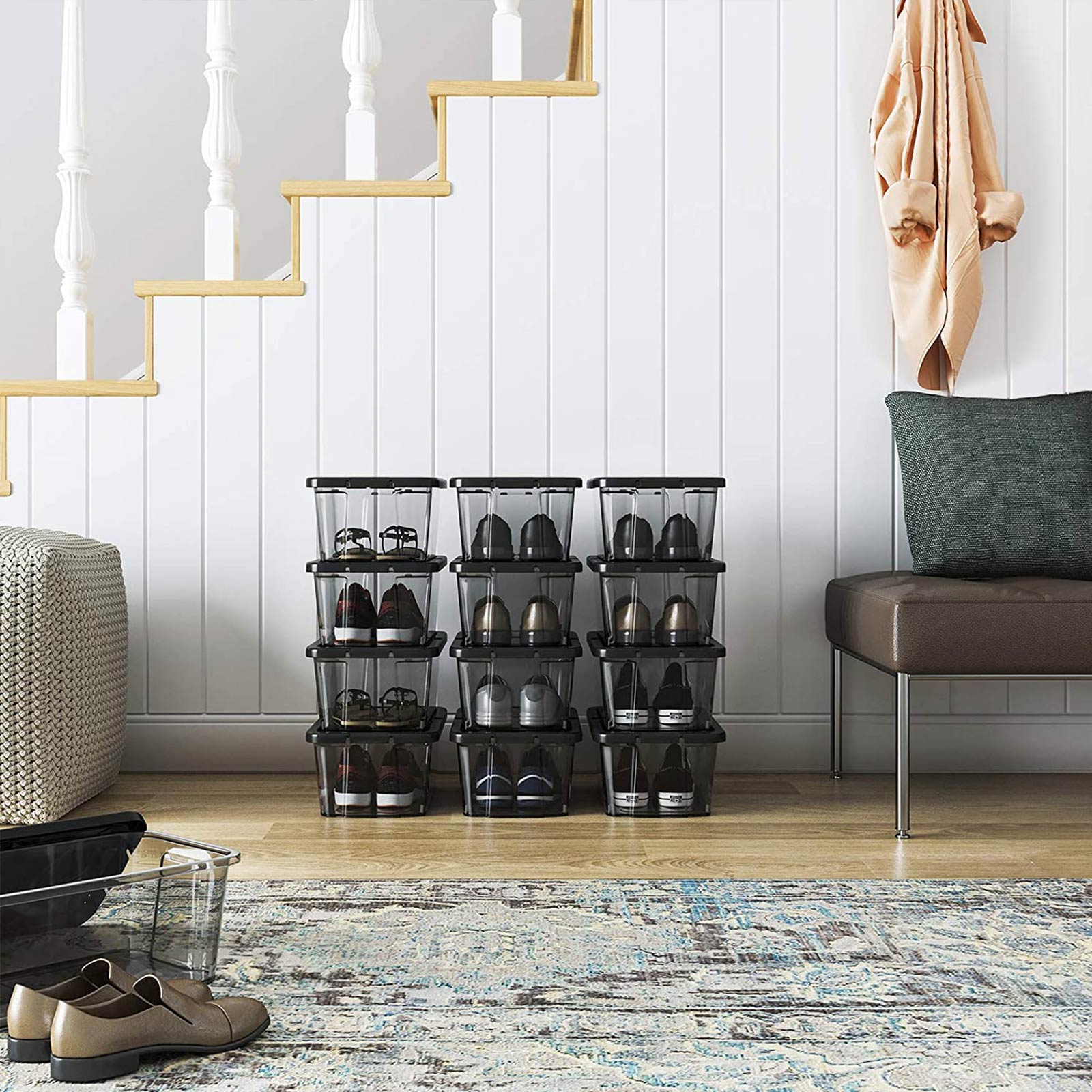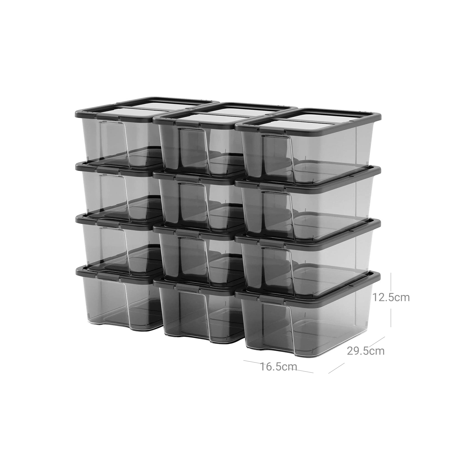 SONGMICS 12 kpl kenkälaatikoita säilytyslaatikoita kengille kenkien säilytyslaatikko läpinäkyvä kannella muovista kengille kokoon 41 asti LSP12WT