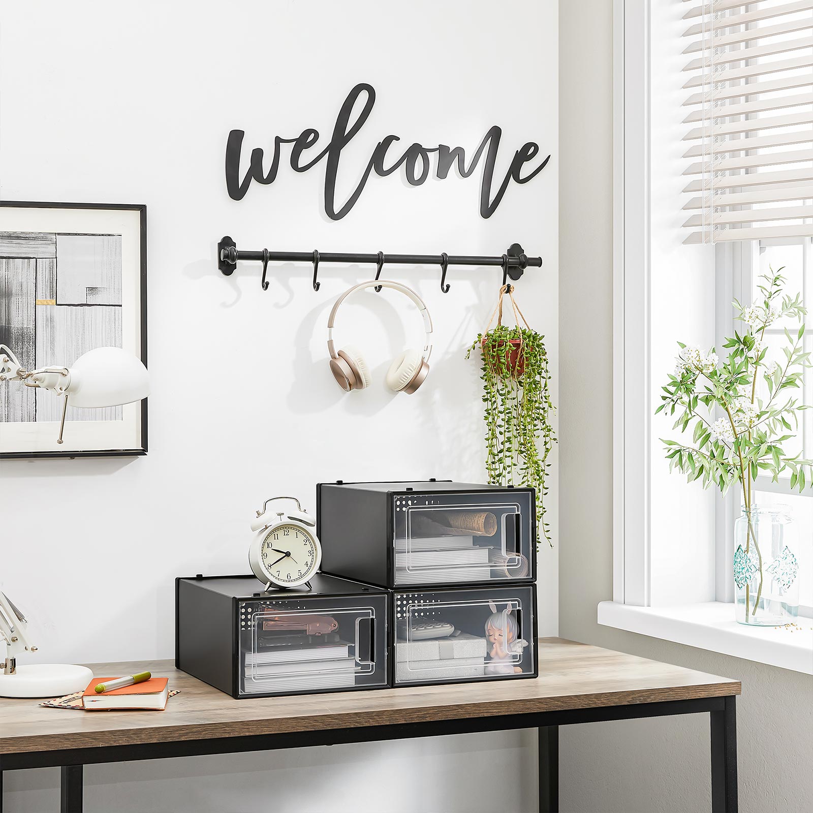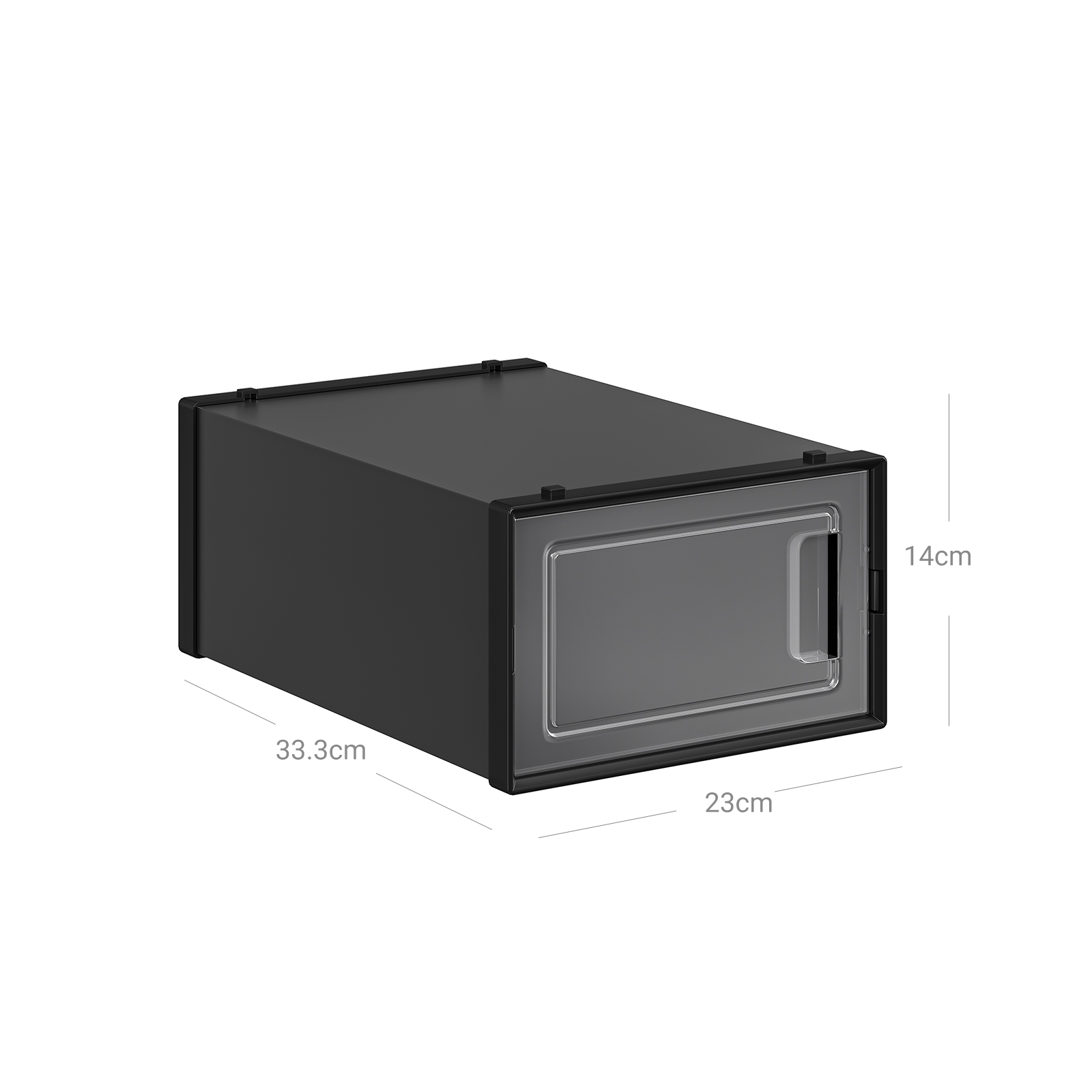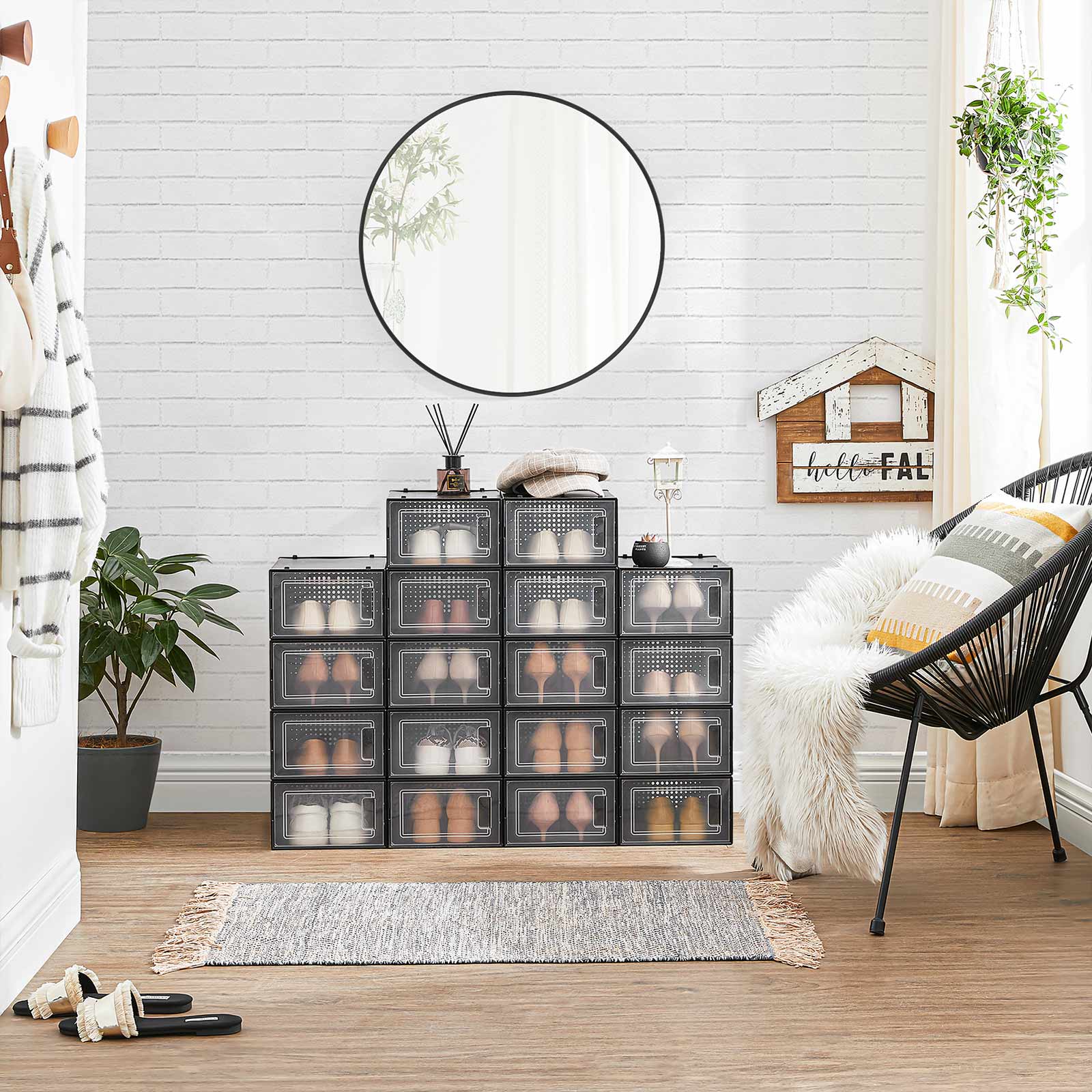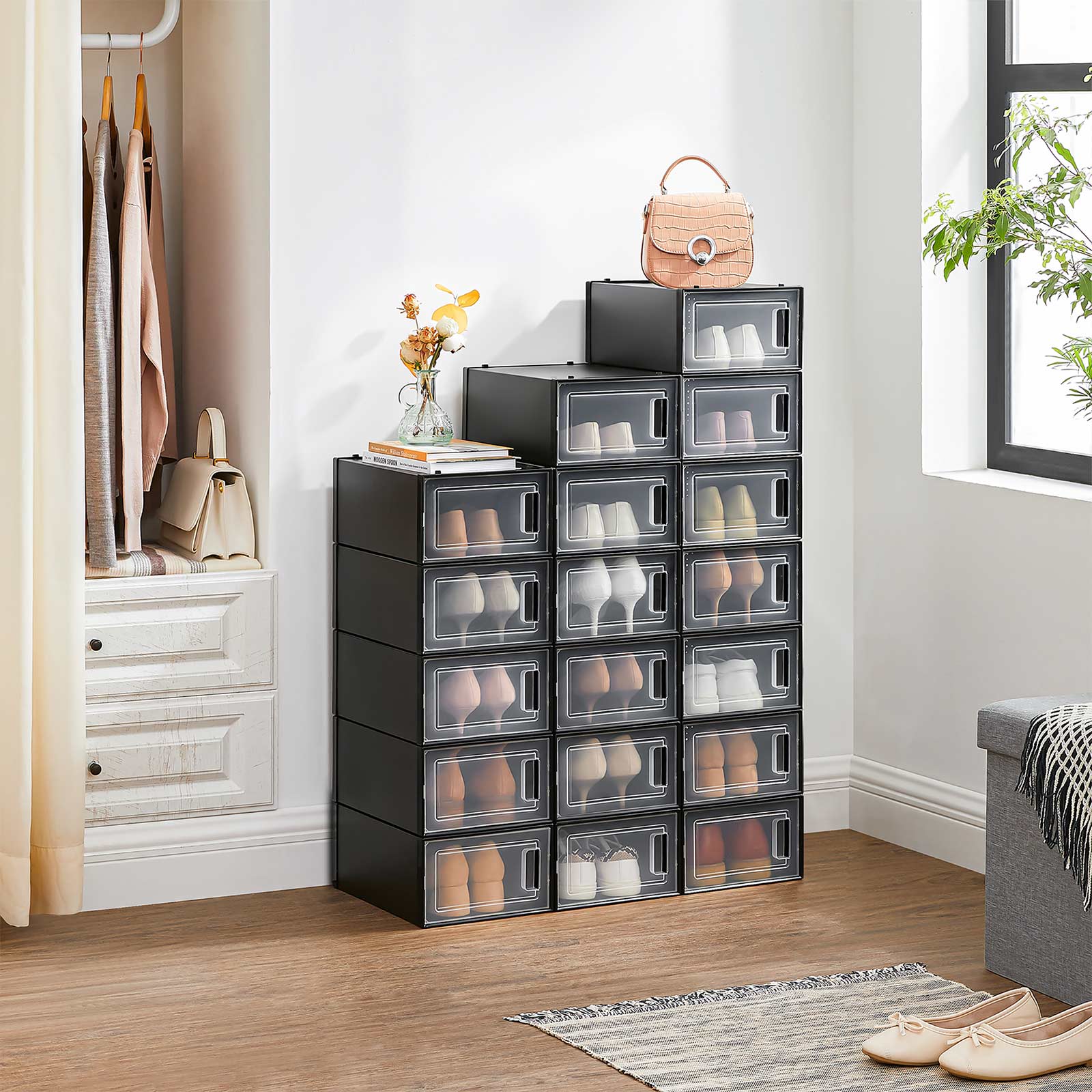 SONGMICS kenkälaatikot, 18 kpl:n sarja, säilytyslaatikot kengille, kenkäorganisaattori, muovilaatikot, taitettavat ja pinottavat, kengille kokoon 42 asti, musta LSP006H18