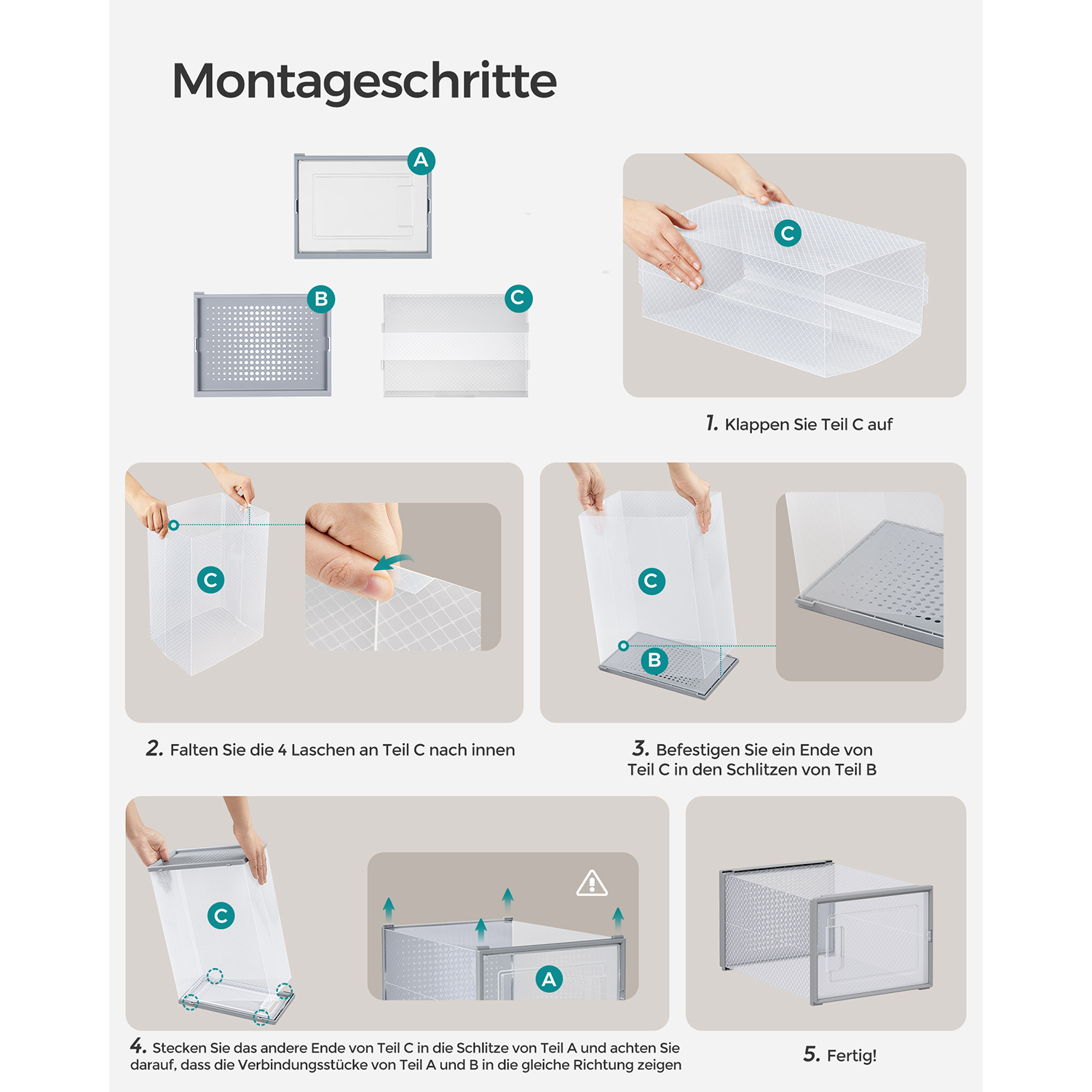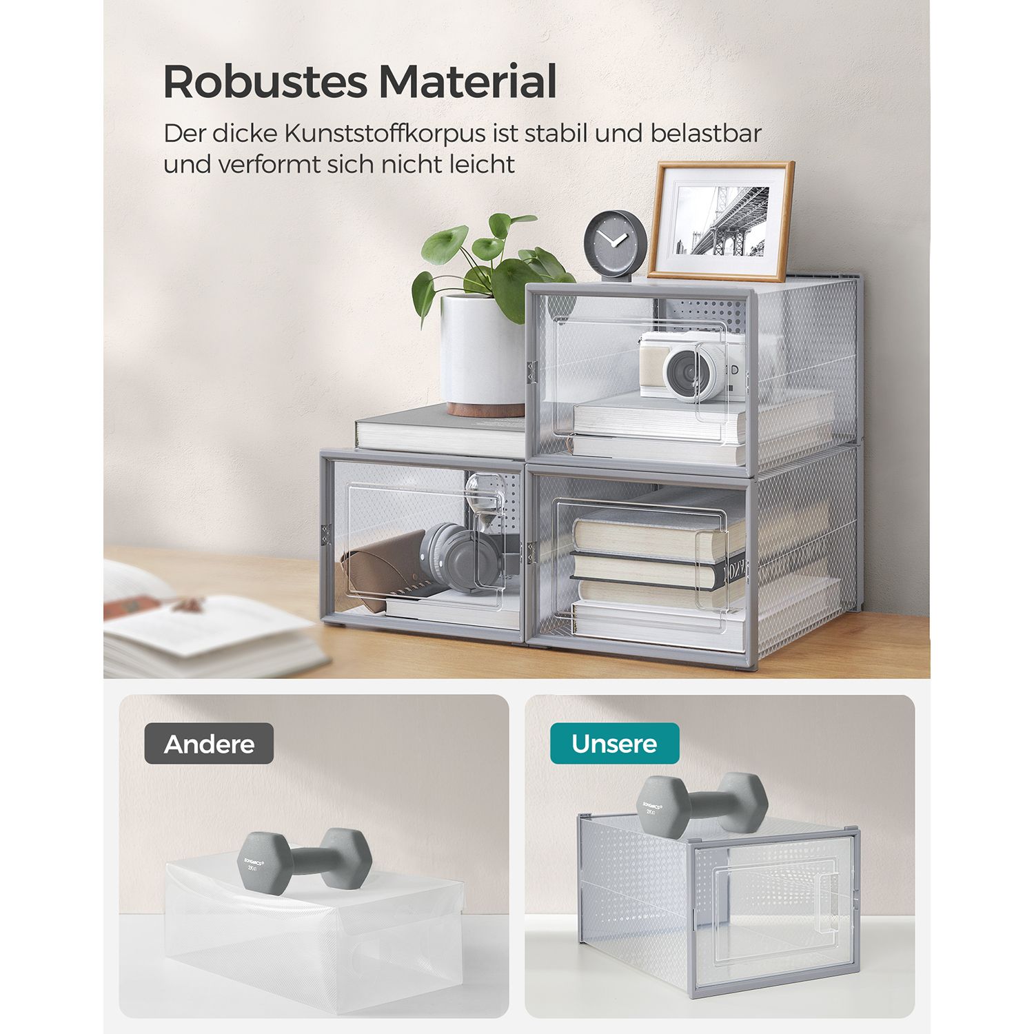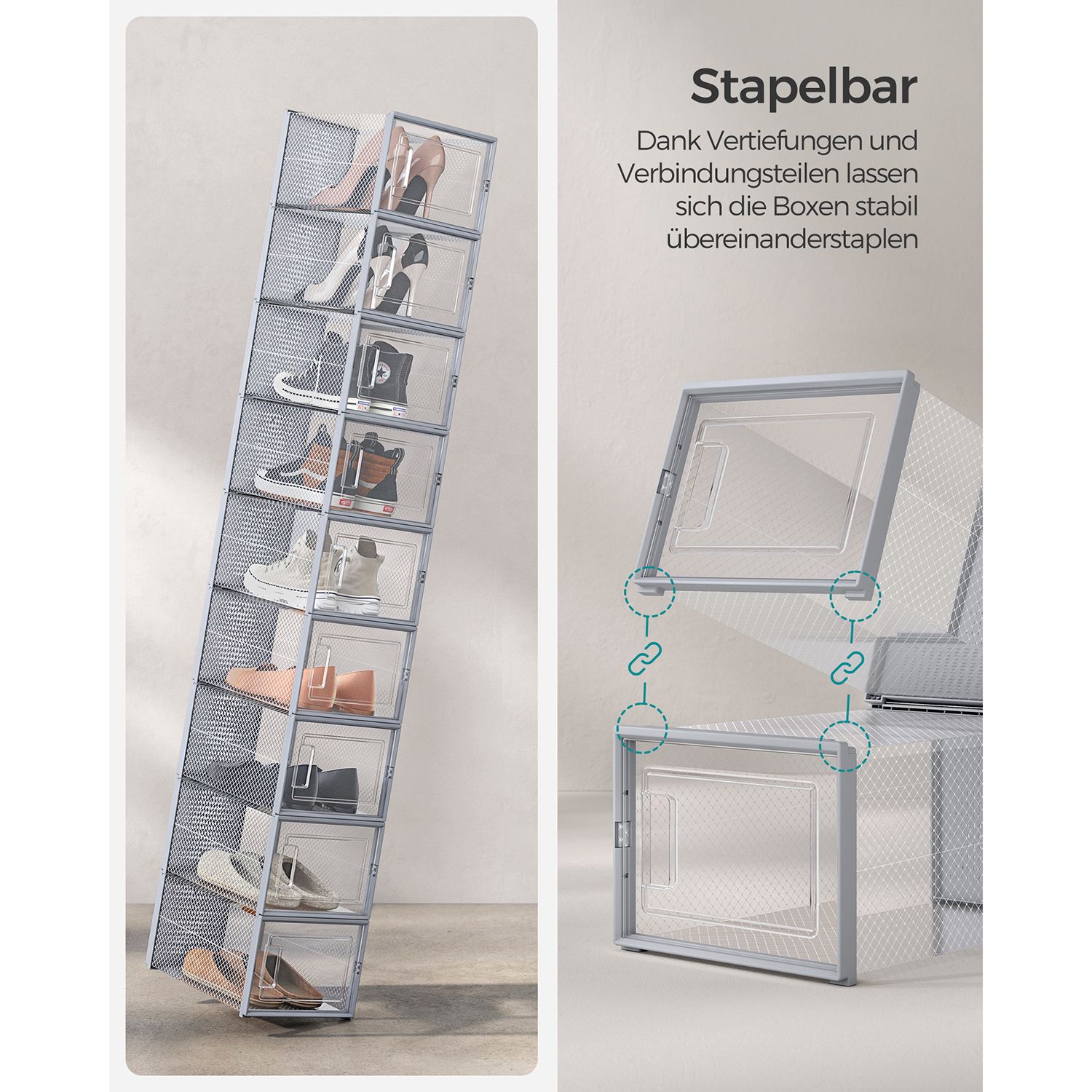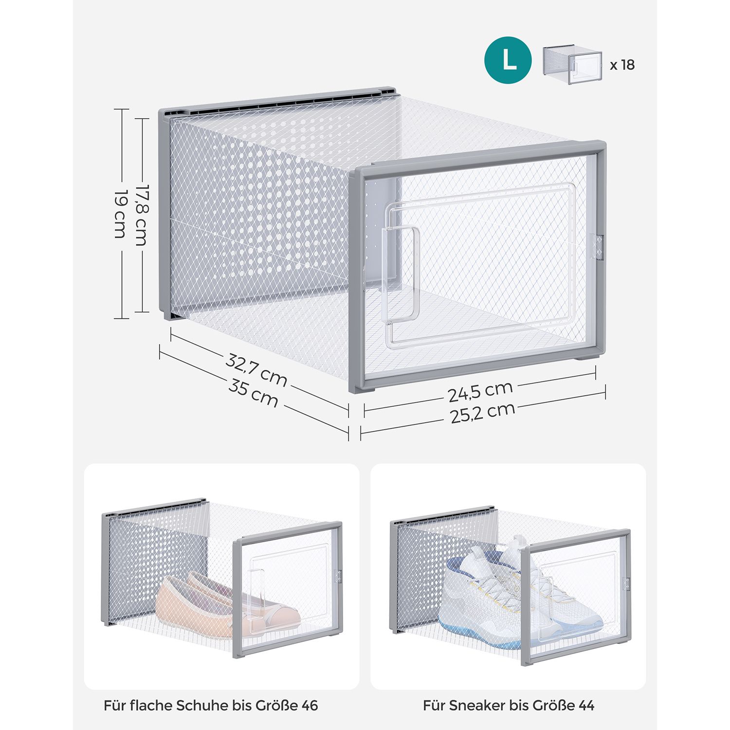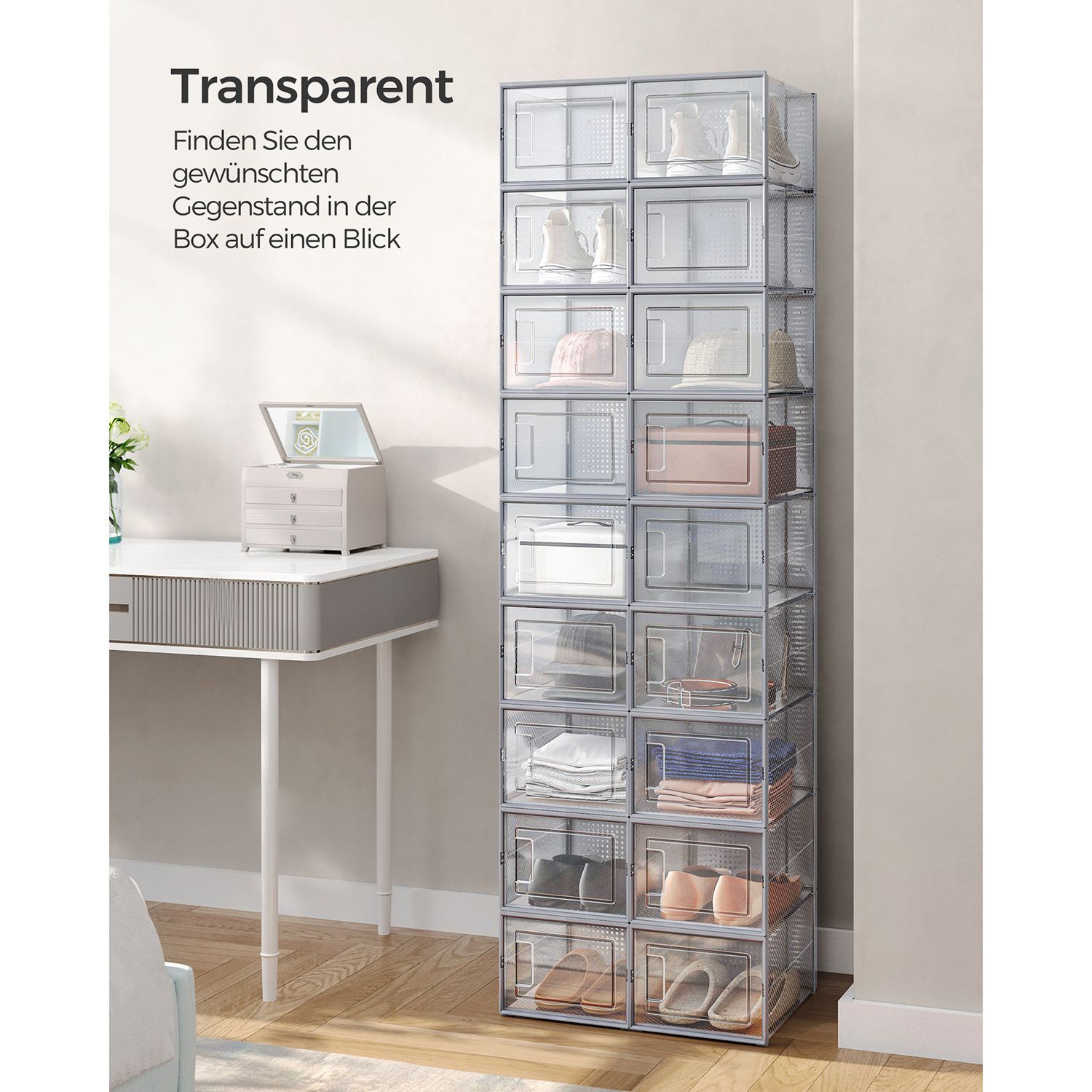 SONGMICS kenkälaatikot, 18 kpl:n sarja, säilytyslaatikot kengille, kenkäorganisaattori, muovilaatikot, taitettavat ja pinottavat, kengille kokoon 44 asti, musta LSP007H18