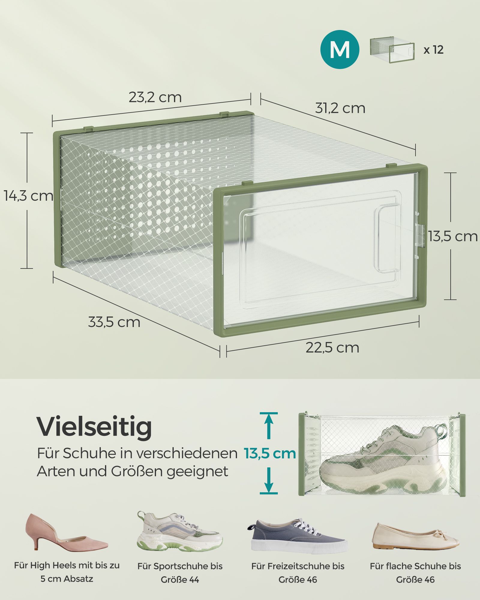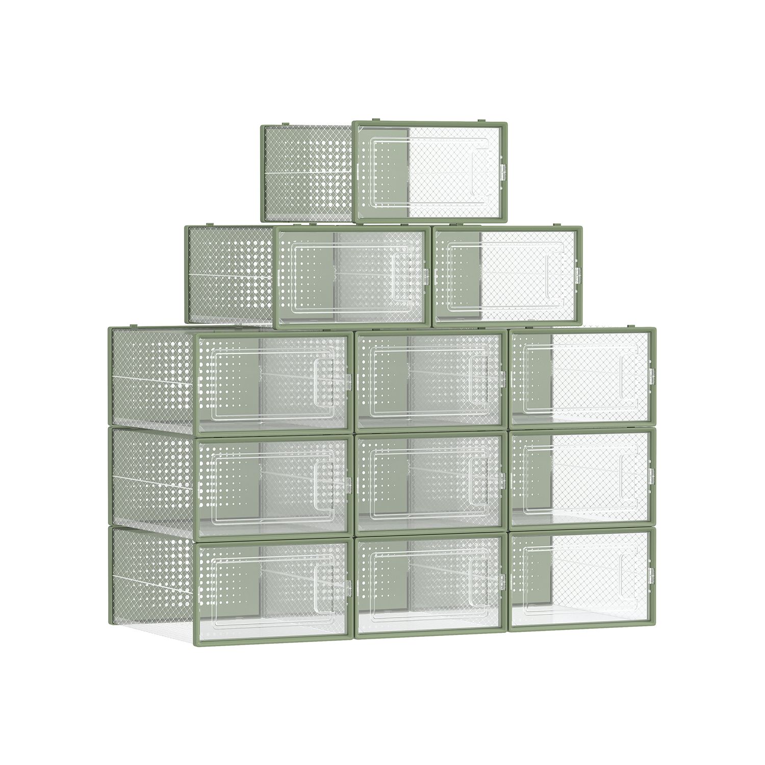 SONGMICS 12 kpl kenkälaatikoita säilytyslaatikoita kengille kenkien säilytyslaatikko läpinäkyvä kannella muovista kengille kokoon 41 asti LSP12WT