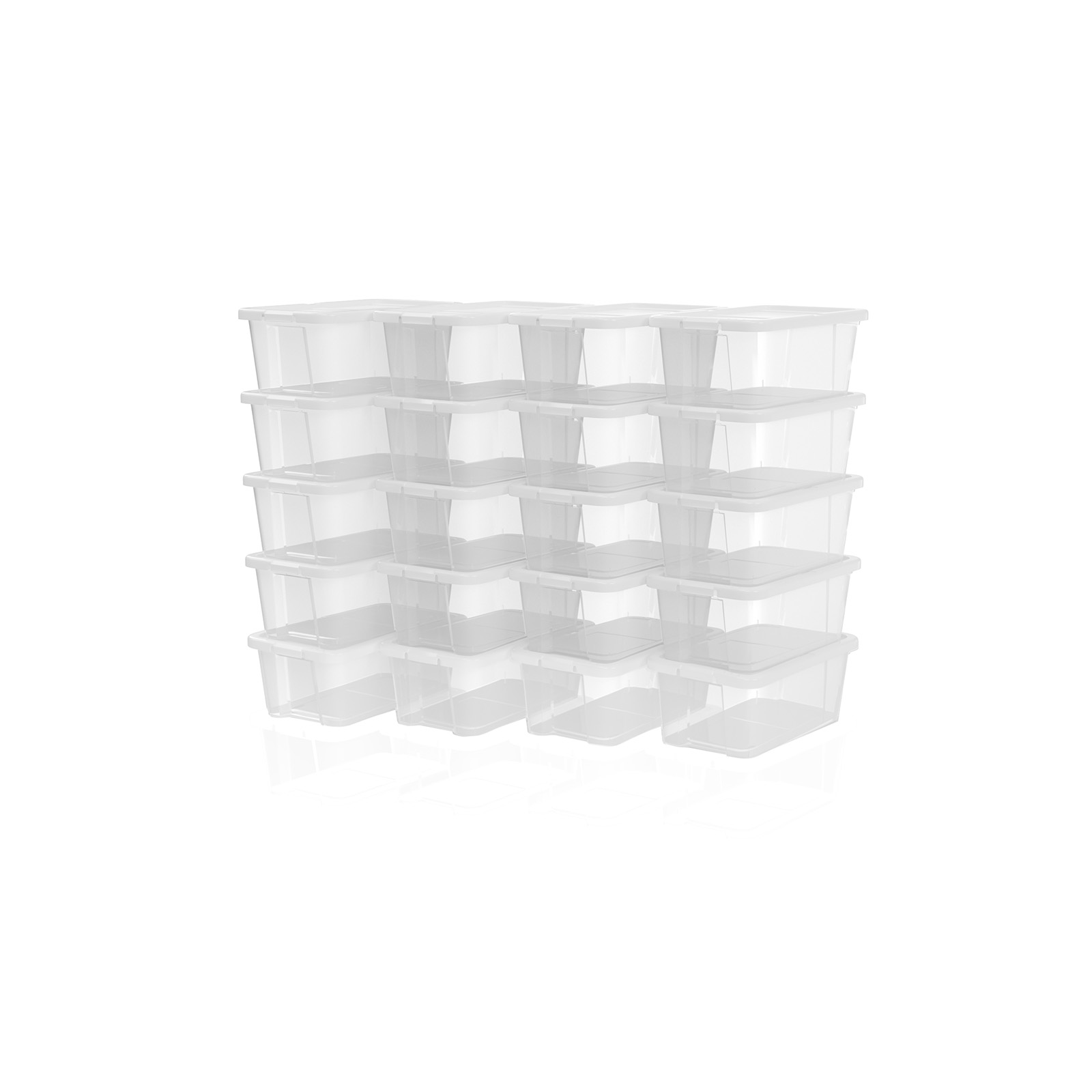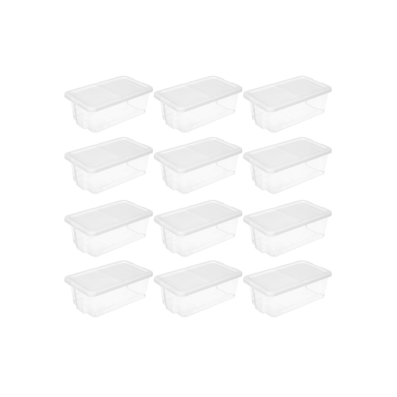 Kätevä säilytysapuri, joka myös säästää tilaa. Pinoa laatikot yksinkertaisesti päällekkäin, ei vaadi kokoonpanoa. Tuotetiedot: Väri: läpinäkyvä, valkoinen Materiaali: PP-muovi (polypropeeni) Kunkin laatikon koko: 35 x 20 x 12,5 cm (P x L x K) Kunkin laatikon sisämitat: 29,5 x 16,5 x 12,5 cm (P x L x K) Paino: 4,8 kg Toimitus sisältää: 20 x kenkälaatikko SONGMICS Huomautukset: Mittaa kenkäsi ennen ostamista ja tarkista, että ne mahtuvat näihin kenkälaatikoihin.