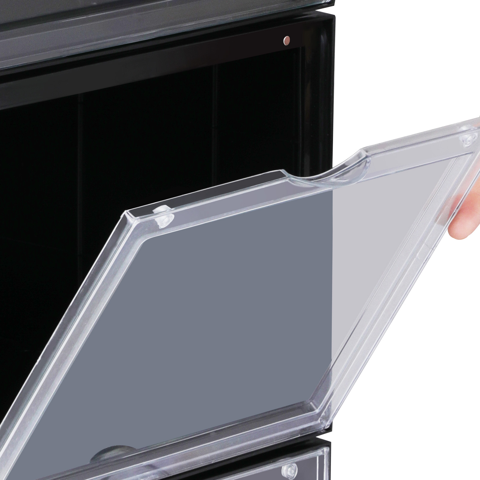 Sopii erilaisille kengille: Kengät kokoon 46 asti, olivatpa ne sitten lenkkareita, korkokenkiä tai saappaita, mahtuvat täydellisesti näihin muovilaatikoihin ja ovat tyylikkäästi esillä. Pinottava: Älykkään muotoilun ansiosta laatikoiden ylä- ja alaosat sopivat tarkasti toisiinsa, joten useita muovilaatikoita voidaan pinota vakaasti päällekkäin. Näin luot täydellisen kenkäkaapin ja säästät tilaa. Lisäksi vahvistettu materiaali takaa pitkän käyttöiän. Tuotetiedot: Väri: musta, läpinäkyvä Materiaali: runko PP:tä (polypropeenia), ovi PS:ää (polystyreeniä) Kotelon koko: 36 x 28 x 22 cm (P x L x K) Kotelon sisäkoko: 33,5 x 25,5 x 19 cm (P x L x K) Paino: 6,1 kg Toimitus sisältää: 6 x kenkälaatikko 1 x ohjeet (DE, EN, FR, IT, ES) SONGMICS-huomautukset: Kokoa tuote tarkasti ohjeiden mukaisesti. Mittaa kenkäsi ennen ostamista ja tarkista, että ne mahtuvat näihin kenkälaatikoihin.