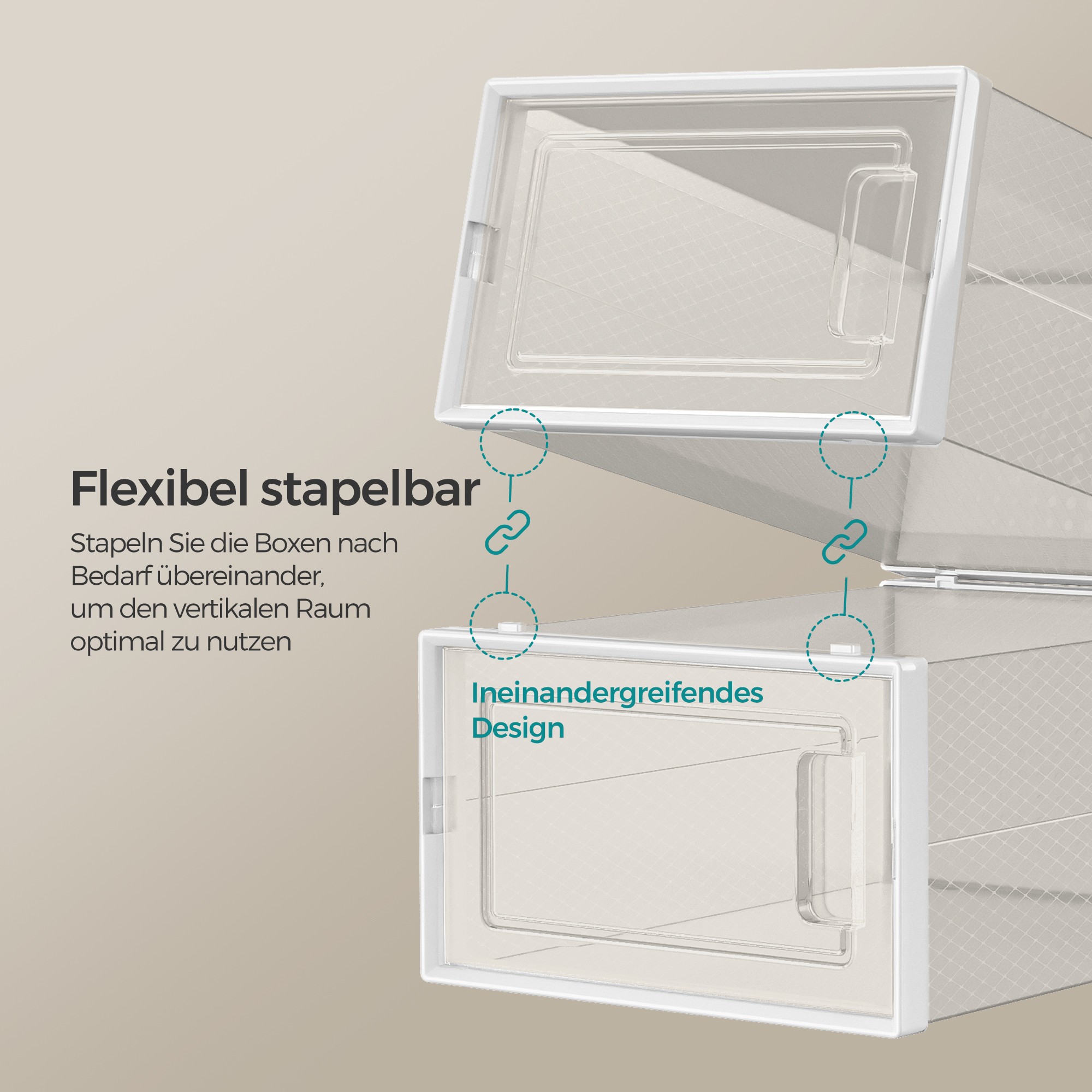 Järjestä kengät tehokkaasti: Kaikki kengät kokoon 42 asti mahtuvat näihin laatikoihin, joissa ne voidaan säilyttää pölyttömästi. Tarvitsetko valkoisia sandaaleja? Löydät ne yhdellä silmäyksellä, avaamalla kyseisen laatikon oven ja ottamalla kengät helposti ulos – täydellinen ratkaisu, kun sinulla on kiire aamulla! Vielä parempaa on, että useita näitä laatikoita voidaan pinota päällekkäin tilaa säästäen, joten ne sopivat hyvin eteiseen, vaatekaappiin tai säilytyshyllylle. Tuotetiedot: