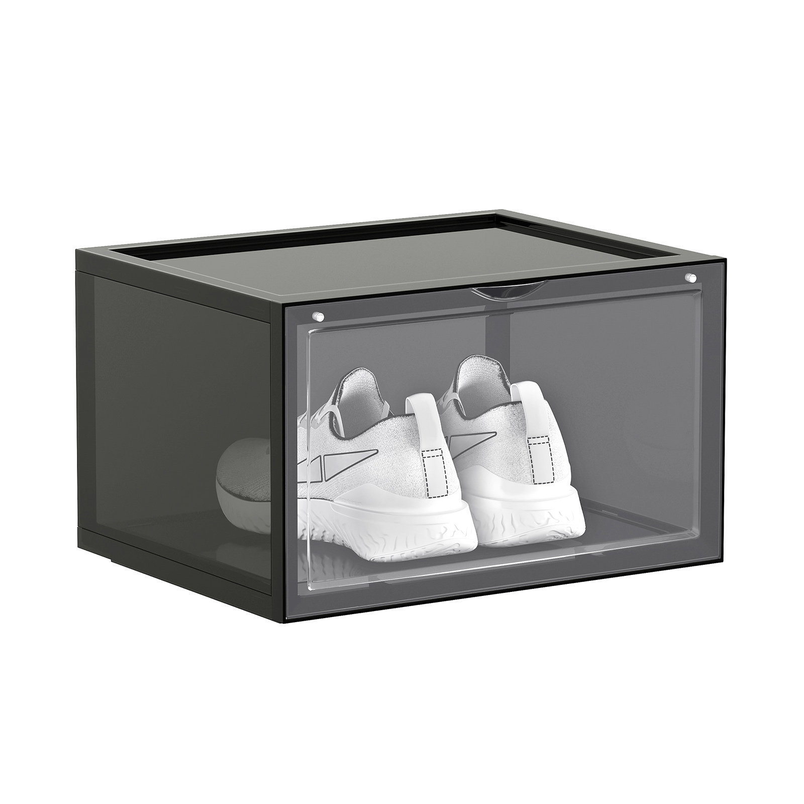 Sopii erilaisille kengille Kengät kokoon 46 asti, olivatpa ne sitten lenkkareita, korkokenkiä tai saappaita, mahtuvat täydellisesti näihin muovilaatikoihin ja ovat tyylikkäästi esillä. PinottavaÄlykkään muotoilun ansiosta laatikoiden ylä- ja alaosat sopivat tarkasti toisiinsa, joten useita muovilaatikoita voidaan pinota vakaasti päällekkäin. Näin luot täydellisen kenkäkaapin ja säästät tilaa. Lisäksi vahvistettu materiaali takaa pitkän käyttöiän. Tuotetiedot:- Väri: harmaa – Materiaali: runko PP:tä (polypropeenia), ovi PS:ää (polystyreeniä) – Kotelon koko: 36 x 28 x 22 cm (P x L x K) – Kotelon sisämitat: 33,5 x 25,5 x 19 cm (P x L x K) – Paino: 6,1 kg Toimitus sisältää:- 6 x kenkälaatikko – 1 x ohjeet (DE, EN, FR, IT, ES) SONGMICS-ohjeet: – Kokoa tuote tarkasti ohjeiden mukaisesti. – Mittaa kenkäsi ennen ostamista ja tarkista, että ne mahtuvat näihin kenkälaatikoihin.