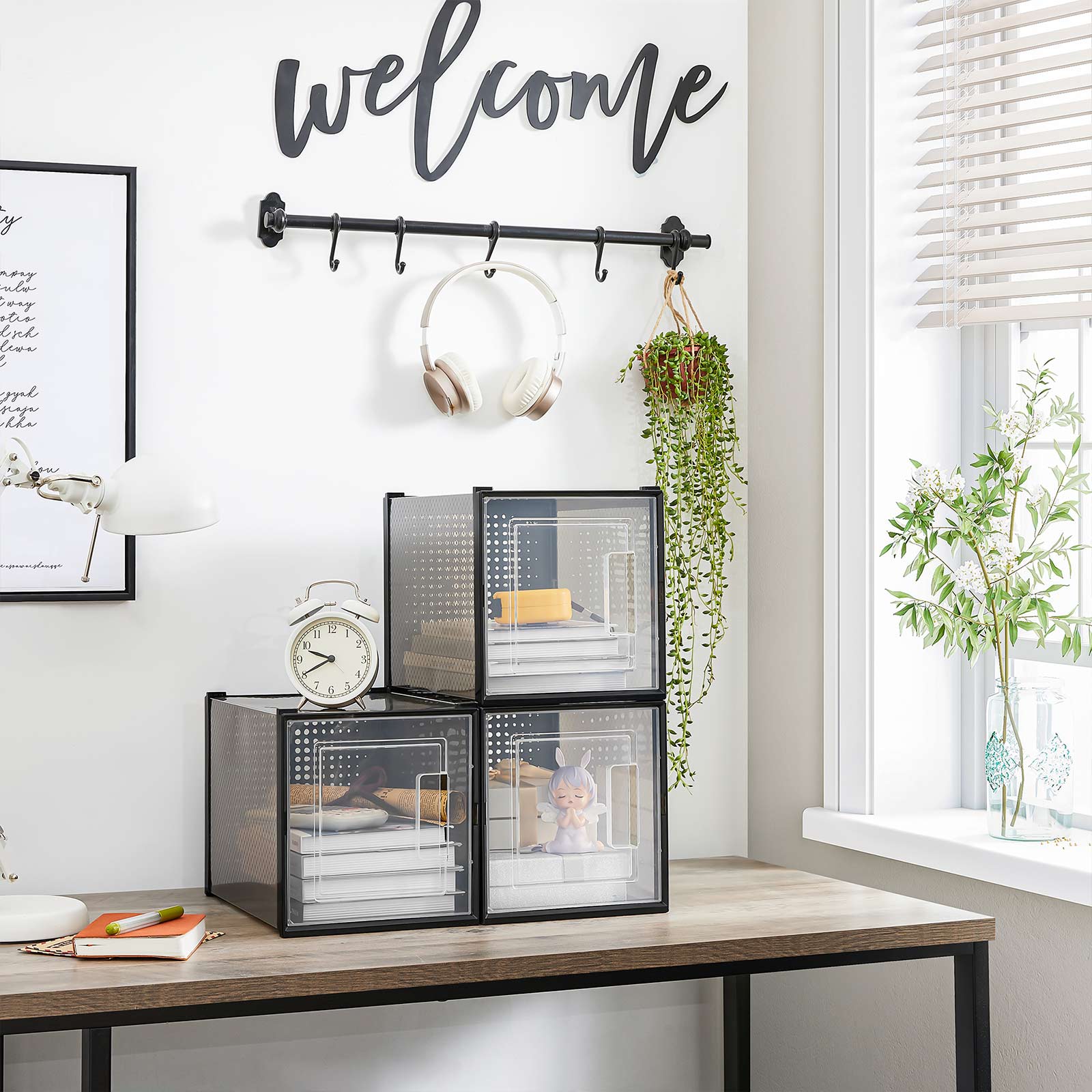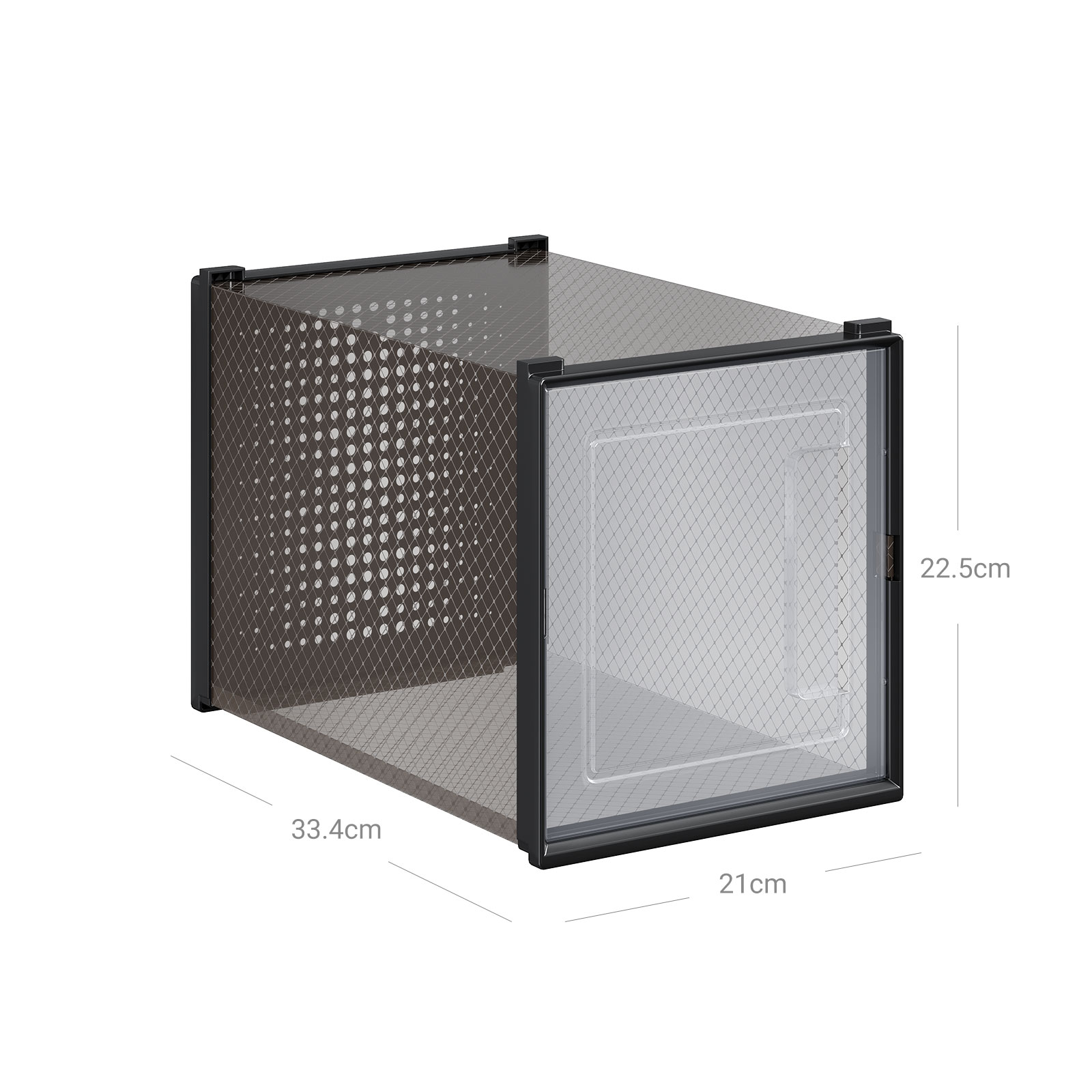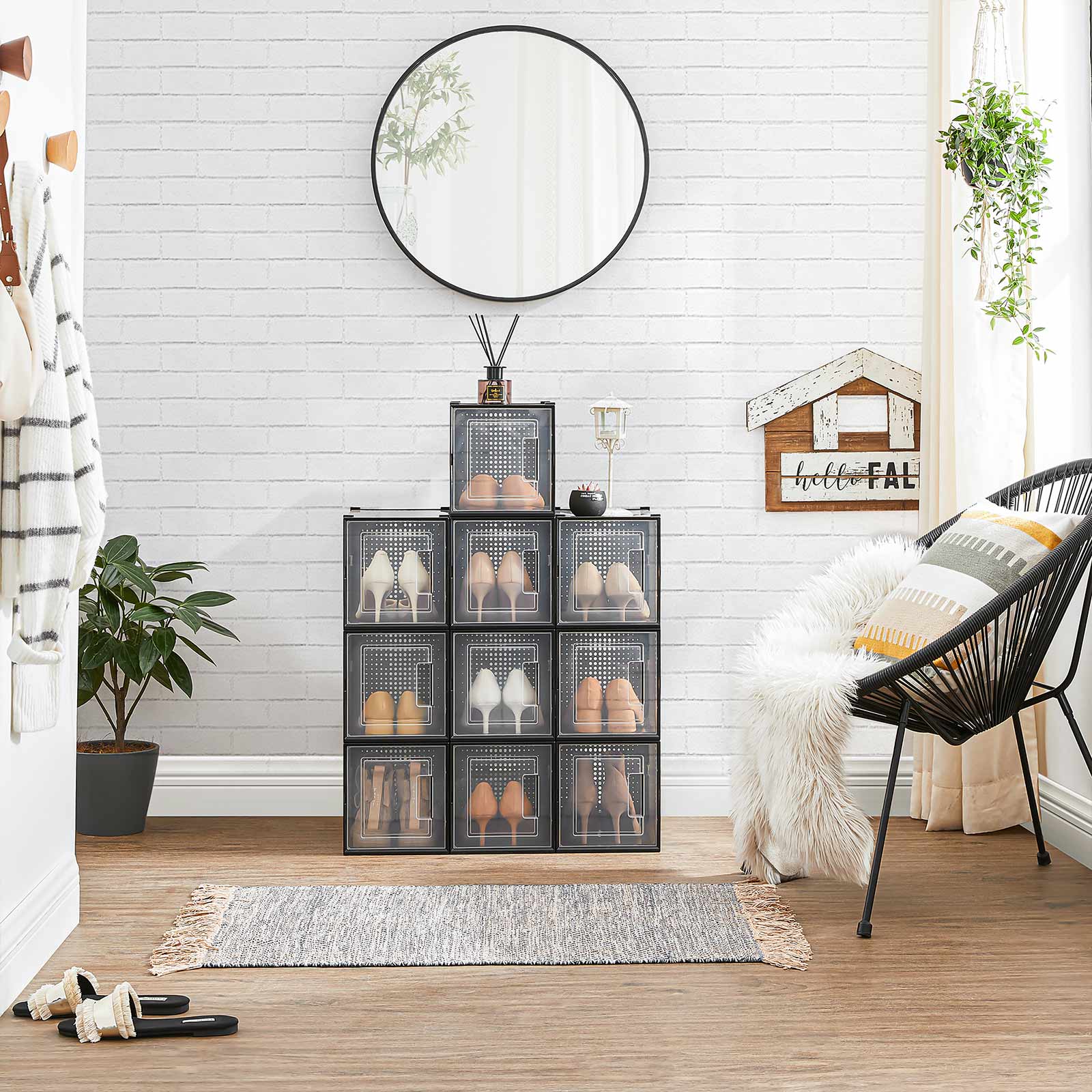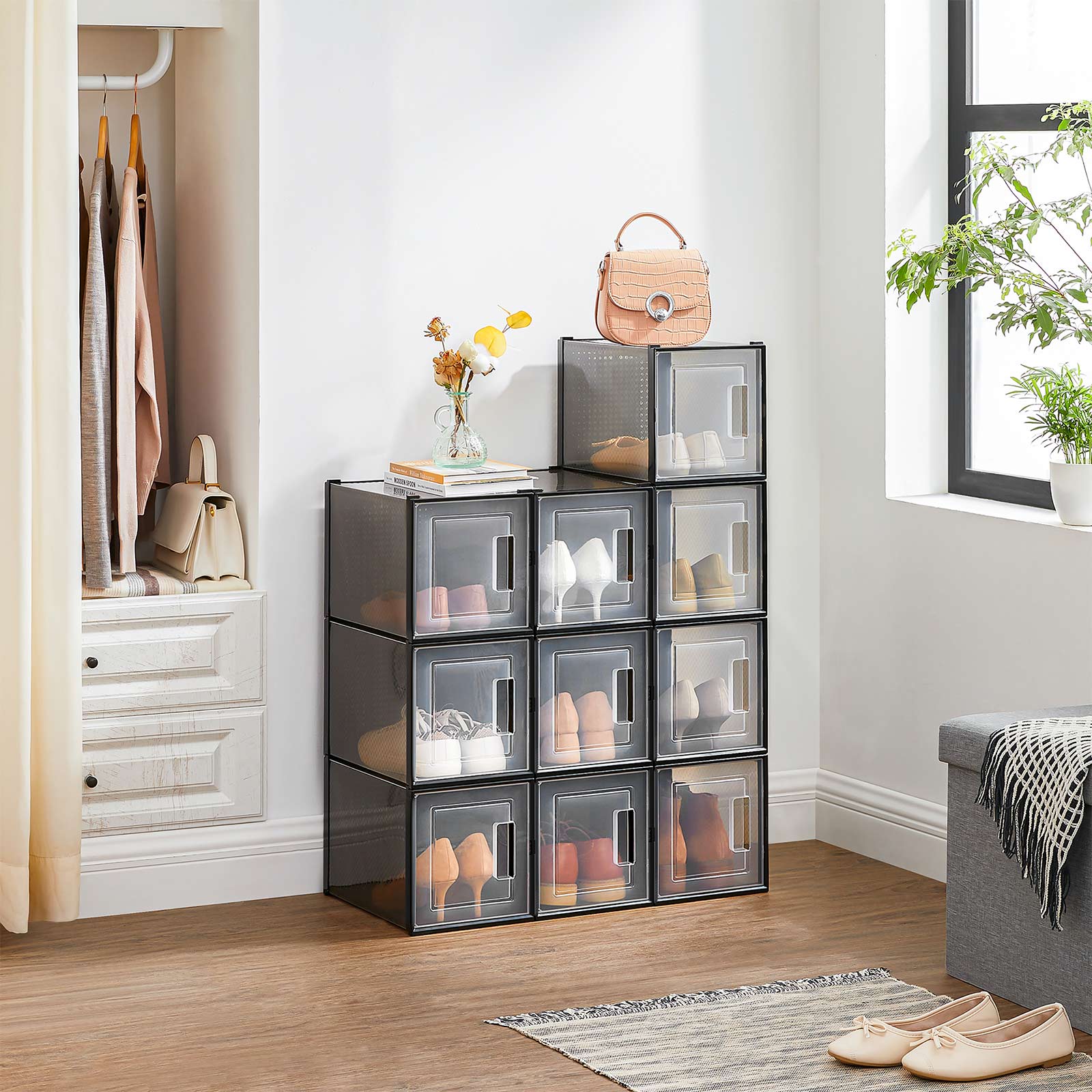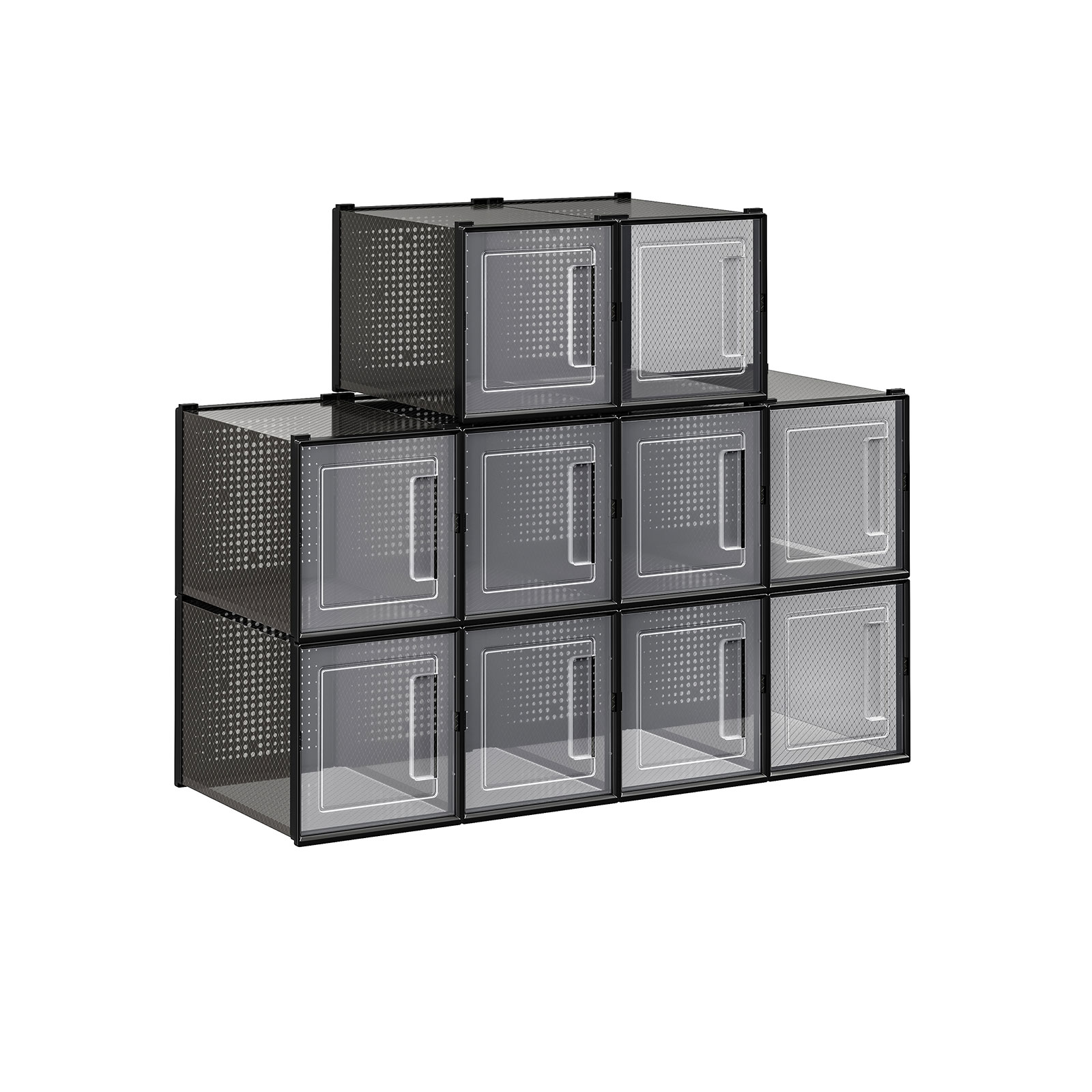 Lopeta kaoottinen kenkäkasojen muodostaminen: Heitätkö korkokengät joka kerta kaappiin, jolloin jonkin ajan kuluttua muodostuu kaoottinen kenkäkasojen muodostuma? Sinun pitäisi päästä eroon tästä huonosta tavasta! Hanki nämä 10 kenkälaatikkoa ja säilytä kaikki korkokengät siististi ja järjestyksessä, kunnes seuraava tilaisuus niiden käyttämiseen tulee. Järjestä kengät tehokkaasti: Kaikki korkokengät, saappaat ja korkeavartiset kengät mahtuvat näihin laatikoihin, joissa ne voidaan säilyttää pölyttömänä. Tarvitsetko valkoiset saappaasi? Löydät ne yhdellä silmäyksellä, avaa vain laatikon ovi ja ota kengät ulos – täydellinen ratkaisu, kun sinulla on kiire aamulla! Vielä parempi on kuitenkin se, että useita näitä laatikoita voidaan pinota päällekkäin tilaa säästäen, joten ne sopivat hyvin eteiseen, vaatekaappiin tai säilytyshyllylle. Tuotetiedot: – Väri: musta – Materiaali: runko PP:tä (polypropeenia), ovet PS:ää (polystyreeniä) – Laatikon ulkomitat: 21 x 33,4 x 22,5 cm (P x L x K) – Sisämitat per laatikko: 20,5 x 28 x 21,5 cm (P x L x K) – Paino: 4,2 kg Toimitus sisältää: – 10 x kenkälaatikko – 1 x ohjeet SONGMICS Huomautukset:- Noudata ohjeissa ja videossa annettuja asennusohjeita tuotteen kokoamiseksi. Älä pura tuotetta väkisin. – Mittaa kenkäsi ennen ostamista ja tarkista, että ne mahtuvat näihin kenkälaatikoihin.