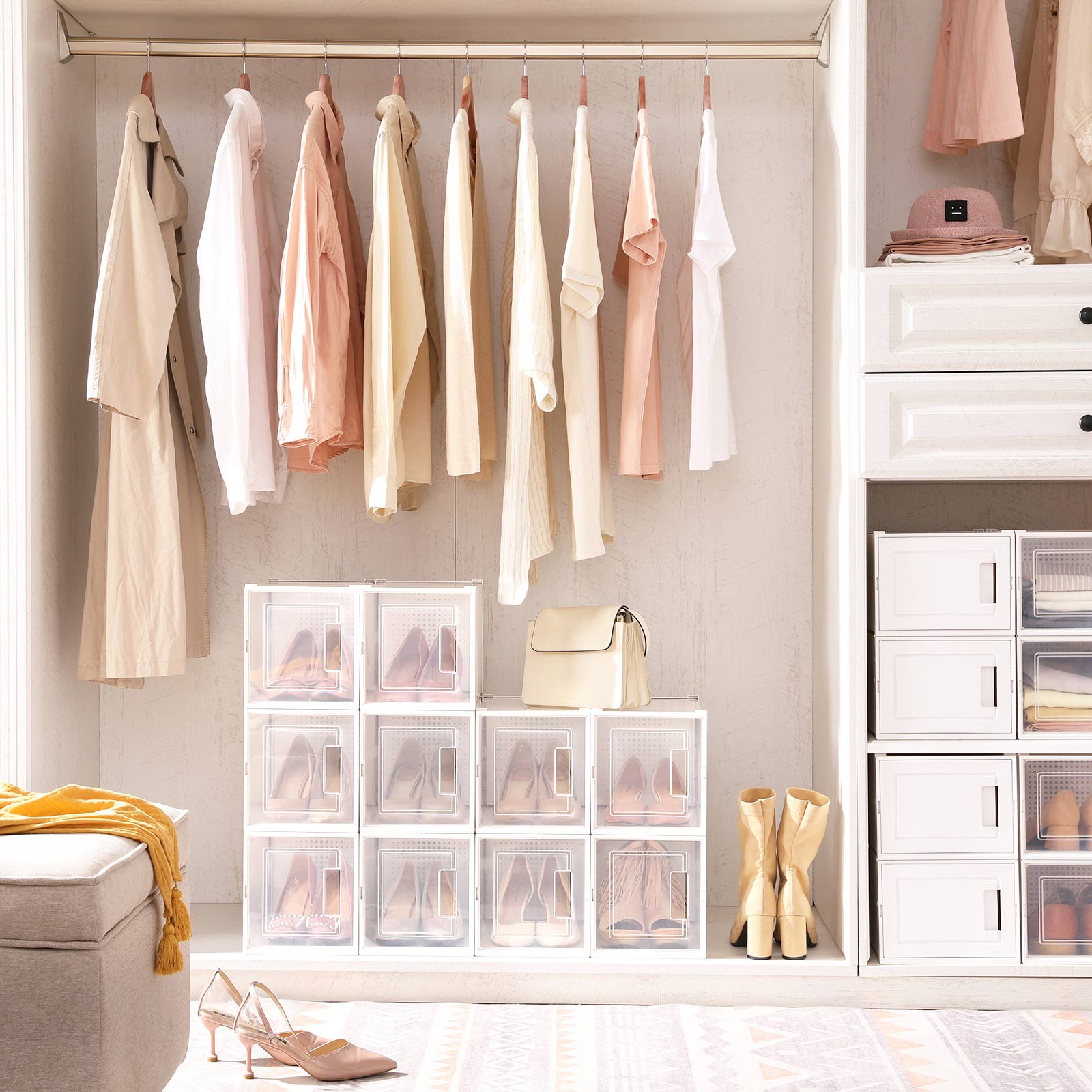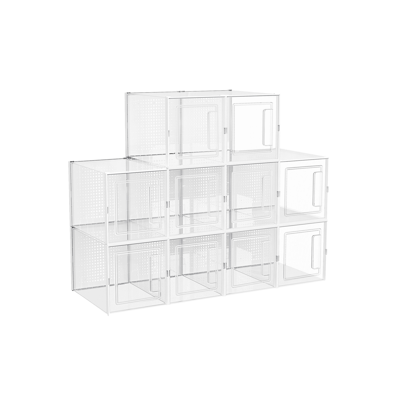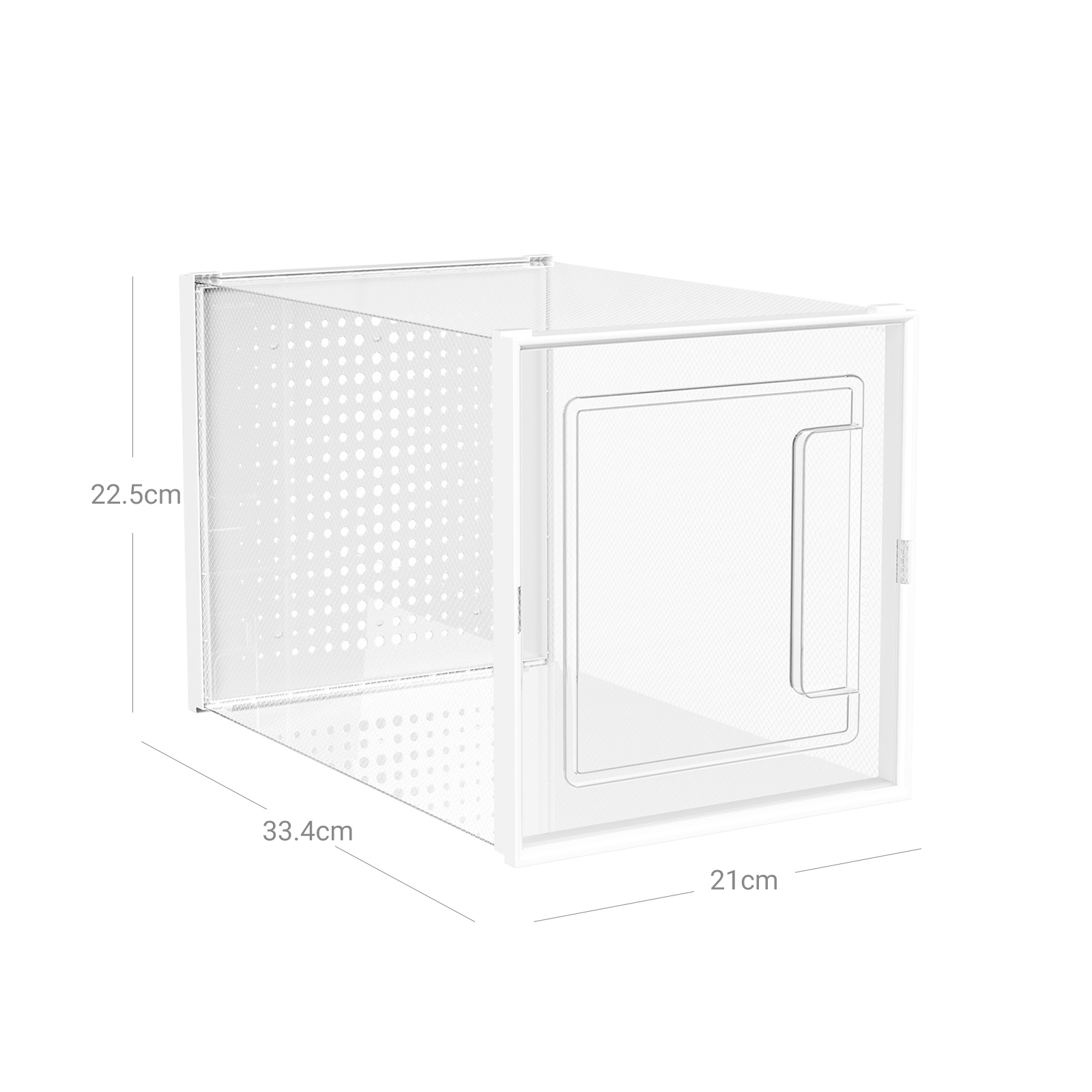 Lopeta kaoottinen kenkäkasojen muodostaminen Heitätkö korkokengät joka kerta kaappiin, jolloin jonkin ajan kuluttua muodostuu kaoottinen kenkäkasojen muodostuma? Sinun pitäisi päästä eroon tästä huonosta tavasta! Hanki nämä 10 kenkälaatikkoa ja säilytä kaikki korkokengät siististi ja järjestyksessä, kunnes seuraava tilaisuus niiden käyttämiseen tulee. Järjestä kengät tehokkaasti Kaikki korkokengät, saappaat ja korkeavartiset kengät mahtuvat näihin laatikoihin, joissa ne pysyvät pölyttöminä. Tarvitsetko valkoiset saappaasi? Löydät ne yhdellä silmäyksellä, avaamalla kyseisen laatikon oven ja ottamalla kengät helposti ulos – täydellinen ratkaisu, kun sinulla on kiire aamulla! Vielä parempi on kuitenkin se, että useita näitä laatikoita voidaan pinota päällekkäin tilaa säästäen, joten ne sopivat hyvin eteiseen, vaatekaappiin tai säilytyshyllylle. Tuotetiedot: – Väri: läpinäkyvä – Materiaali: runko PP:tä (polypropeenia), ovet PS:ää (polystyreeniä) – Laatikon ulkomitat: 21 x 33,4 x 22,5 cm (P x L x K) – Sisämitat per laatikko: 20,5 x 28 x 21,5 cm (P x L x K) – Paino: 4,2 kg Toimitus sisältää: – 10 x kenkälaatikko – 1 x ohjeet (DE, EN, FR, ES, IT) SONGMICS-ohjeet:- Noudata ohjeissa ja videossa annettuja asennusohjeita tuotteen kokoamiseksi. Älä pura tuotetta väkisin. – Mittaa kenkäsi ennen ostamista ja tarkista, että ne mahtuvat näihin kenkälaatikoihin.