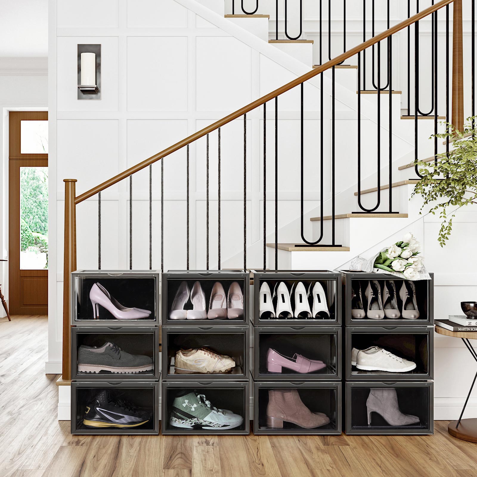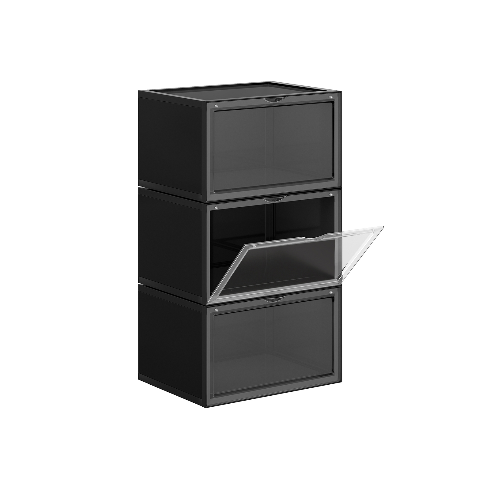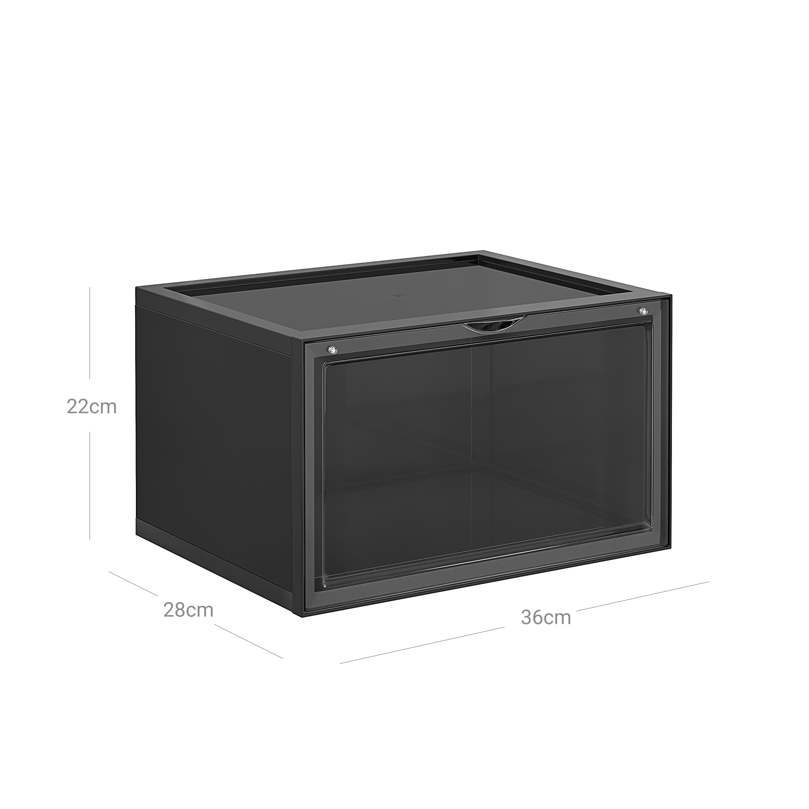 AITOJA SÄILYTYSPAIKKOJA: ”Mihin olenkaan laittanut valkoiset sandaalini?” ”Voi ei, ballerinat ovat taas kadonneet!” Älä huoli, apu on jo tulossa – nämä käytännölliset kenkälaatikot SONGMICS:ltä! Ne lopettavat lopullisesti ärsyttävän etsimisen! Läpinäkyvän luukun ansiosta löydät tarvitsemasi kengät nopeasti ja pääset niihin helposti käsiksi. SOVELTUU ERI KENKIIN: Kengät kokoon 46 asti, olivatpa ne sitten lenkkareita, korkokenkiä tai saappaita, mahtuvat täydellisesti näihin muovilaatikoihin ja ovat tyylikkäästi esillä. PINOTTAVISET: Älykkään muotoilun ansiosta laatikoiden ylä- ja alaosat sopivat tarkasti toisiinsa, joten useita muovilaatikoita voidaan pinota vakaasti päällekkäin. Näin luot täydellisen kenkäkaapin ja säästät tilaa. Lisäksi vahvistettu muovi takaa pitkän käyttöiän. Tuotetiedot: Väri: musta Materiaali: runko PP:tä (polypropeenia), ovi PS:ää (polystyreeni) Koko per laatikko: 36 x 28 x 22 cm (P x L x K) Sisäkoko per laatikko: 33,5 x 25,5 x 19 cm (P x L x K) Paino: 3 kg Toimitus sisältää: 3 x kenkälaatikko 1 x ohjeet (DE, EN, FR, IT, ES) SONGMICS-ohjeet:Kokoa tuote tarkasti ohjeiden mukaisesti. Mittaa kenkäsi ennen ostamista ja tarkista, että ne mahtuvat näihin kenkälaatikoihin.