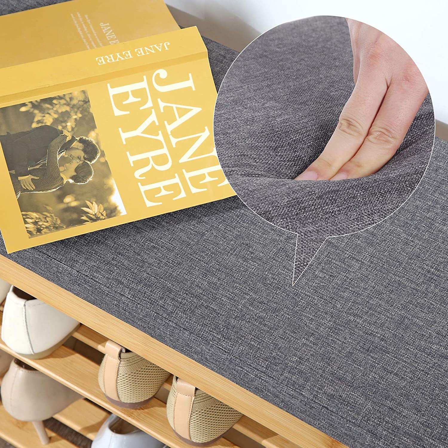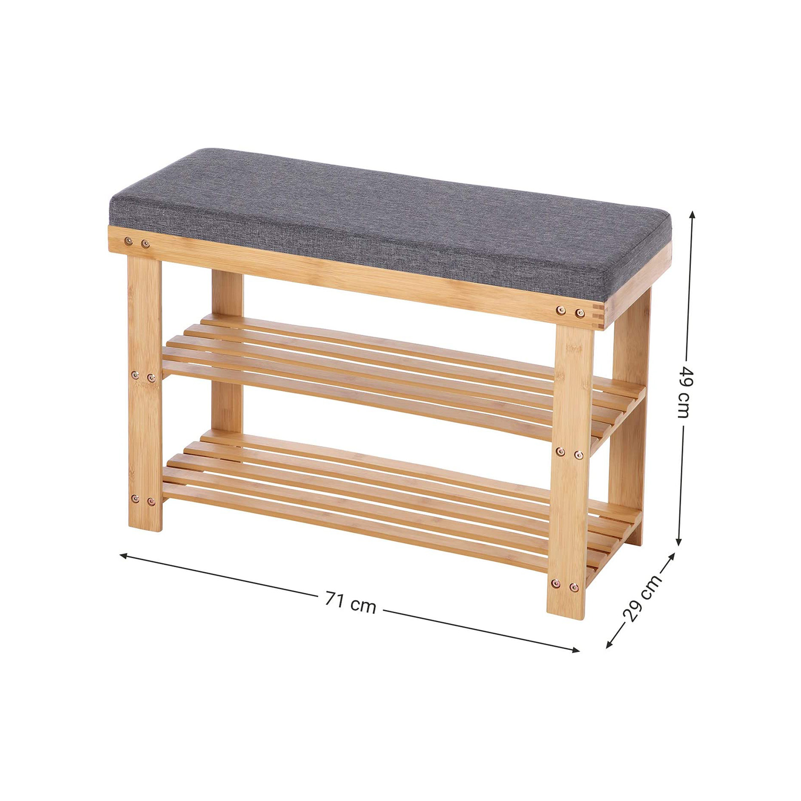 Istu alas! Pue kengät jalkaan! Sen sijaan, että hyppisit ympäri asuntoa yhdellä jalalla kengät jalassa, on varmasti mukavampaa istua tälle pehmustetulle penkille, jossa on säädettävä hylly, ja pukea lenkkarit jalkaan rauhassa. Tämä mukava kenkäpenkki SONGMICS:ltä ei petä sinua koskaan! Bambu tekee eron Luonnollinen materiaali? Uusiutuva? Nämä ovat vain muutamia bambun eduista. Luonnollinen materiaali on myös kestävä ja tyylikäs. Sinun ei siis tarvitse valita tyylin ja pitkän käyttöiän välillä! Tuotetiedot:- Väri: luonnonväri-harmaa – Materiaali: bambu, vaahtomuovipehmuste – Koko: 71 x 29 x 49 cm (P x L x K) – Paino: 5,2 kg – Istuimen maks. staattinen kantavuus: 150 kg – Hyllytasojen maks. staattinen kantavuus: 20 kg Toimitus sisältää:- 1 x kenkäpenkki – 1 x ohjeet (DE, EN, FR, ES, IT) SONGMICS-ohjeet: – Älä käytä tuotetta kosteassa ympäristössä. – Pidä tuote poissa terävien esineiden ja aggressiivisten kemiallisten aineiden läheisyydestä.