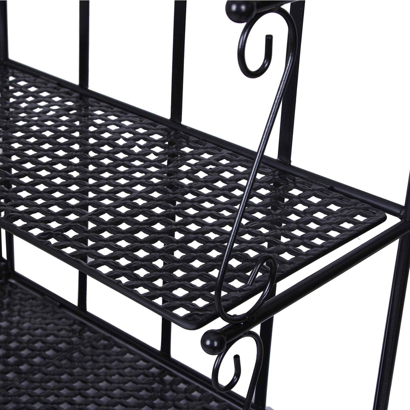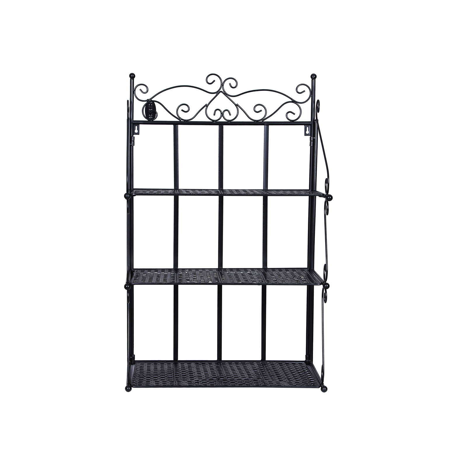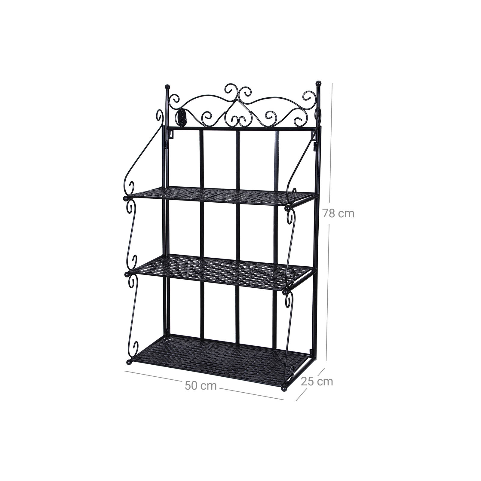 Songmicsin seinähylly tekee vaikutuksen nostalgisella charmillaan. Eksklusiiviset kierrekoristeet tekevät siitä todellisen katseenvangitsijan! Tämä käsintehty seinähylly on valmistettu tukevasta raudasta, jonka pinta on jauhemaalattu, kestävä ja vakaa. Kolmen ylös nostettavan hyllylevyn ansiosta se on ihanteellinen ratkaisu tavaroiden järjestämiseen ja säilyttämiseen. Jokainen hyllylevy on kiinnitetty kahteen koukkuun, jotka on hitsattu sivupalkkien vasemmalle ja oikealle puolelle, joten kaikki pysyy turvallisesti paikoillaan. Kierteiset koristeet toimivat sivupalkkeina, jotka estävät esineiden putoamisen. Sen voi jättää pöydälle tai ripustaa seinälle kahden ruuvin avulla. Kun sitä ei käytetä, se on helppo taittaa kokoon ja säilyttää tilaa säästäen. Tuotetiedot: – Materiaali: rauta – Väri: musta – Tuotteen mitat: 50 x 78 x 25 cm (L x K x S) – Etäisyys alimmasta hyllystä keskimmäiseen hyllyyn: 25 cm – Etäisyys keskimmäisestä hyllystä ylimpään hyllyyn: 21 cm Toimitus sisältää: – 1 x seinähylly