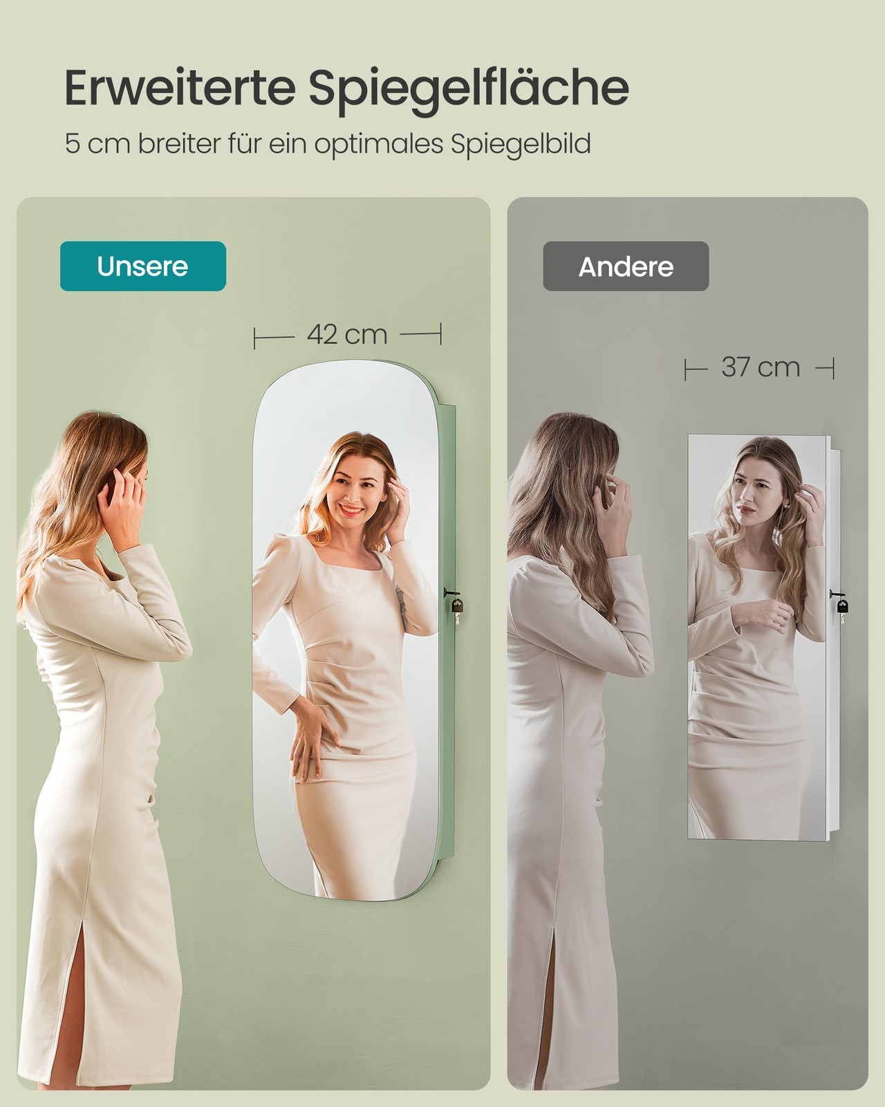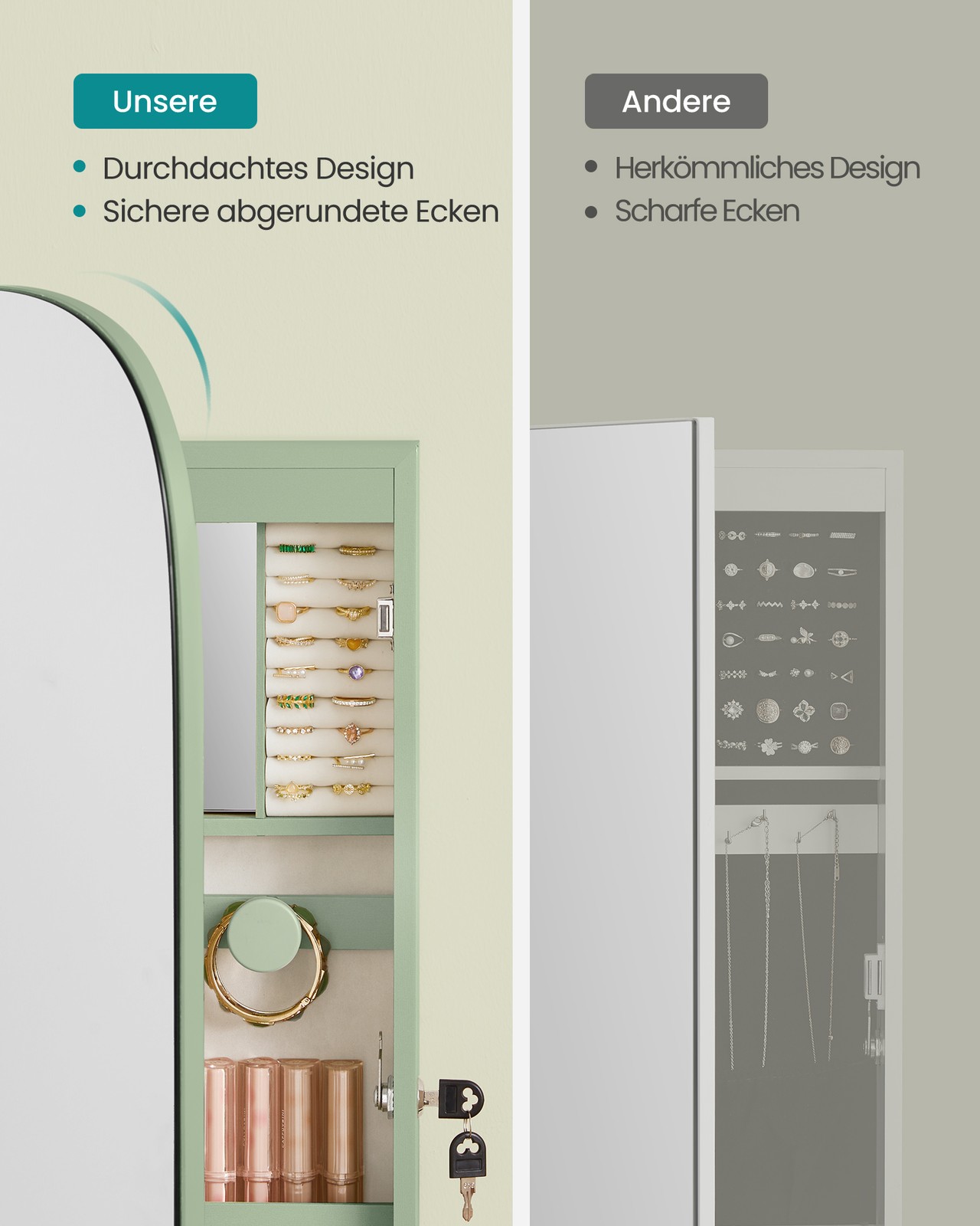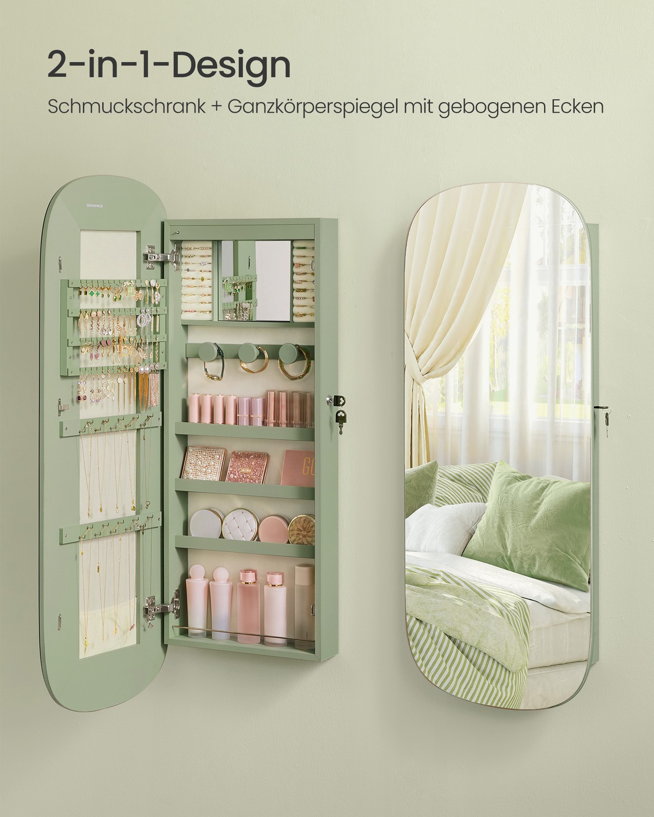 SONGMICS korukotelo, peilikaappi, korujen säilytyslaatikko LED-valaistuksella, lukittava, seinäkaappi peilillä, korvakoruille, kaulakoruille