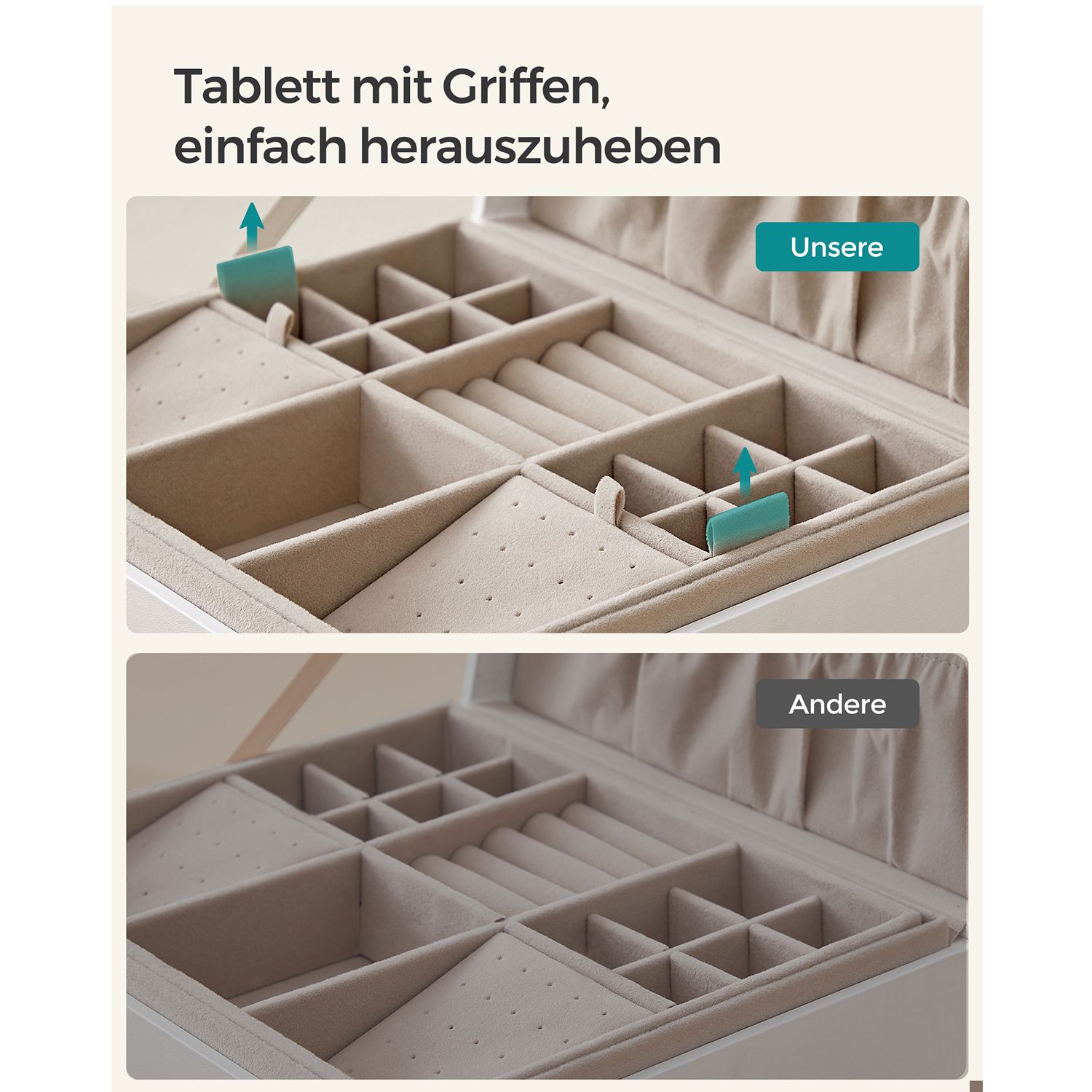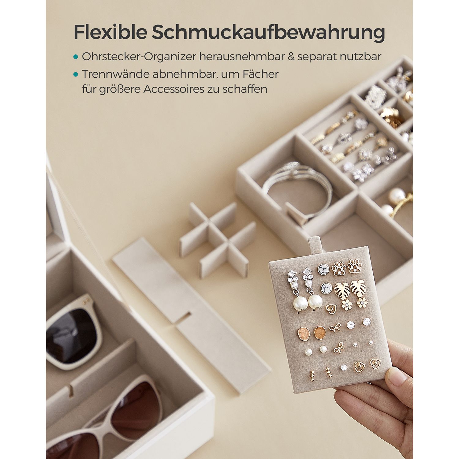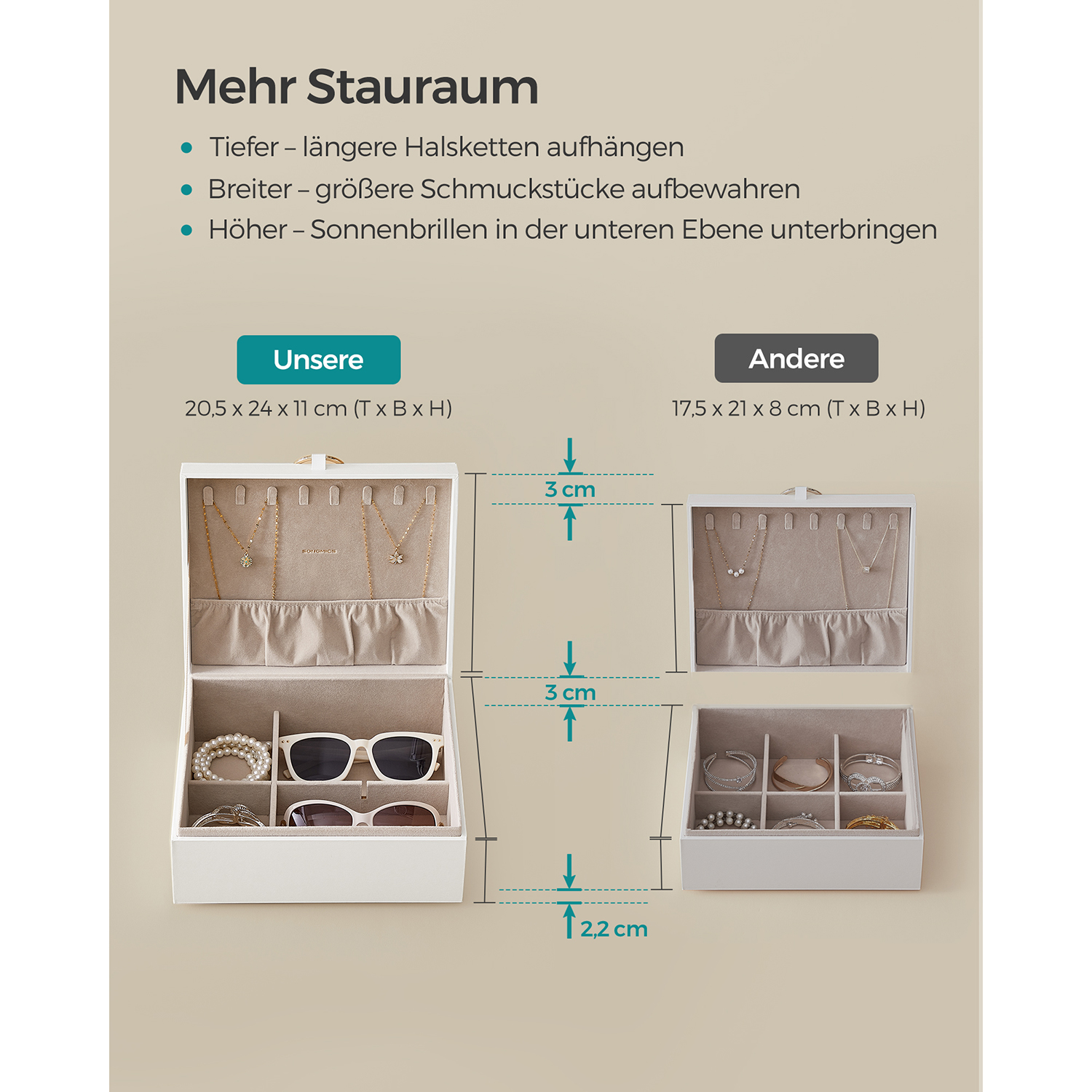 SONGMICS korurasia 2 tasoa, korurasia kahvalla, joustava koruteline, korurasia, korujen säilytys, leijuva vaikutelma, 20,5 x 24 x 11 cm, lahjaidea, musta JBC165B01