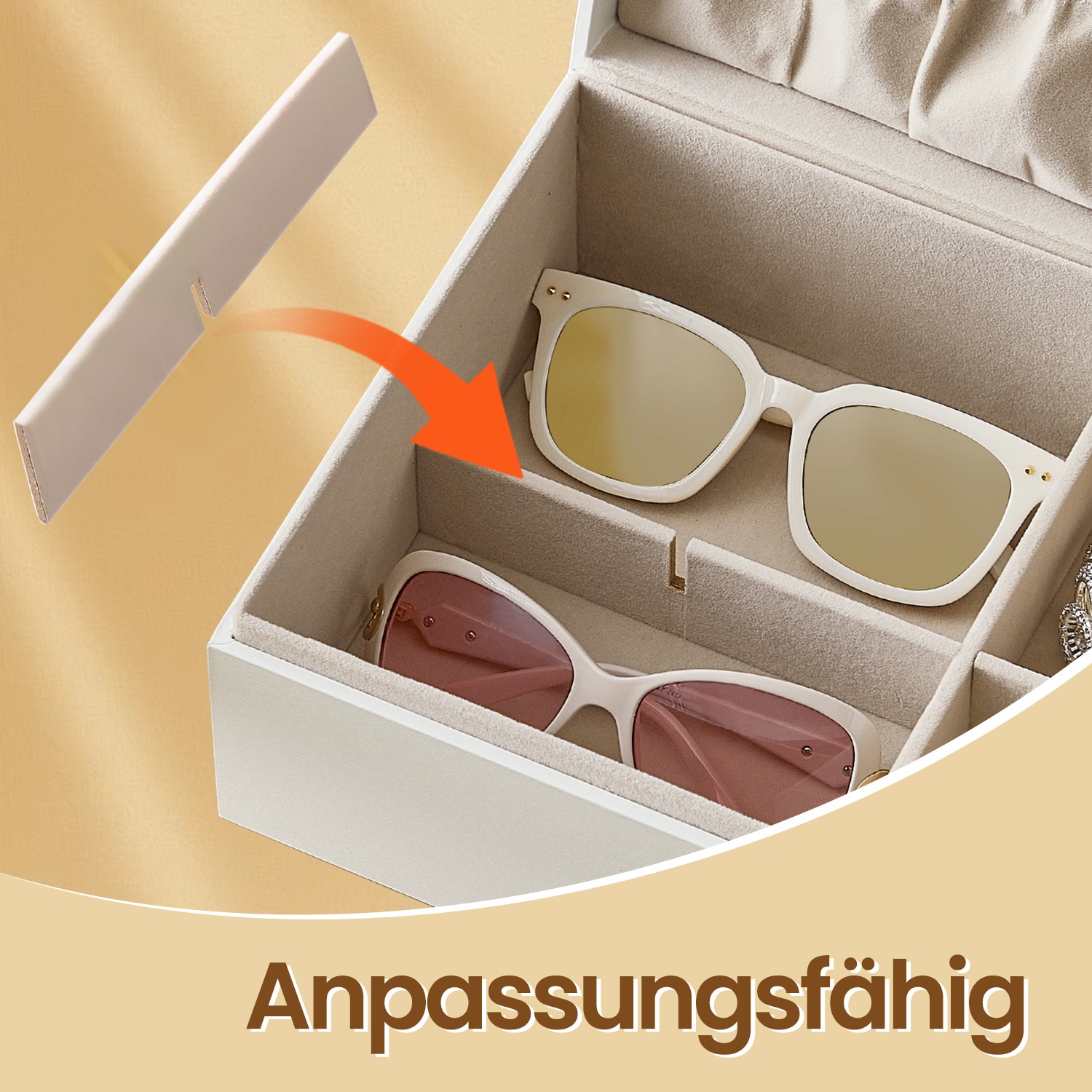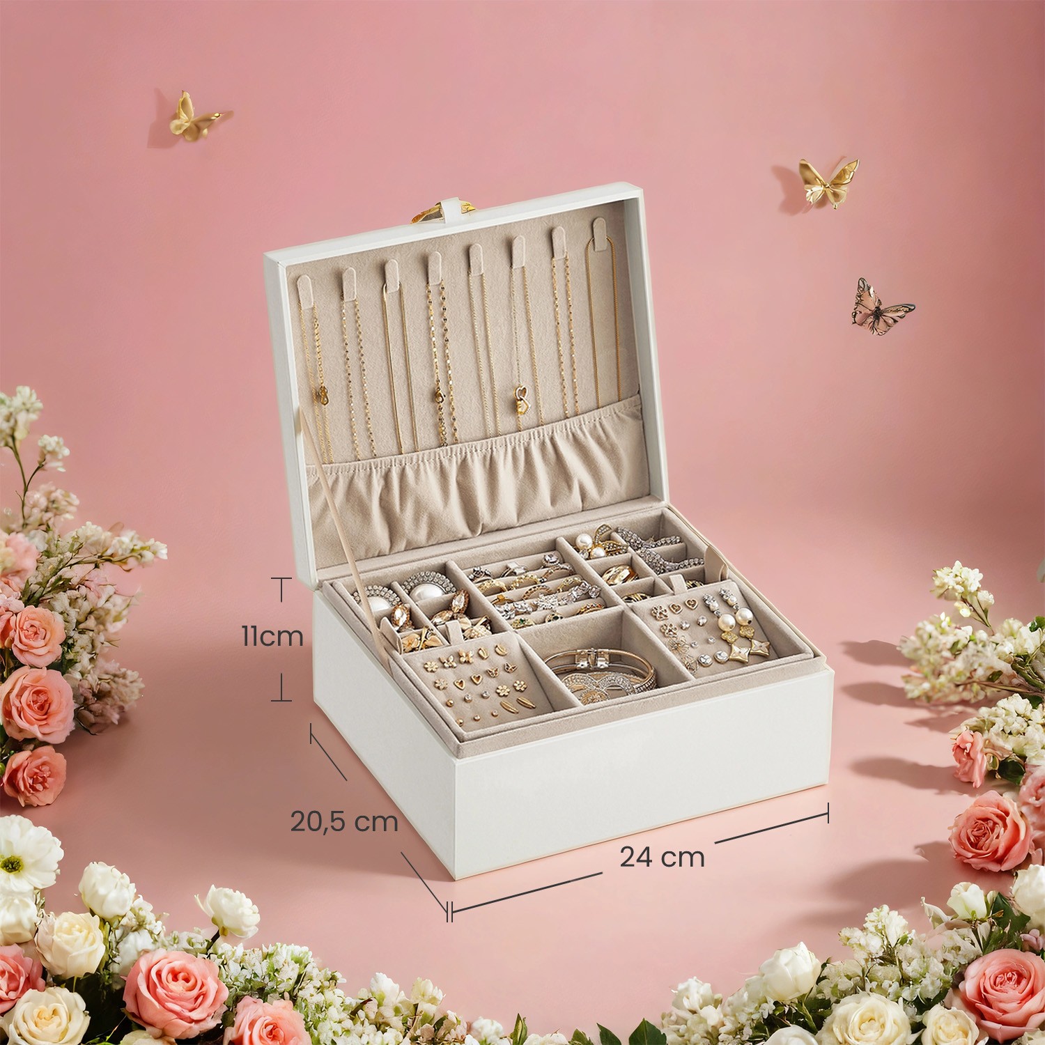 Korukotelo 2 tasoa, korukotelo kahvalla, joustava koruteline, korulaatikko, leijuva vaikutelma, 20,5 x 24 x 11 cm, valkoinen JBC165W01