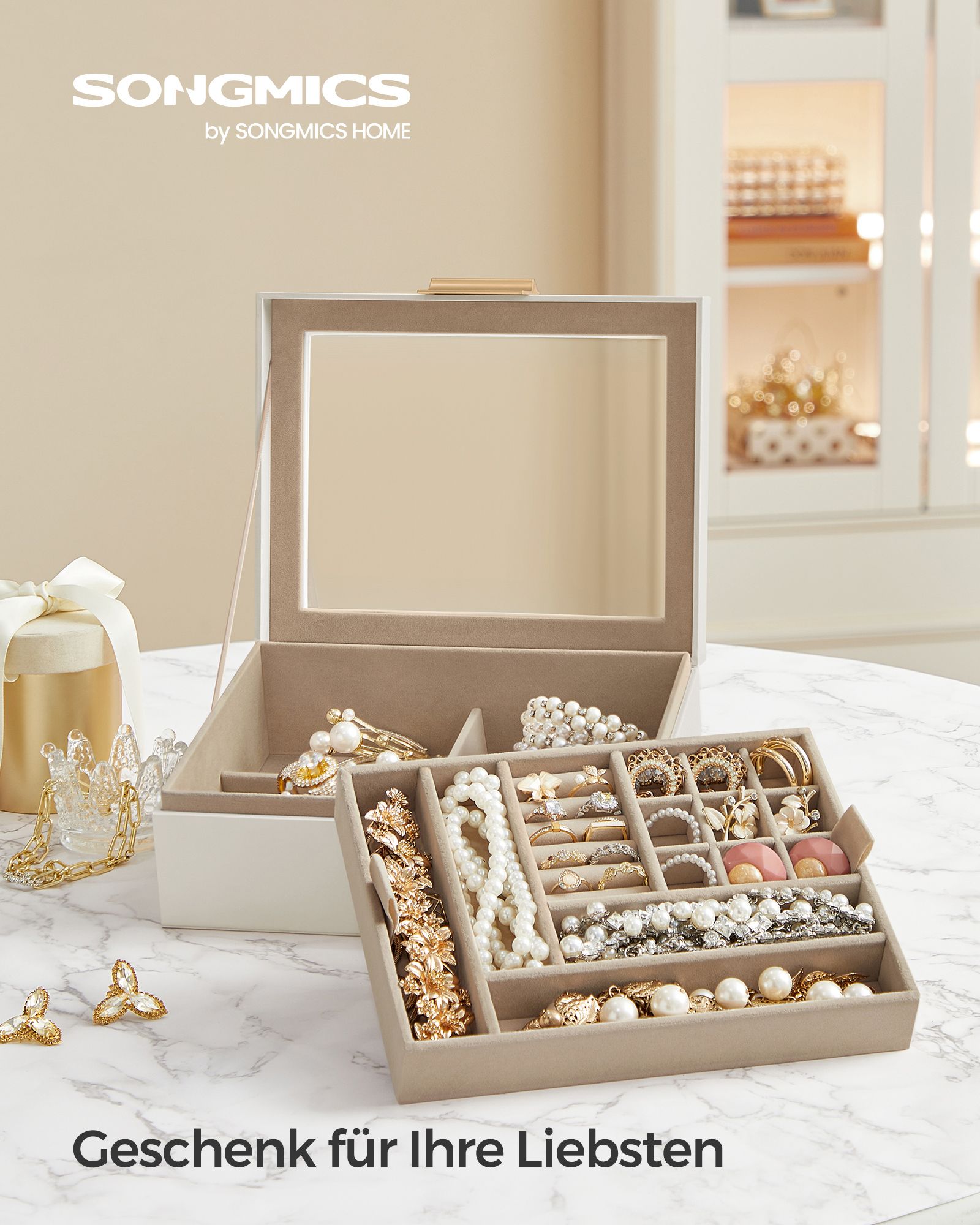 SONGMICS korurasia lasikannella, 2-tasoinen korurasia, lahja rakkaimmillesi, valkoinen JBC238W01