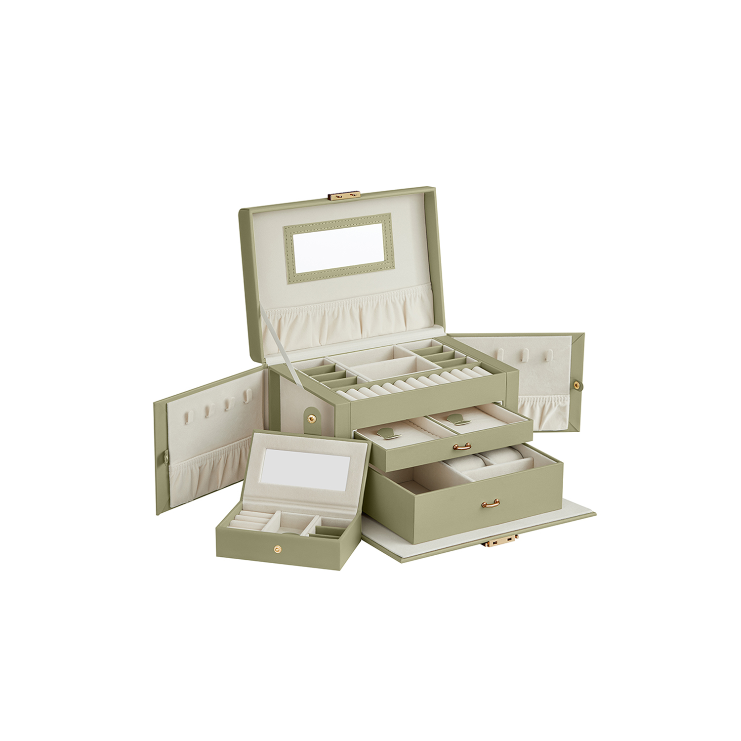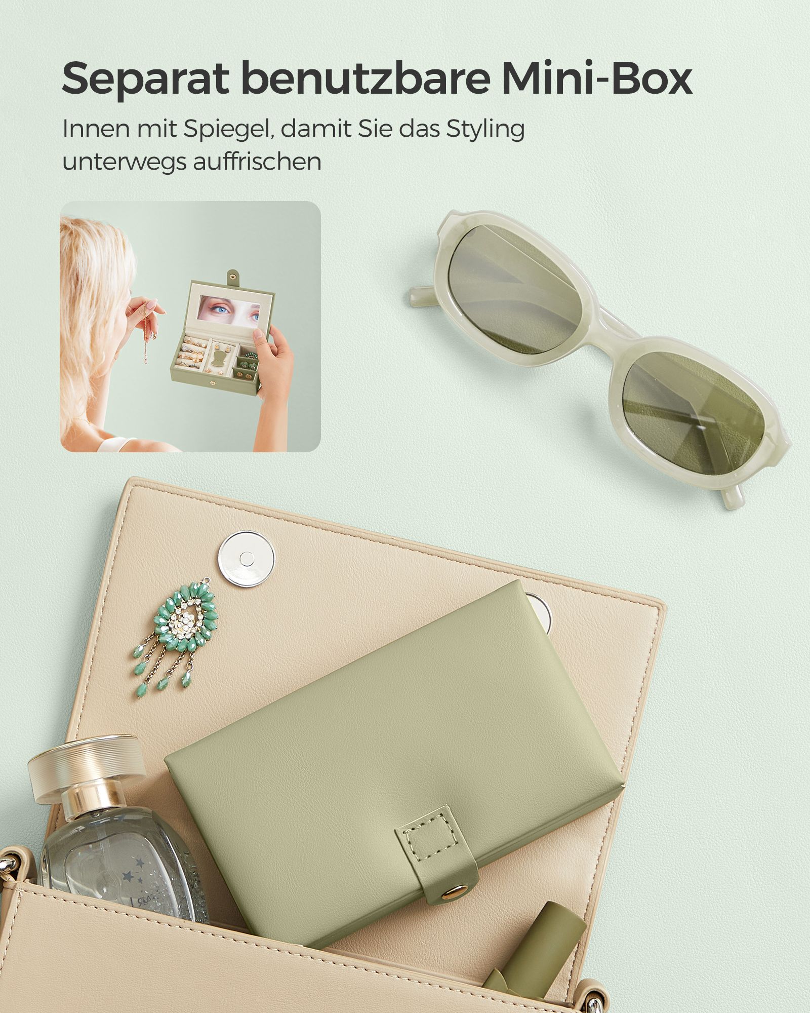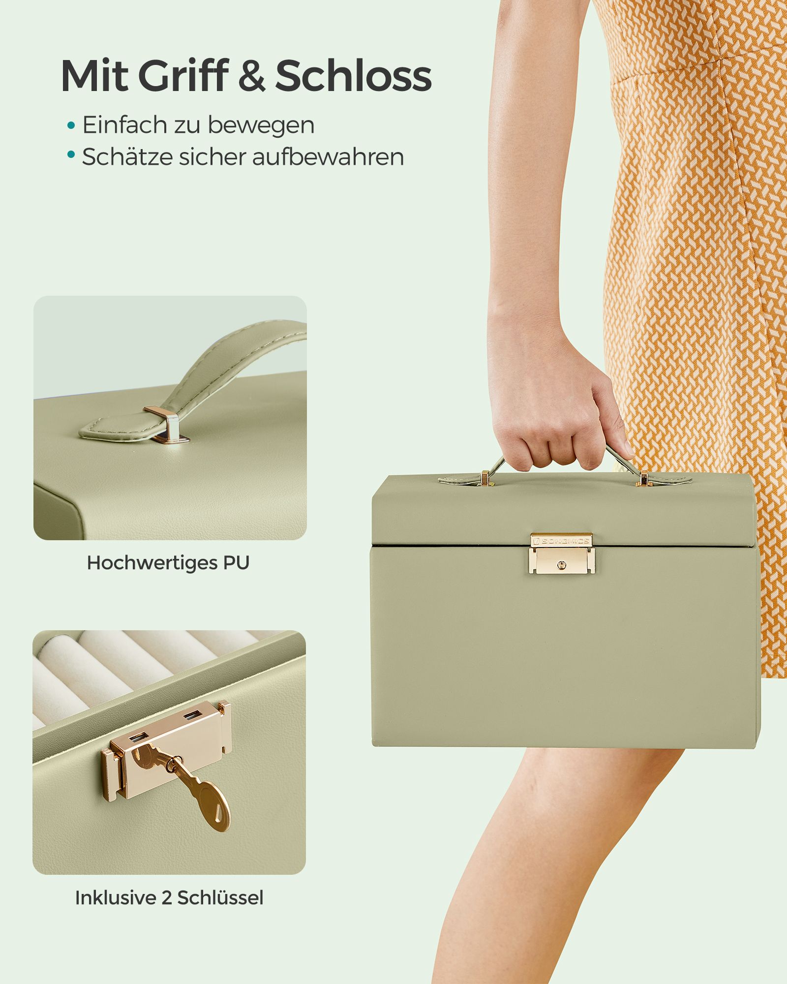 SONGMICS korulaatikko, korukotelo 2 laatikolla, lukittava, peilillä, irrotettava matkalaukku, sormuksille, rannekoruille, korvakoruille, kaulakoruille, samettivuori, lahjaksi, musta JBC121B