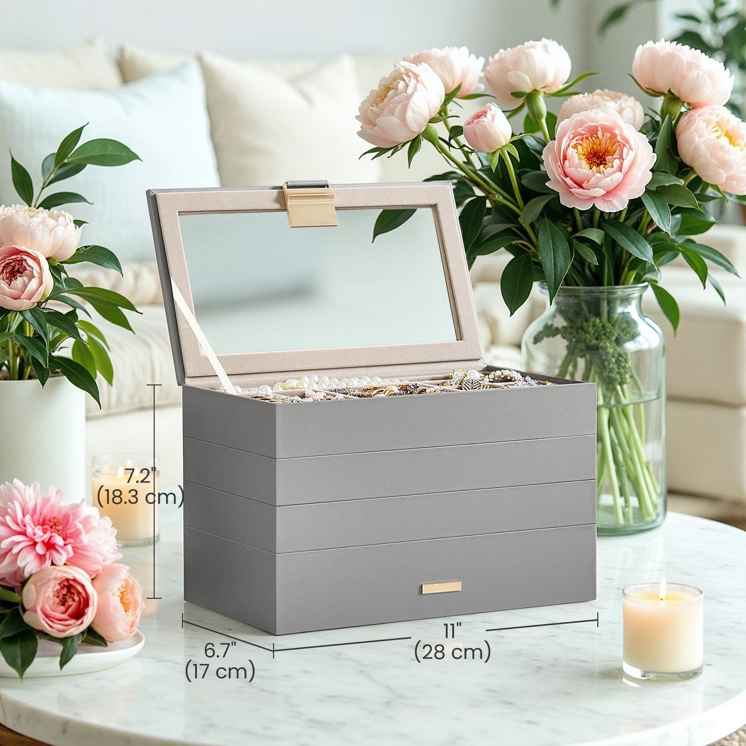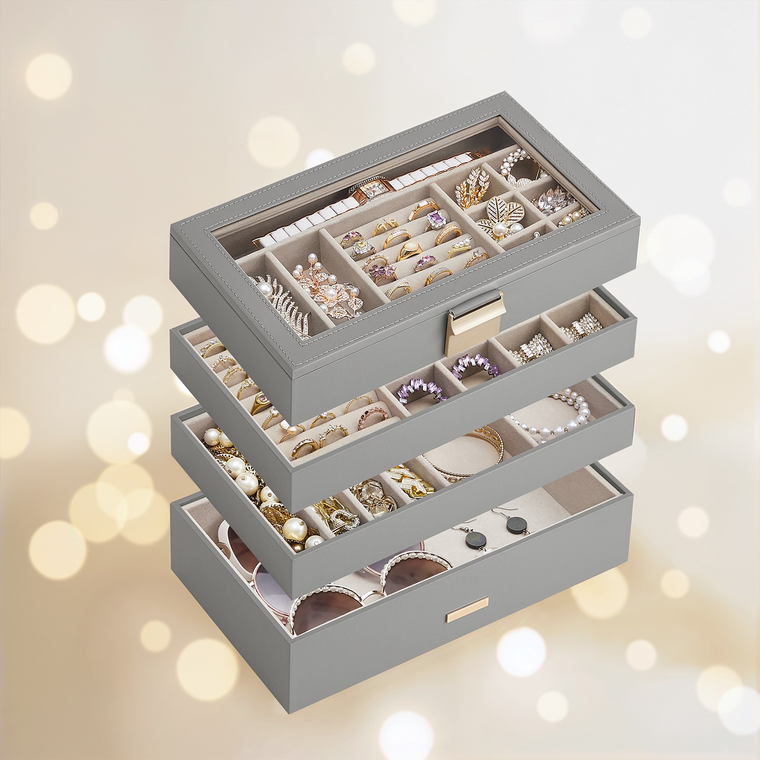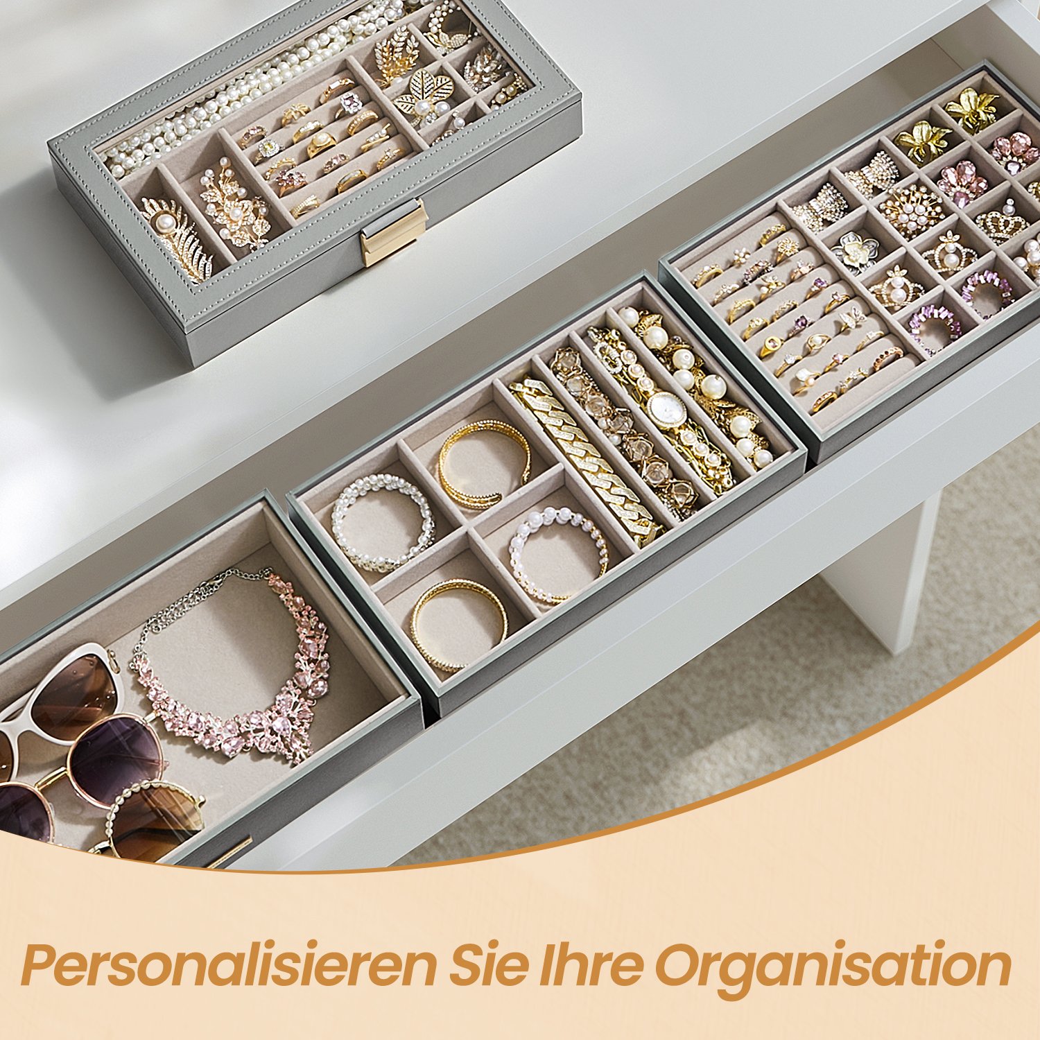 SONGMICS korurasia 4 tasoa, pinottava koruteline, suuri korurasia, korurasia lasikannella, 17 x 28 x 18,3 cm, koruteline laatikoihin, lahjaidea, valkoinen JBC164W01