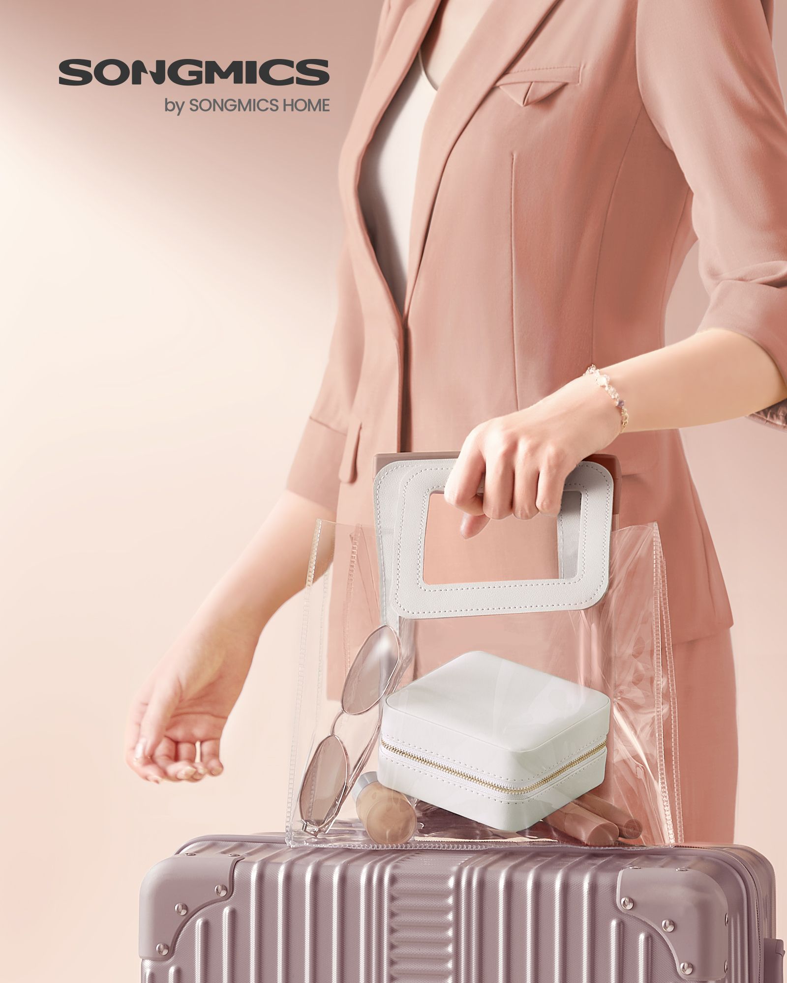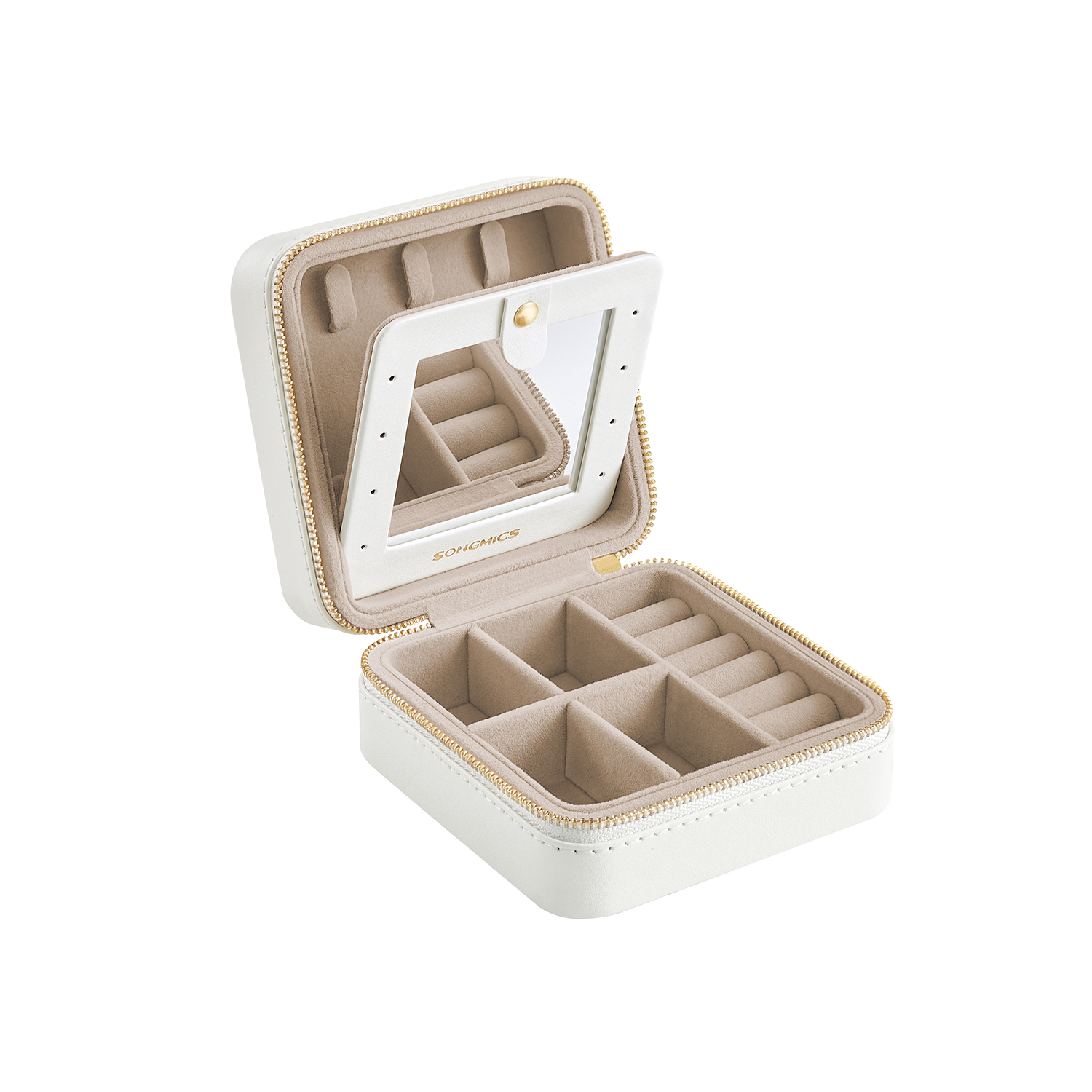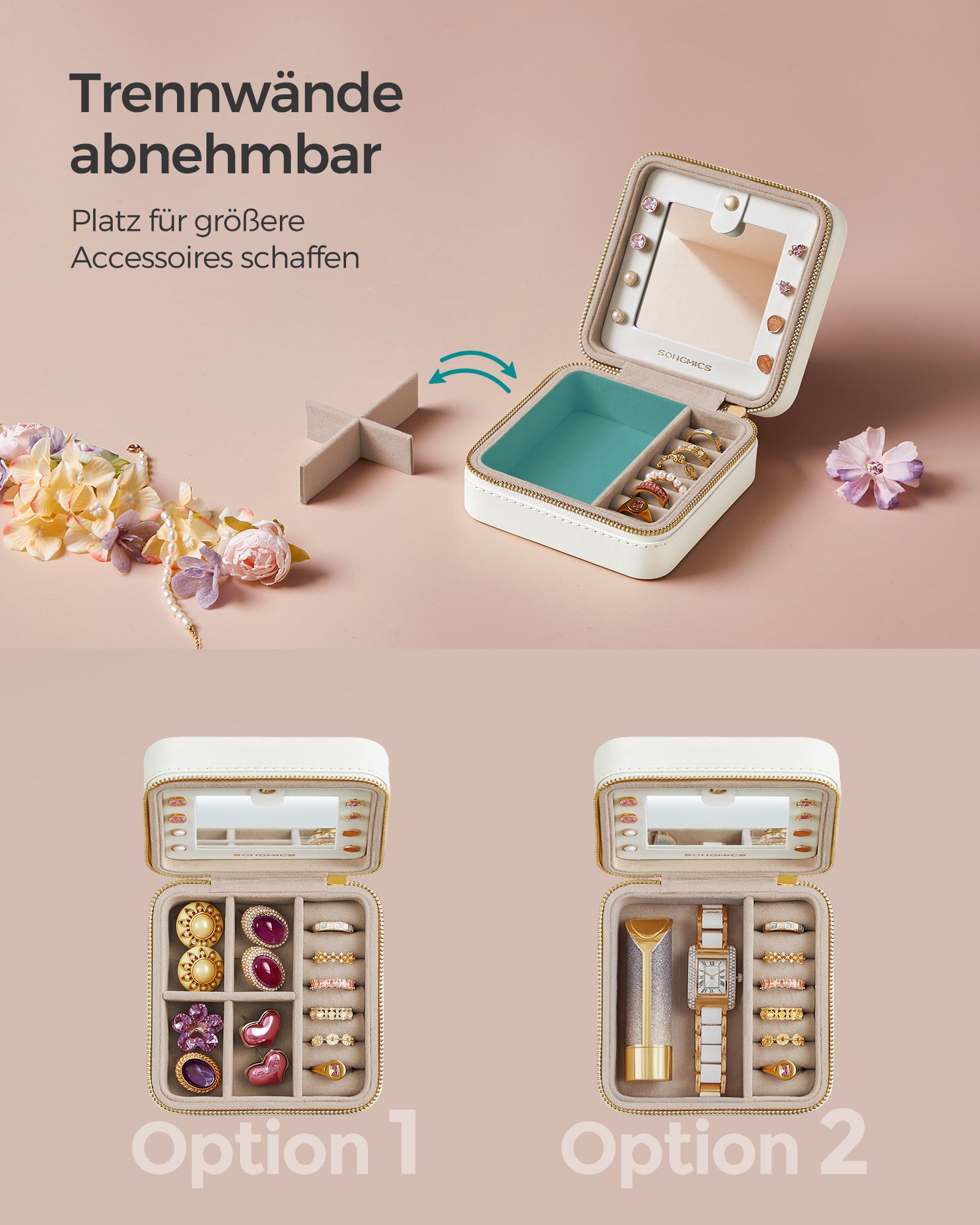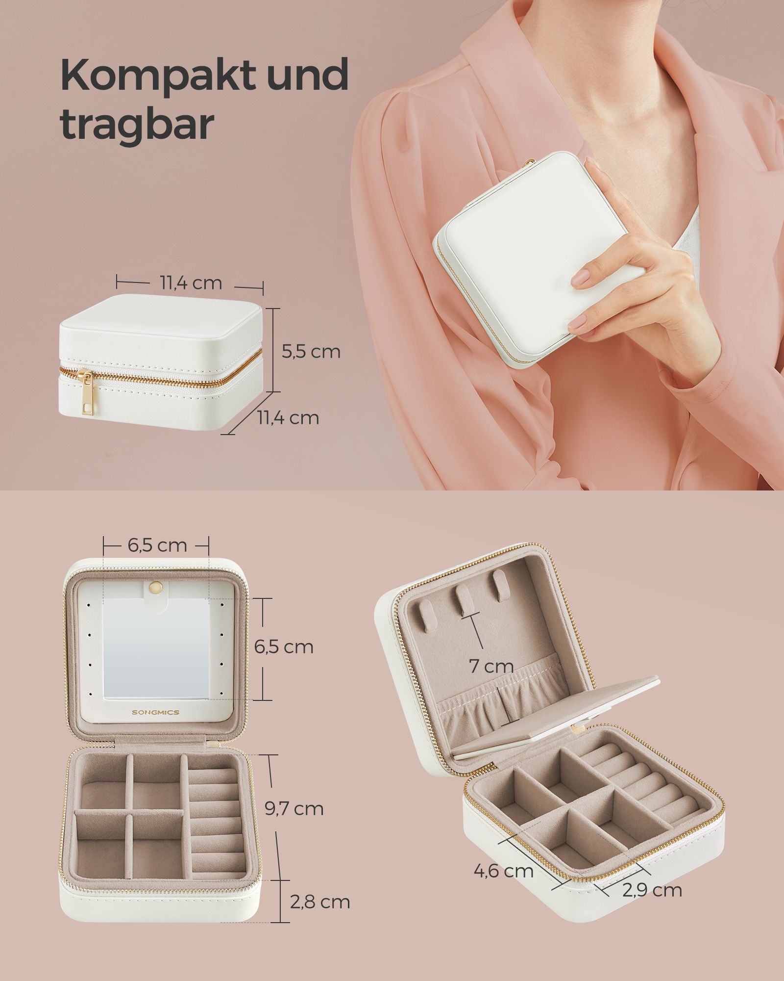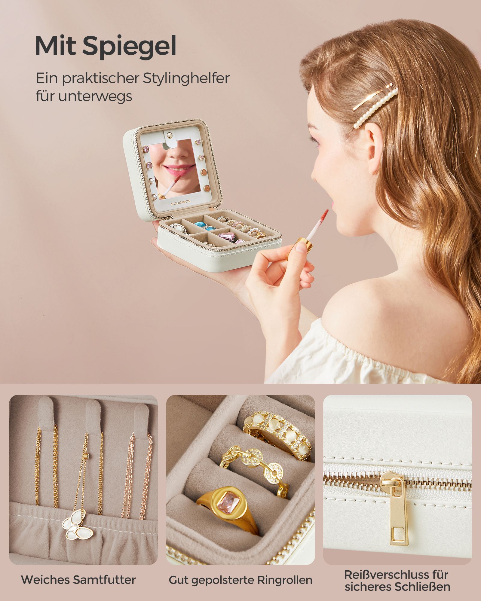 SONGMICS korurasia matkoille, pieni korurasia sormuksille, korvakoruille, sisällä peili, kermanvärinen JBC146BE