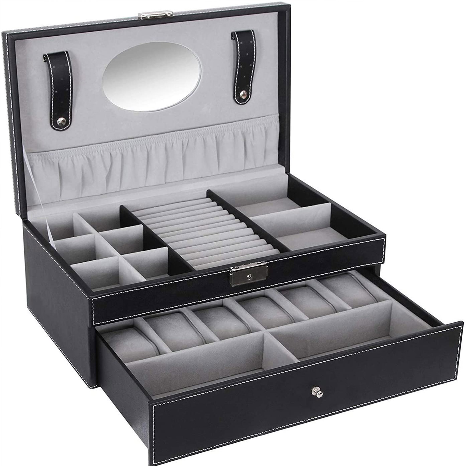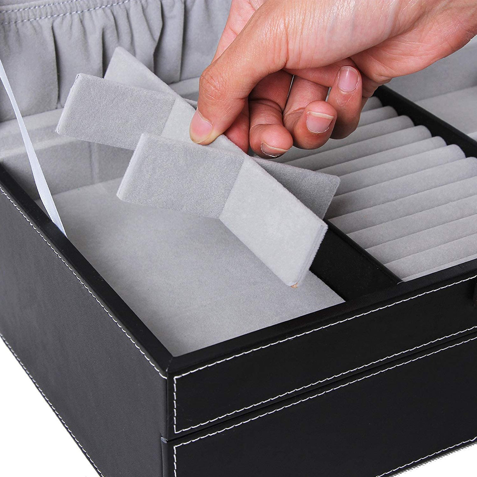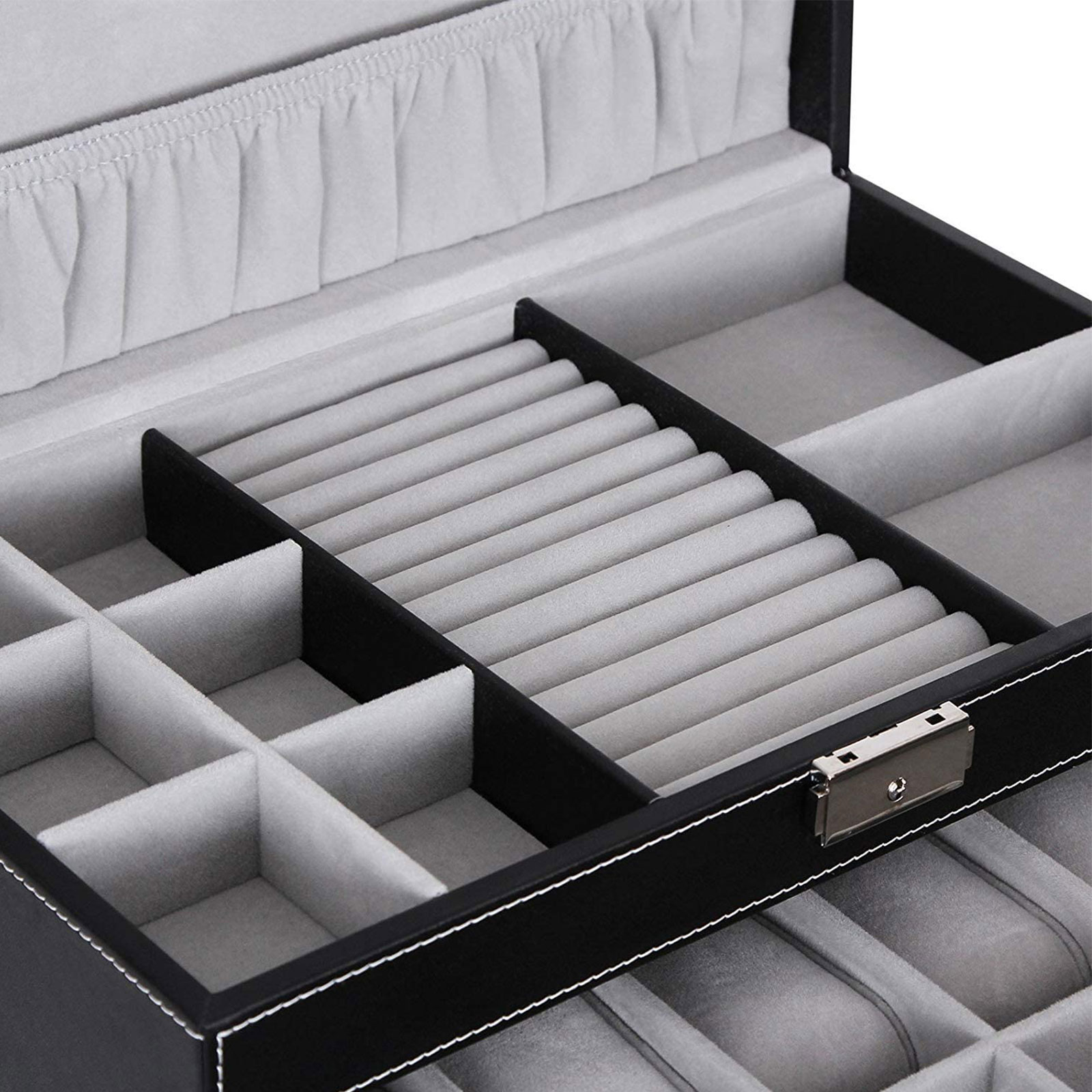 Laadukas materiaali: – MDF (keskitiheä kuitulevy) + sametti (sisäpuoli) + keinonahka (ulkopuoli) + lasi (näkyvä ikkuna) Monipuolinen käyttö: – Täydellinen henkilökohtaiseen ja yrityskäyttöön. Laatikko on ihanteellinen kellojen esittelyyn tai säilytykseen. Kellosi ovat siististi ja tilaa säästäen säilytettyinä ja aina käden ulottuvilla. Säilytys ja hoito:- Aseta kellolaatikko tuuletettuun tilaan ja vältä jättämästä laatikkoa pitkäksi aikaa auringonvaloon tai kosteaan tilaan. Sopiva lämpötila: 10-40 ℃. – Pinnan tahrat voidaan pyyhkiä pois hieman kostutetulla liinalla. Vältä veden pääsyä kellolaatikkoon.- Käytä säännöllisesti erityistä nahkahuoltotuotetta, jotta nahka säilyttää kiiltonsa pitkään. – Suojaa kellolaatikko varastoinnin aikana puristukselta. – Älä säilytä kellolaatikkoa kemikaalien kanssa. Toimitussisältö: – 1 x kellolaatikko – 2 x avain