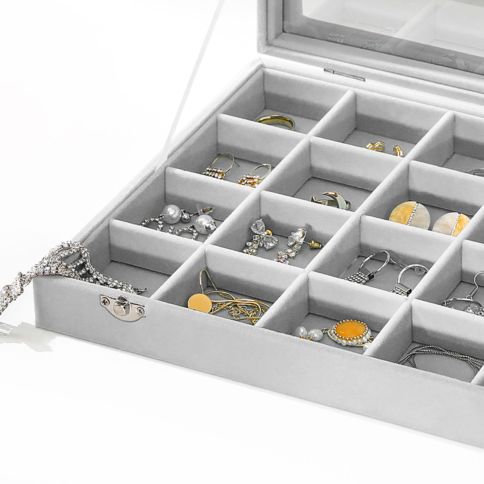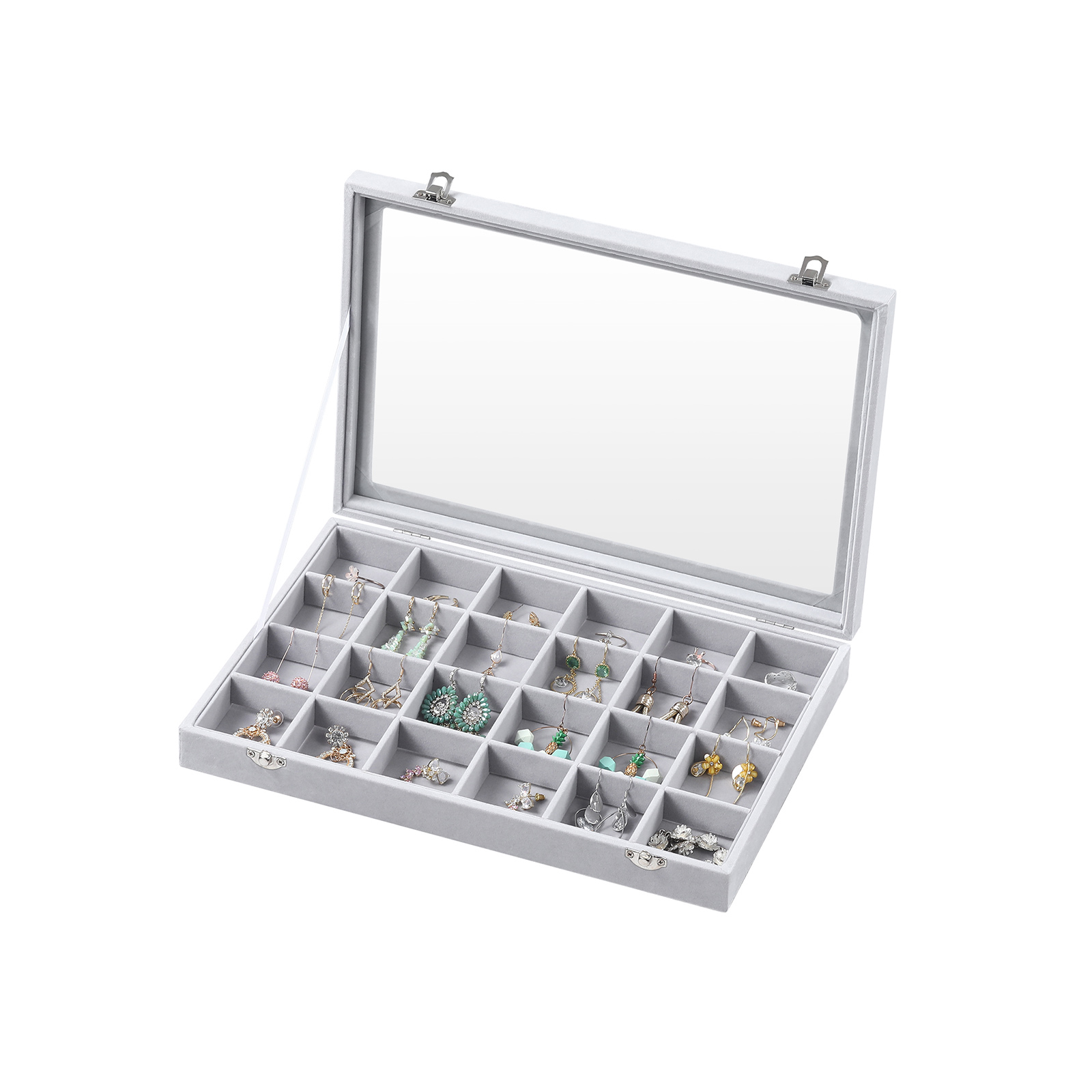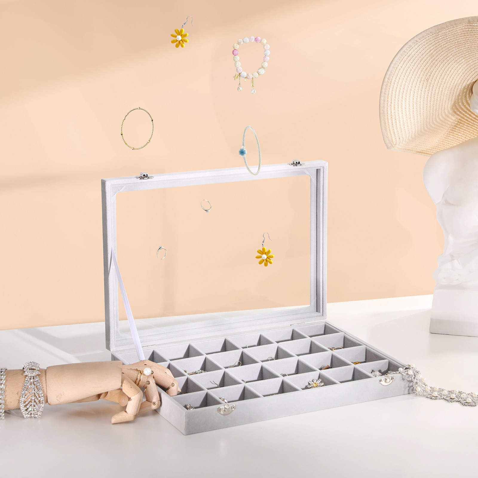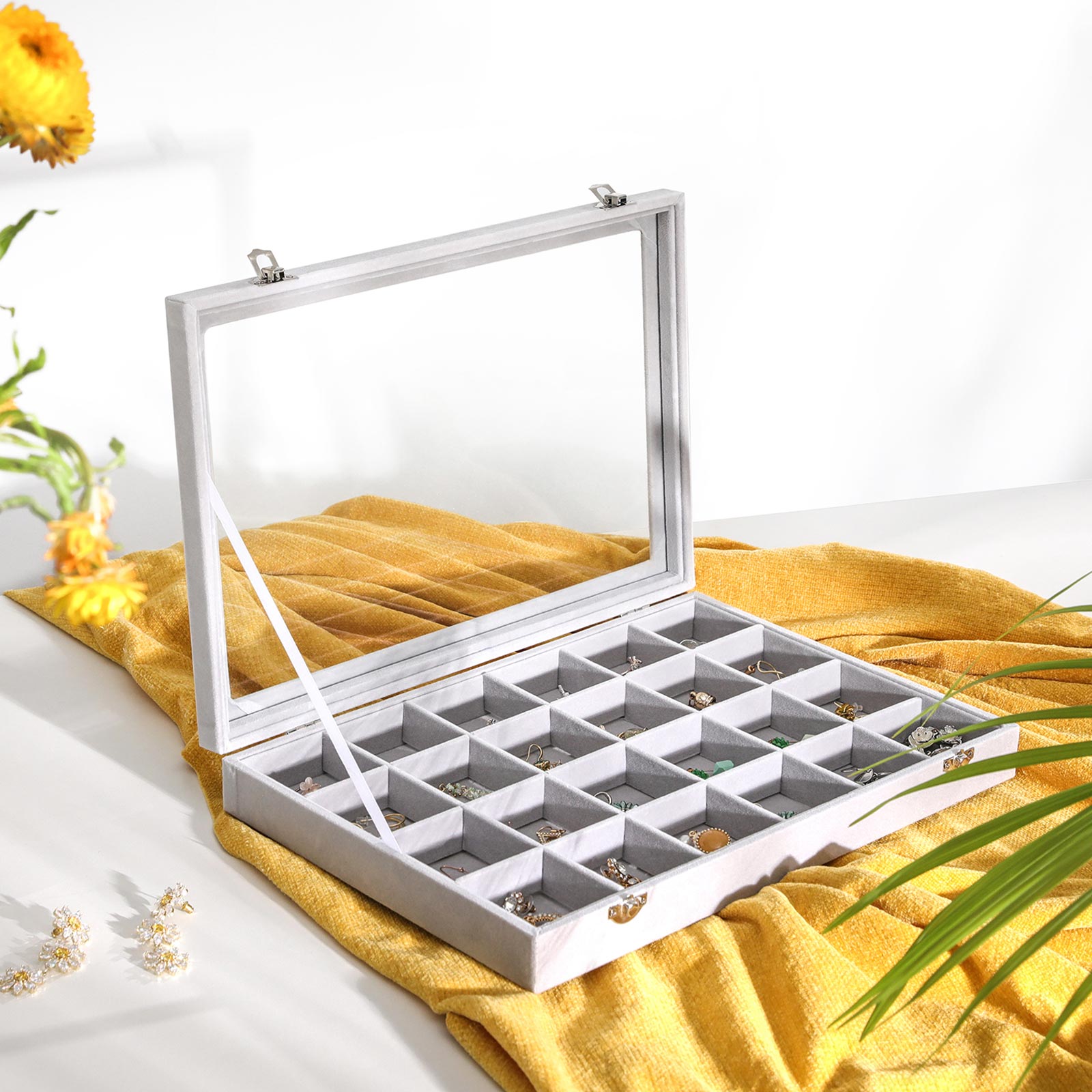 Näytä aina hyvältä Suututko joka kerta, kun et löydä korvakoruja? On aika muuttaa tilanne! Tämän klassisen SONGMICS-korurasian avulla voit järjestää kaulakorut ja korvakorut niin, että löydät ne hetkessä. Tästä lähtien voit viimeistellä asusi joka päivä ajallaan. Tuotetiedot: – Väri: Harmaa – Materiaali: MDF (keskitiheä kuitulevy), sametti, lasi – Kokonaiskoko: 35 x 24 x 5 cm (P x L x K) – Paino: 0,9 kg Toimitussisältö: – 1 x korurasia SONGMICS Huomautukset: – Älä altista tuotetta suoralle auringonvalolle tai pidä sitä pitkään kosteassa ympäristössä.