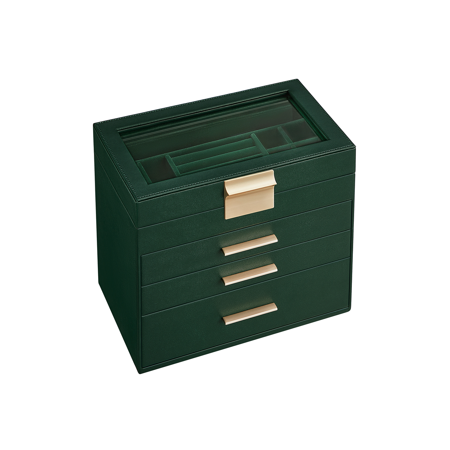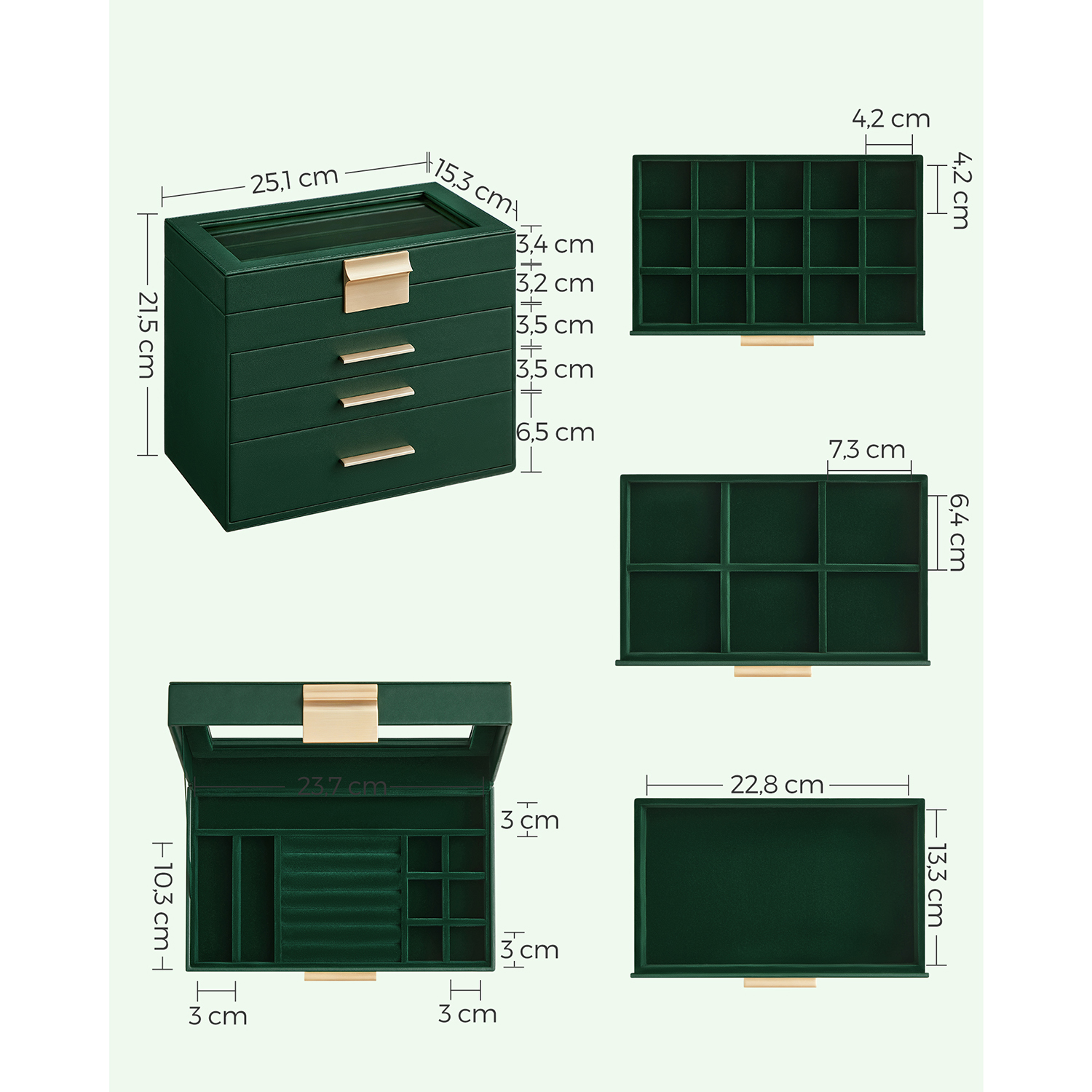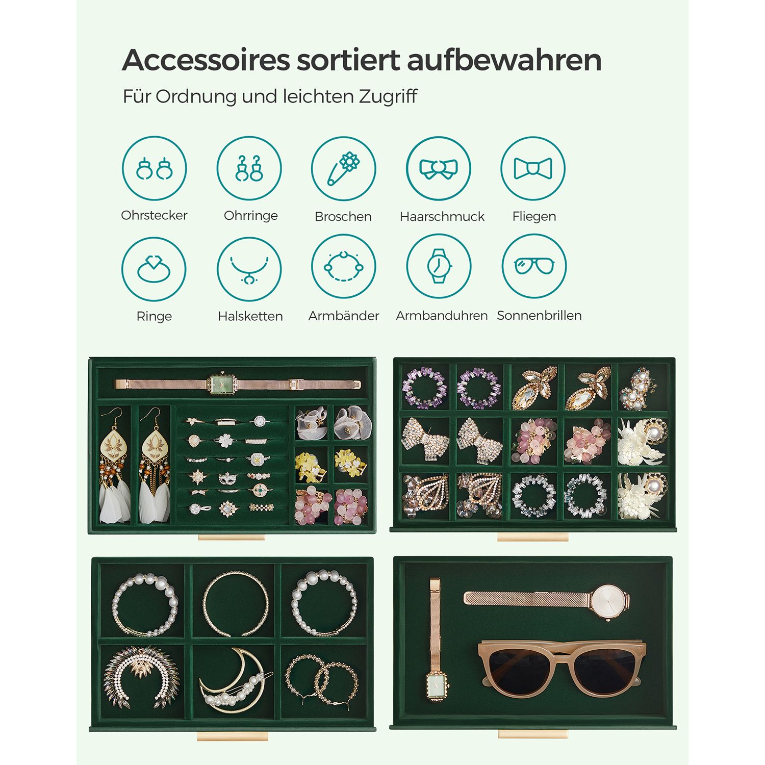 SONGMICS korurasia, 4-tasoinen korulaatikko, korurasia lasikannella, 3 laatikkoa, aurinkolaseille, suurille koruille, korujen säilytys, moderni, grafiitinmusta-kultainen JBC161B02