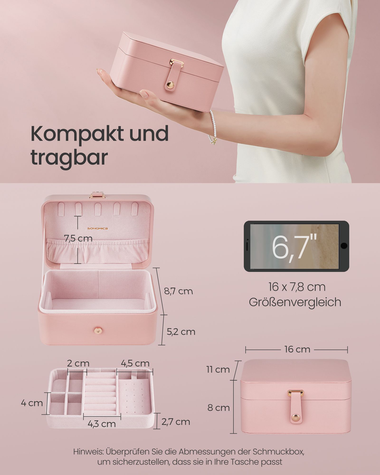 SONGMICS korurasia matka, pieni korurasia, 2 tasoa korujen säilytykseen, kannettava, korujen matkalaukku, suuremmille asusteille