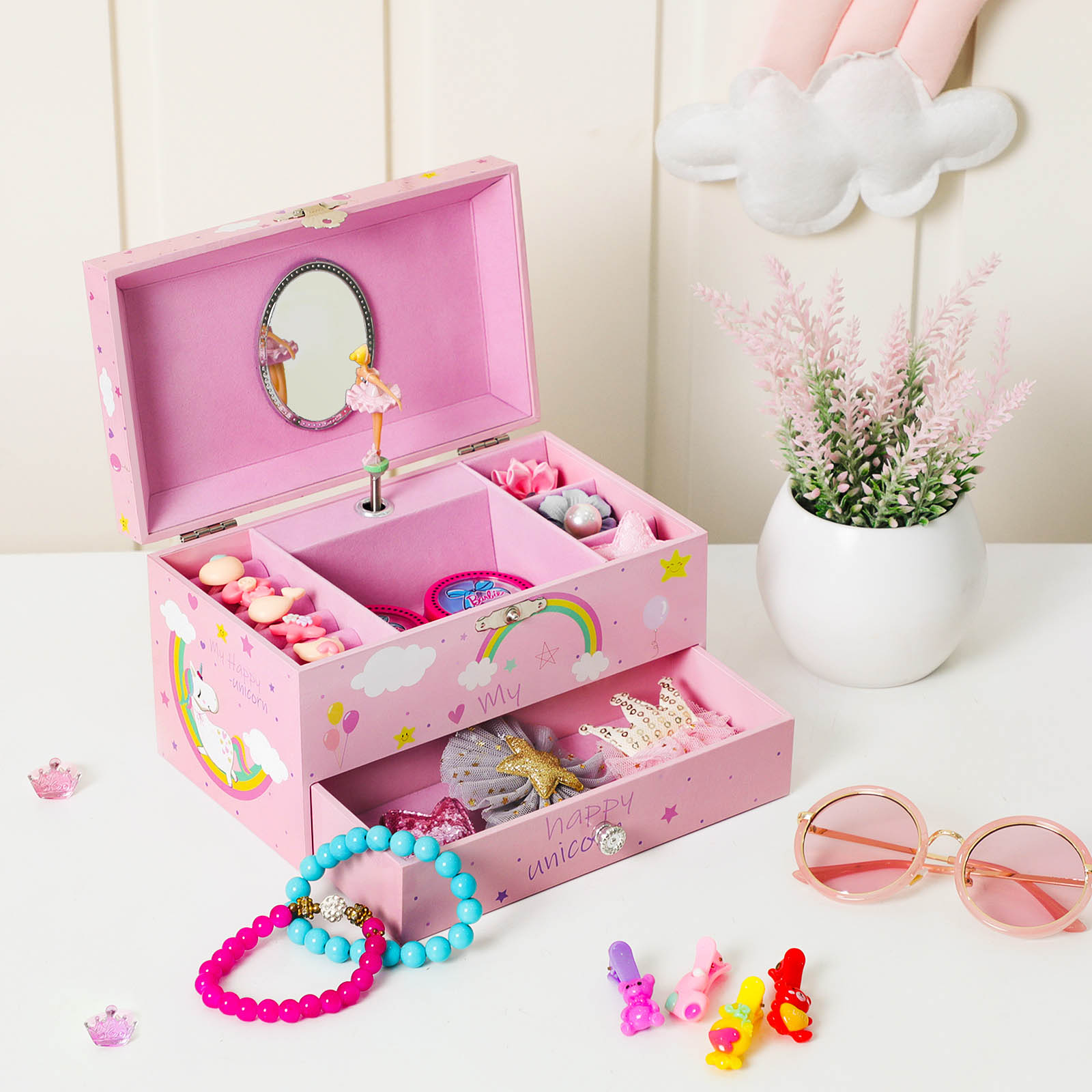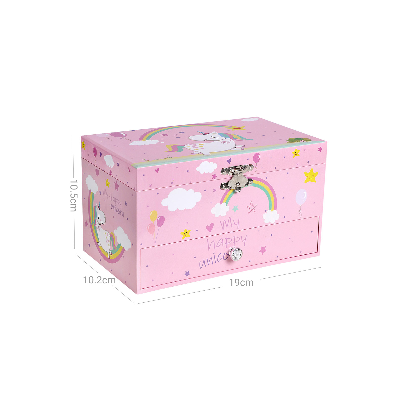 Etkö keksi, mitä lahjaksi lapsillesi? Tämä SONGMICS:n korurasia musiikilla on kokeilemisen arvoinen! Se hurmaa viehättävällä balerinalla, useilla lokeroilla, sormuspaikoilla ja laatikolla – tämä lahja ilahduttaa varmasti rakkaasi.Korujen valitseminen on hauskaa. Kun kansi avataan, esiin tulee viehättävä balerina, joka tanssii suloisen melodian tahdissa ja vie tyttäresi satumaiseen maailmaan. ”Mitä koruja minun pitäisi käyttää, jotta näyttäisin satujen kauniilta keijulta?” ABS-peilin ansiosta prinsessasi voi tarkistaa, sopivatko valitsemansa korut hänelle. Melodia soi 4–5 minuuttia. Se on siis tarpeeksi aikaa päätöksen tekemiseen. Tuotetiedot: – Väri: vaaleanpunainen – Materiaali: MDF (keskitiheä kuitulevy), koristepaperi, sametti ja ABS-peili – Koko: 19 x 10,2 x 10,5 cm (P x L x K) – Paino: 0,54 kg Toimitus sisältää: – 1 x soittorasia