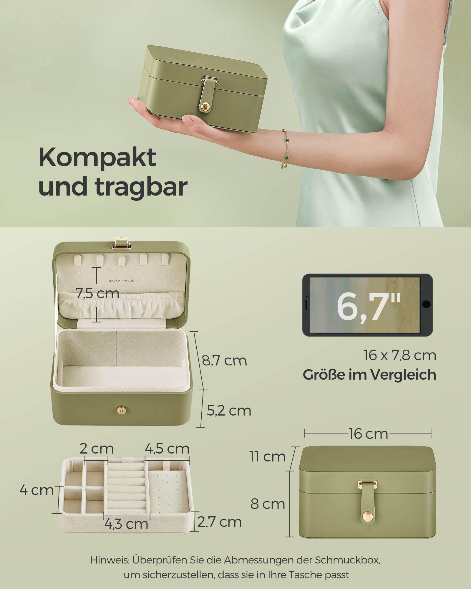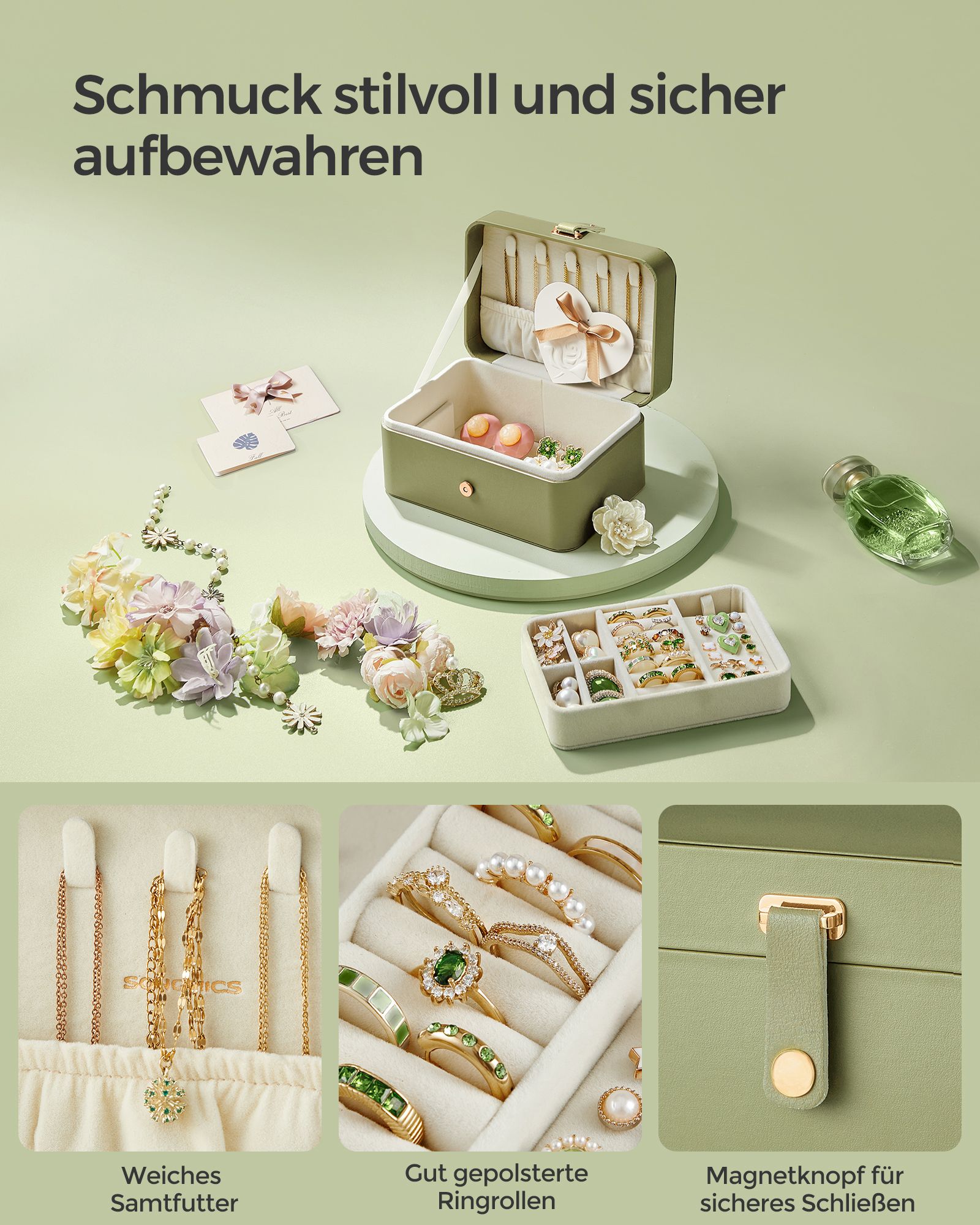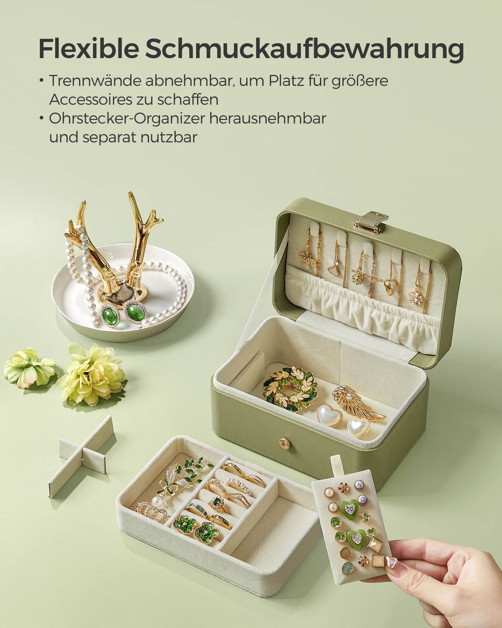 SONGMICS korurasia matka, pieni korurasia, 2 tasoa korujen säilytykseen, kannettava, korujen matkalaukku, suuremmille asusteille
