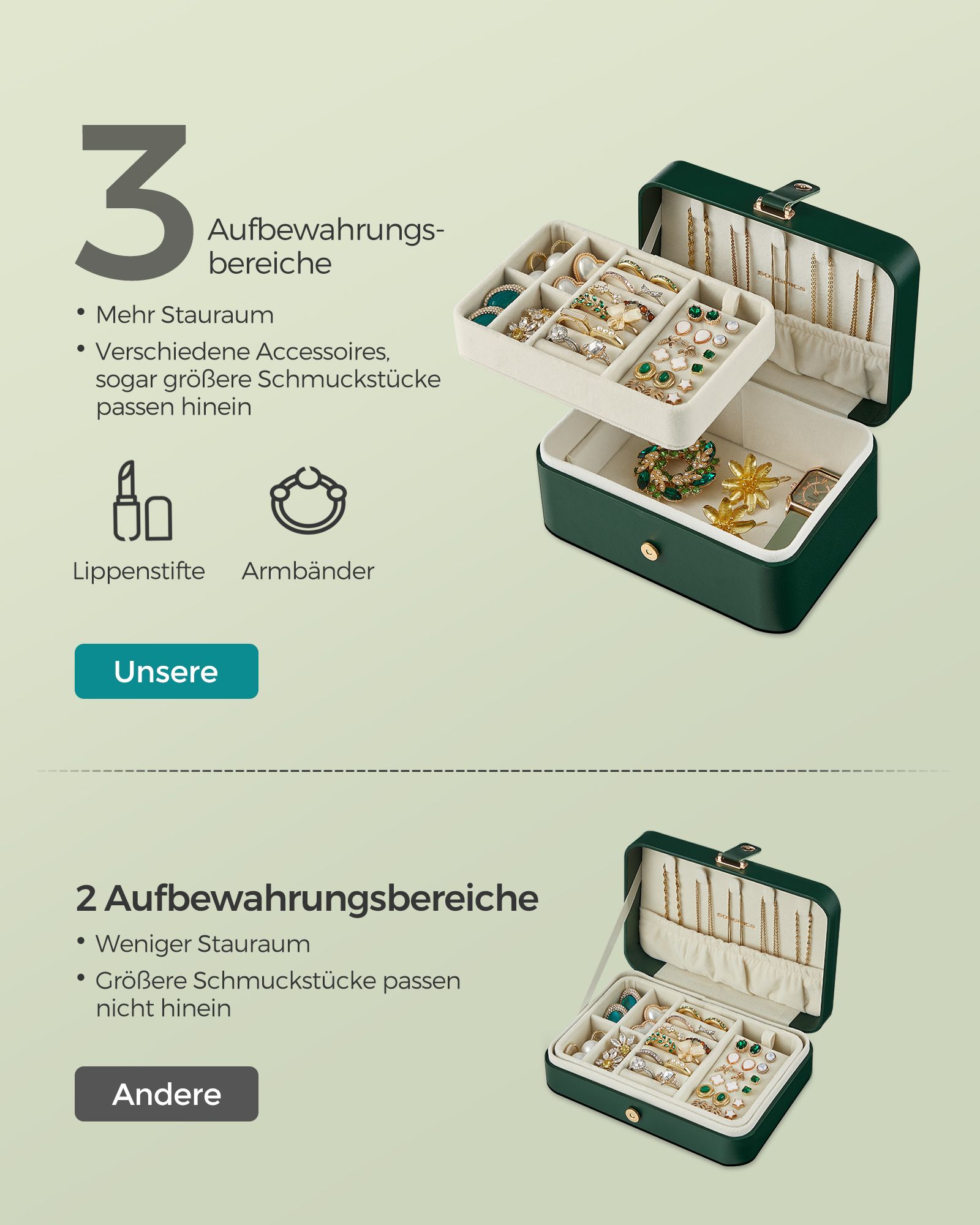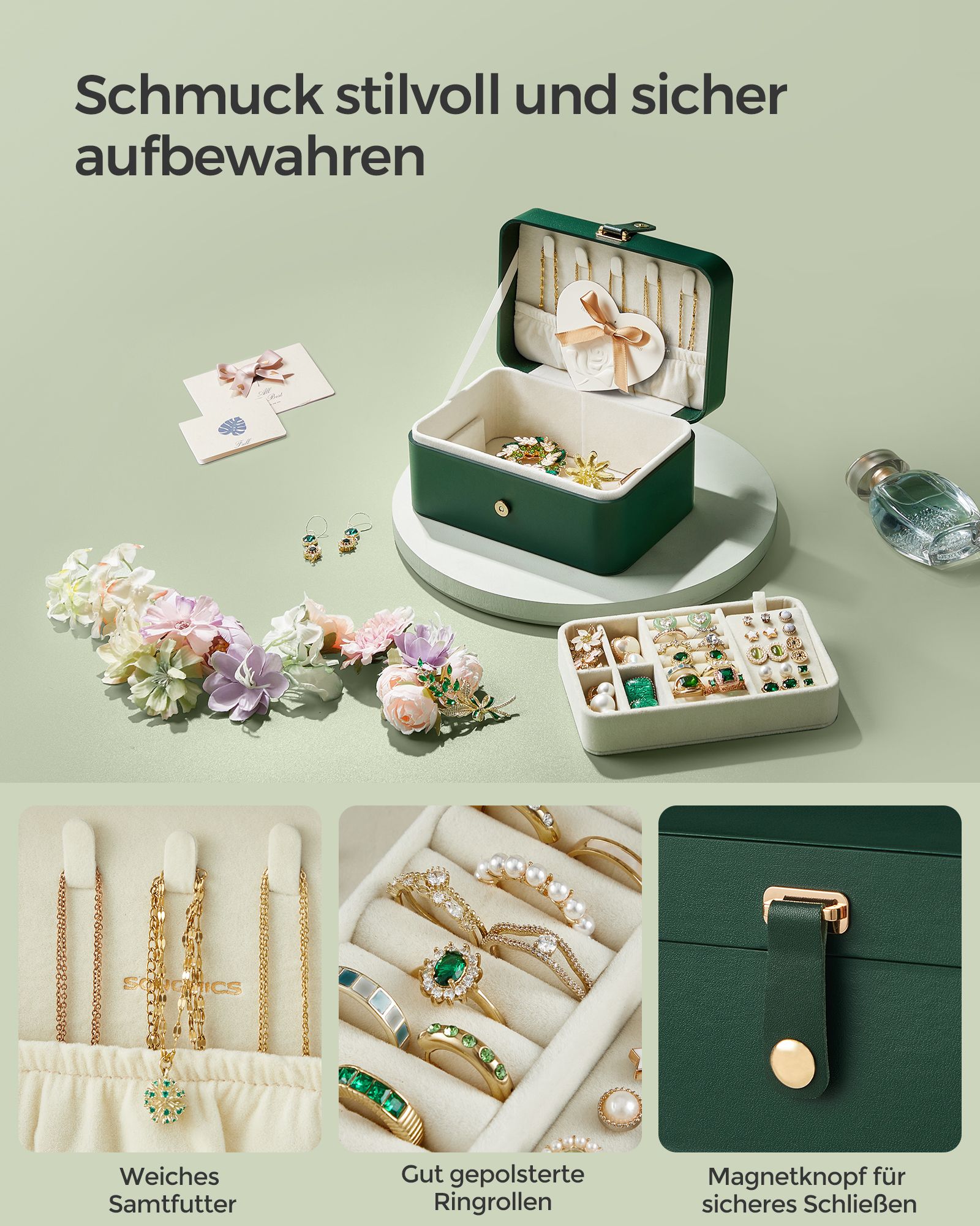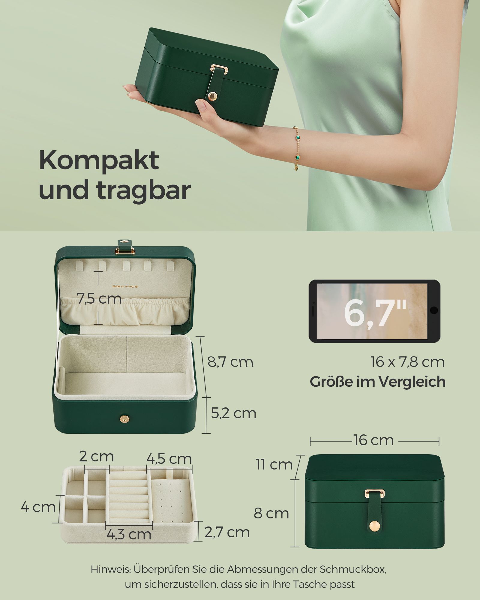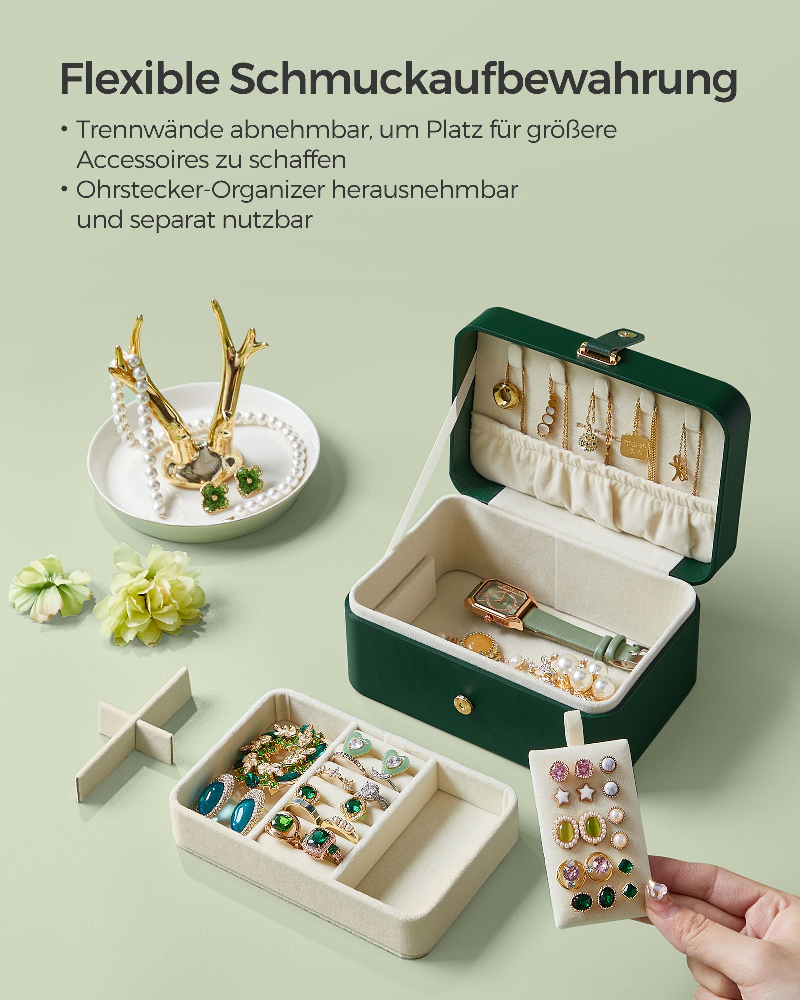 SONGMICS korurasia matka, pieni korurasia, 2 tasoa korujen säilytykseen, kannettava, korujen matkalaukku, suuremmille asusteille