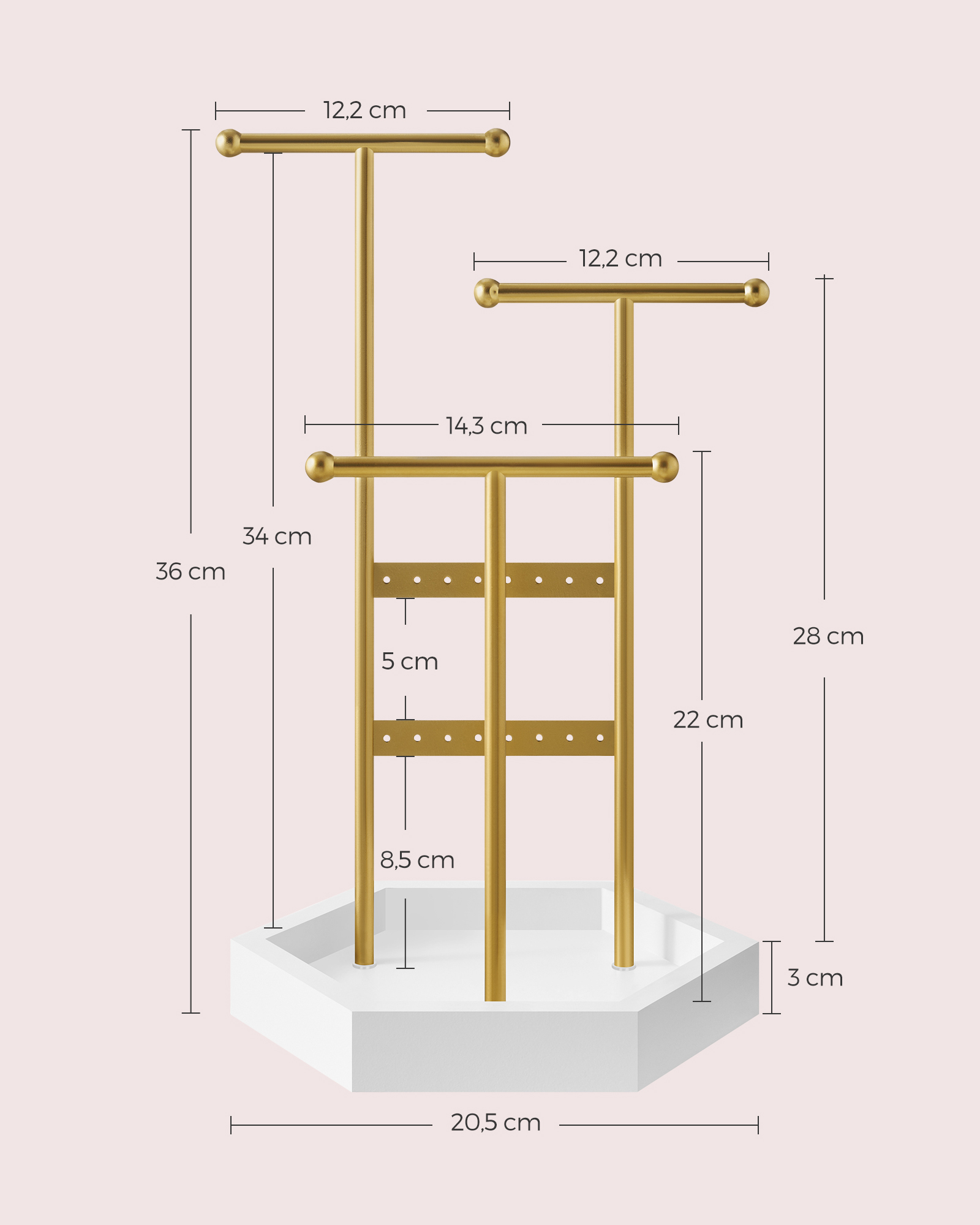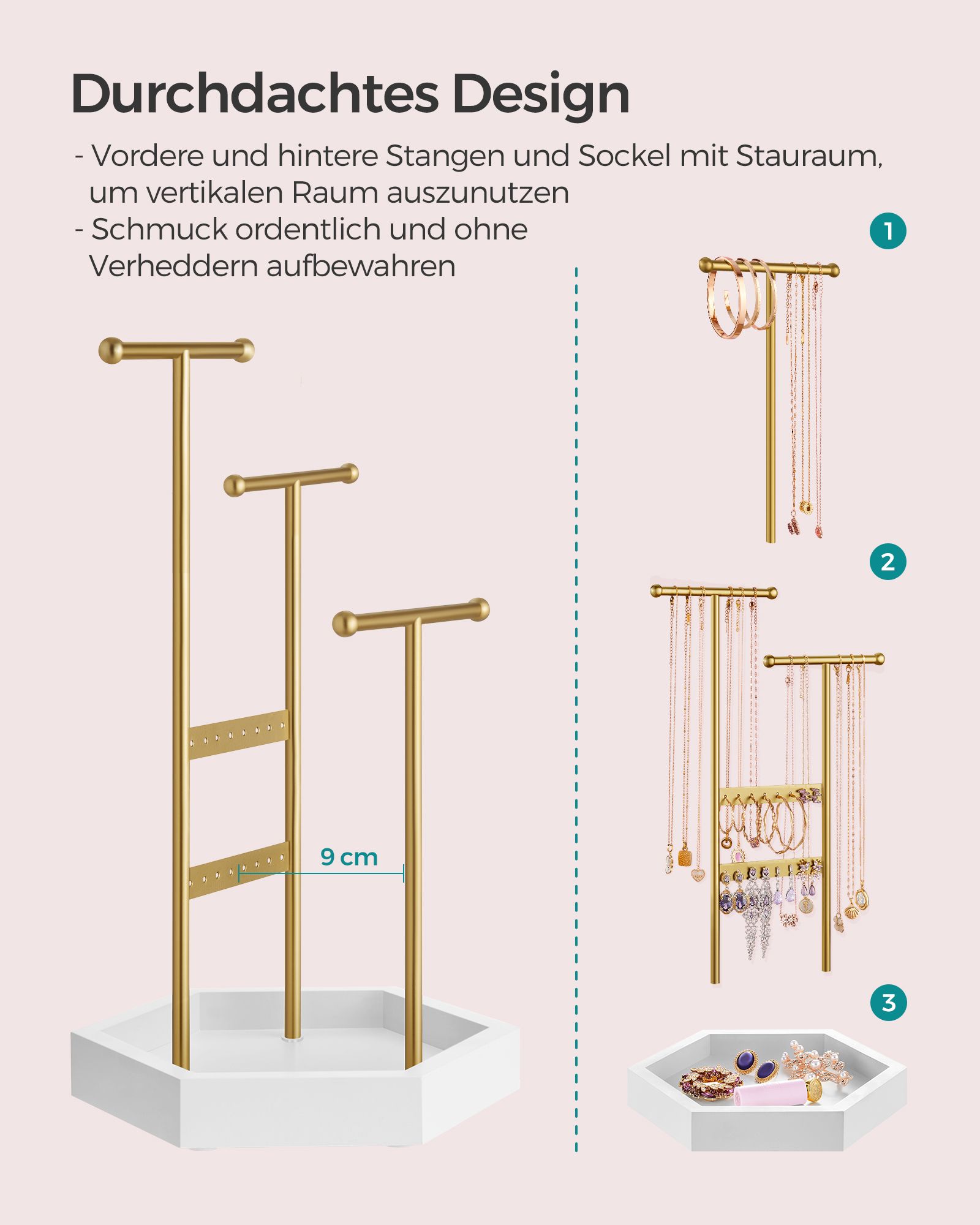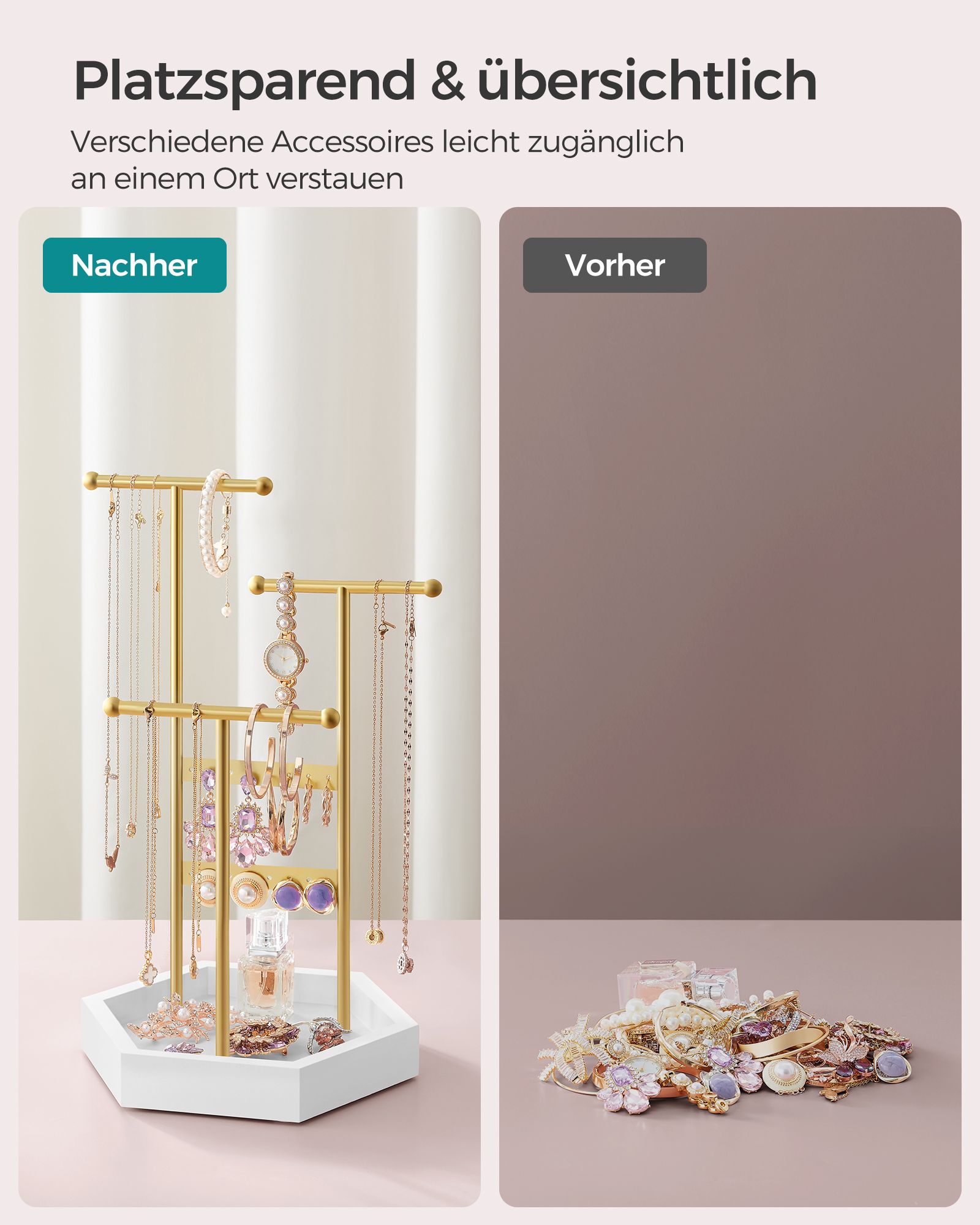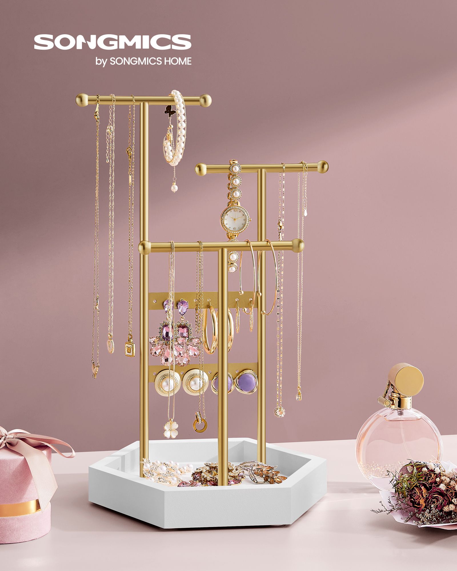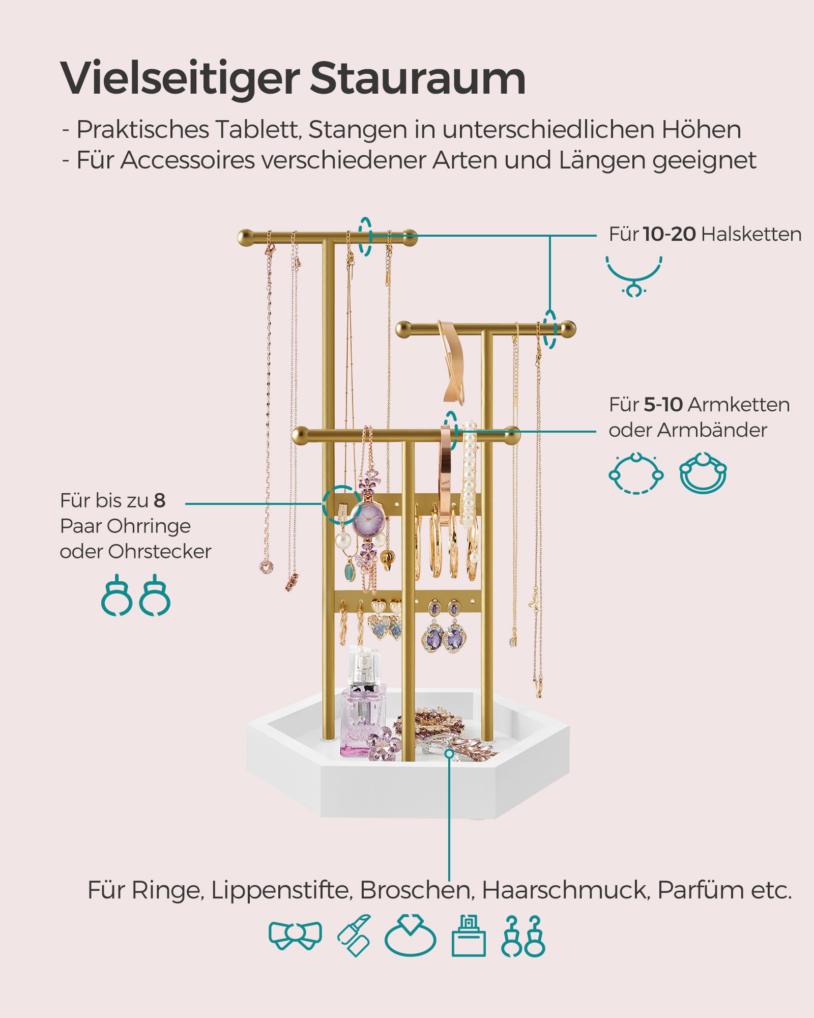 SONGMICS koruteline, koruteline, 4 erillistä osastoa, metallinen korvakoruteline, korujen säilytys kaulakoruille, rannekoruille ja korvakoruille, lahjaidea