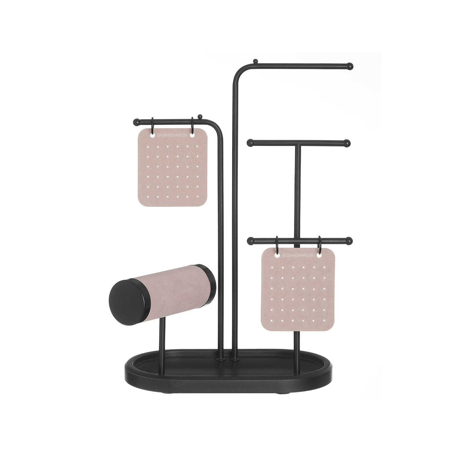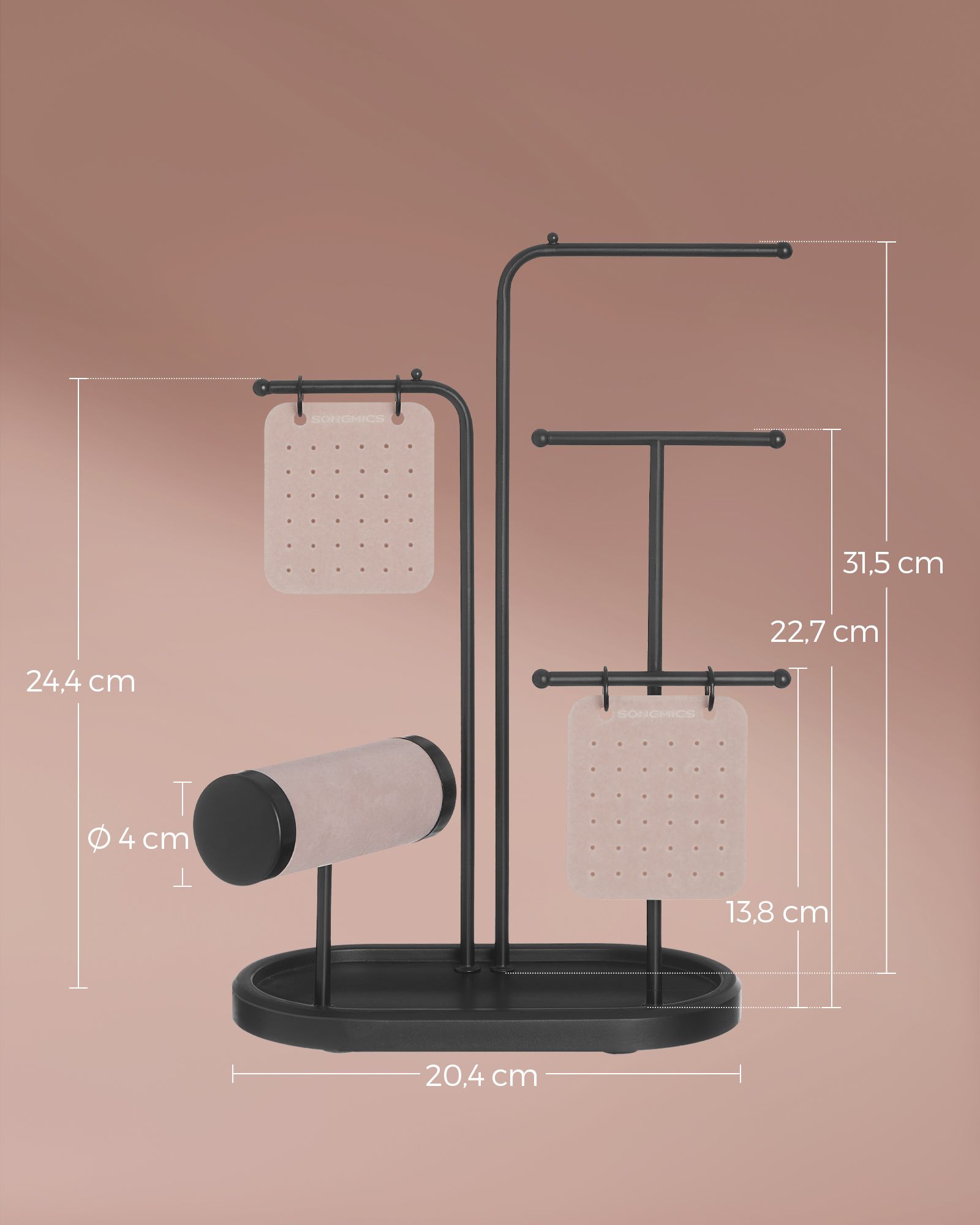SONGMICS koruteline, koruteline, korujen säilytys, metallikehys, 2 pientä korvakorujen järjestäjää, 4 ripustustankoa, ketjuteline, korvakoruihin, rannekoruille, sormuksiin
