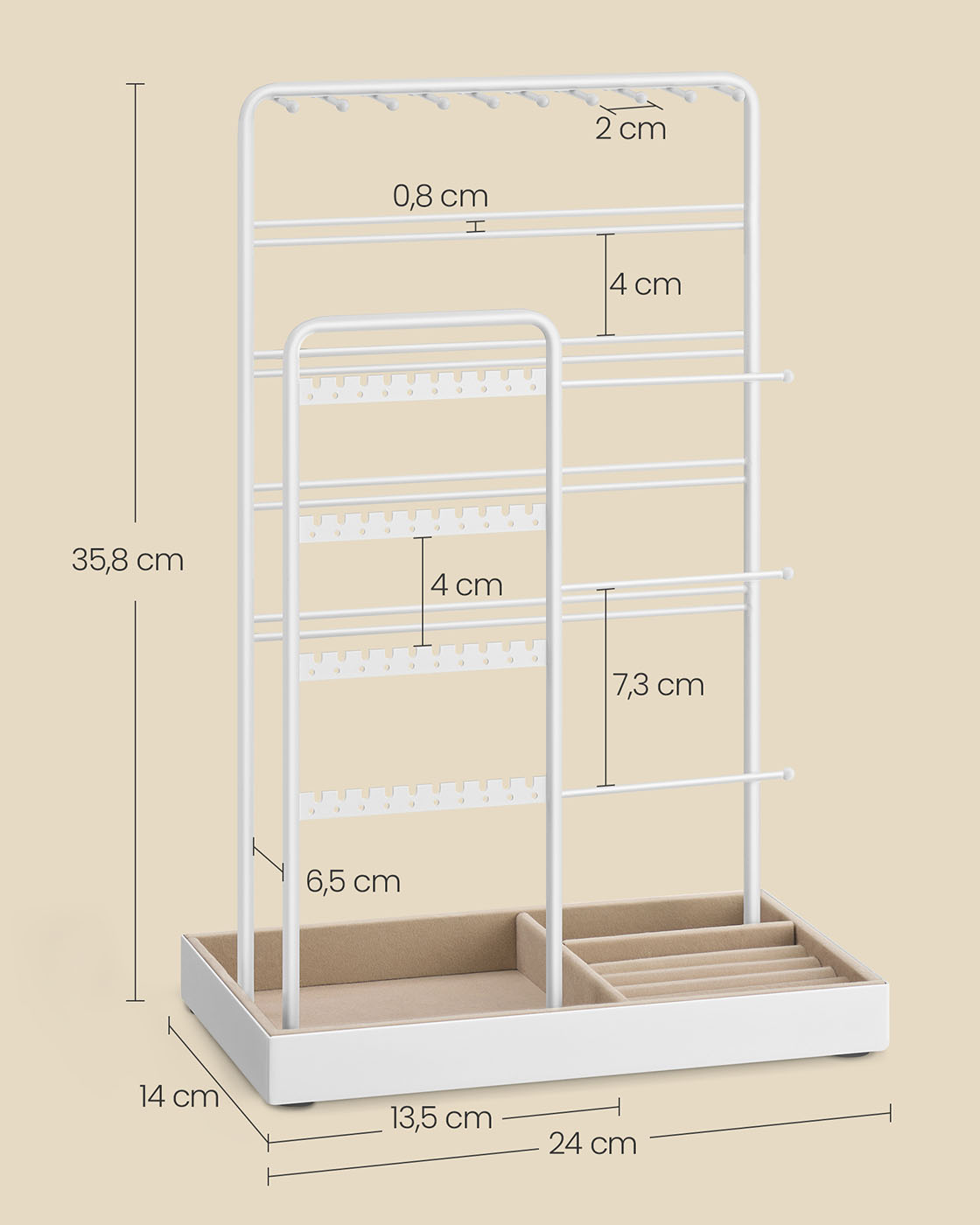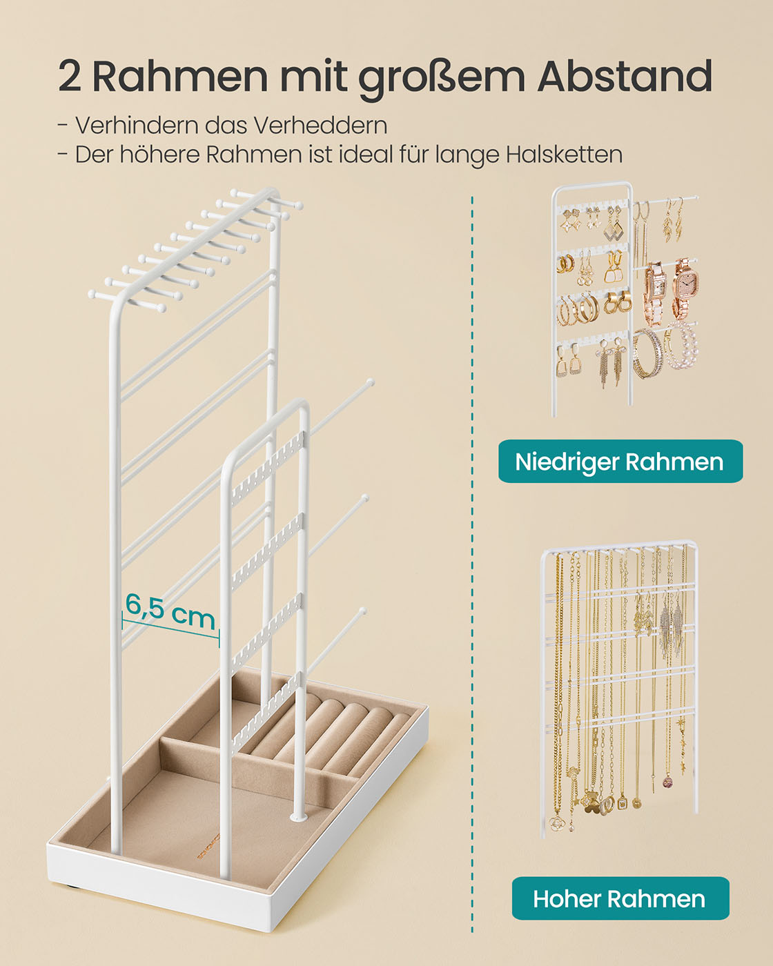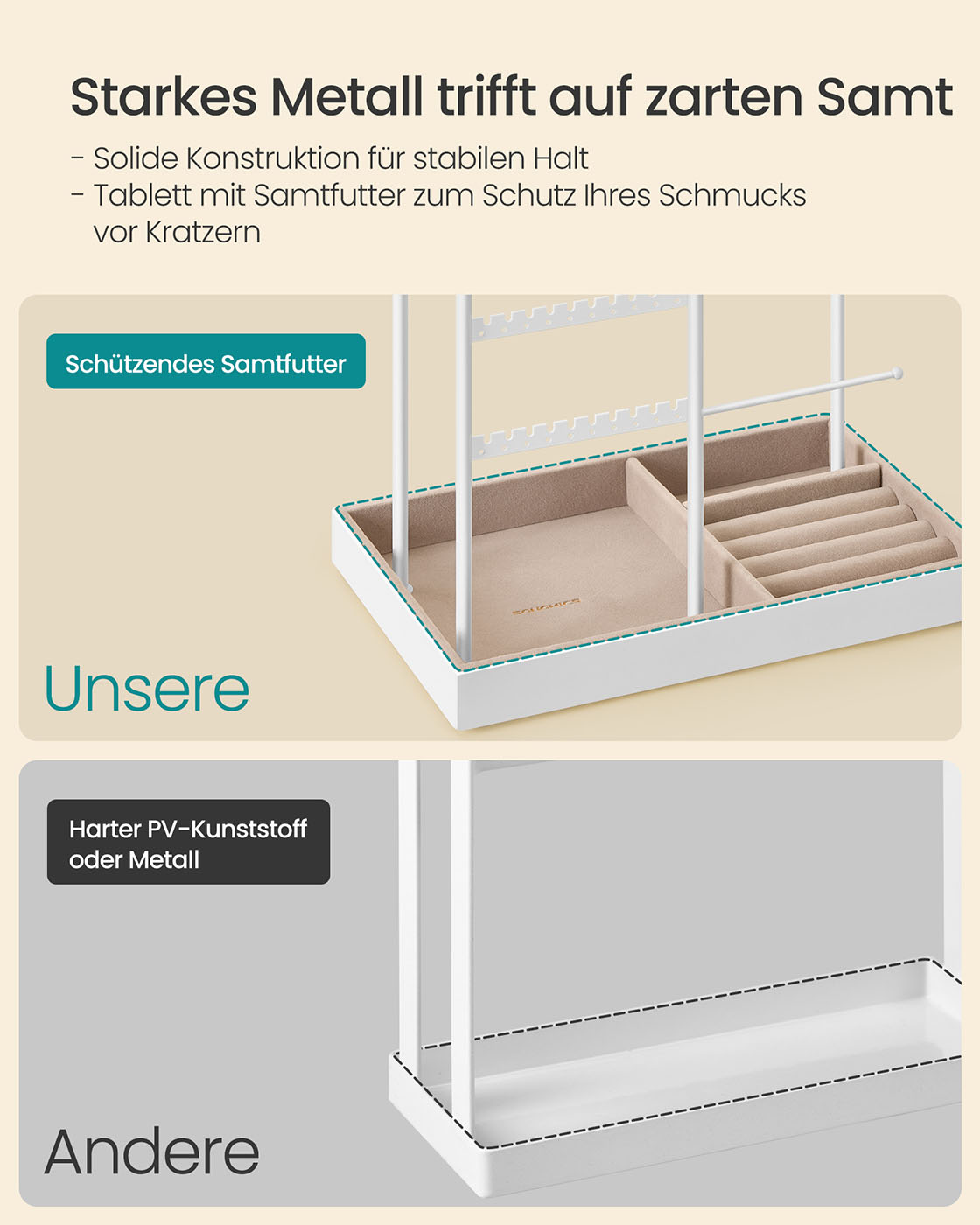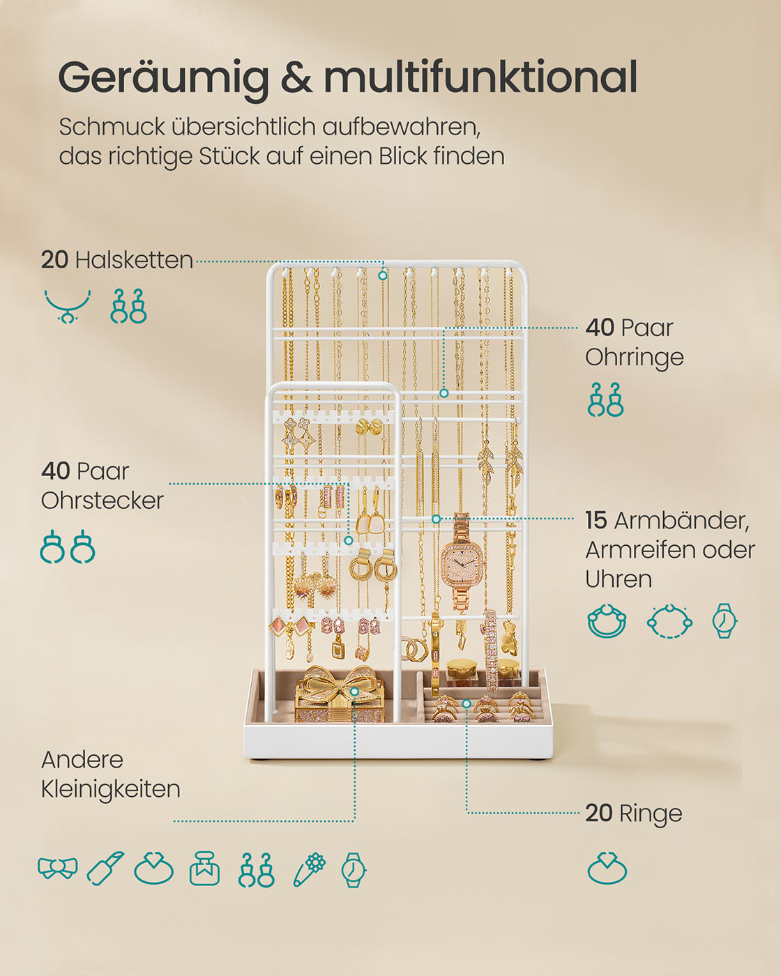 SONGMICS koruteline, koruteline, metallikehys, koruteline sametti, korujen säilytys kaulakoruille, rannekoruille, korvakoruille, korvakorupinnoille, sormuksille, lahjaidea, vaaleankultainen-kamelinruskea JJS028A01