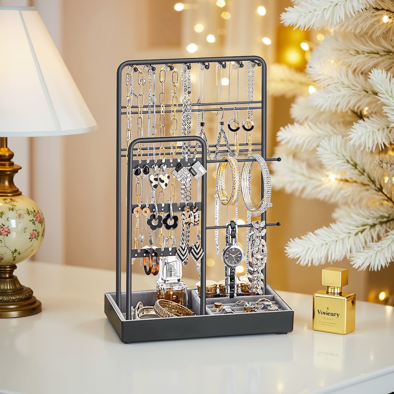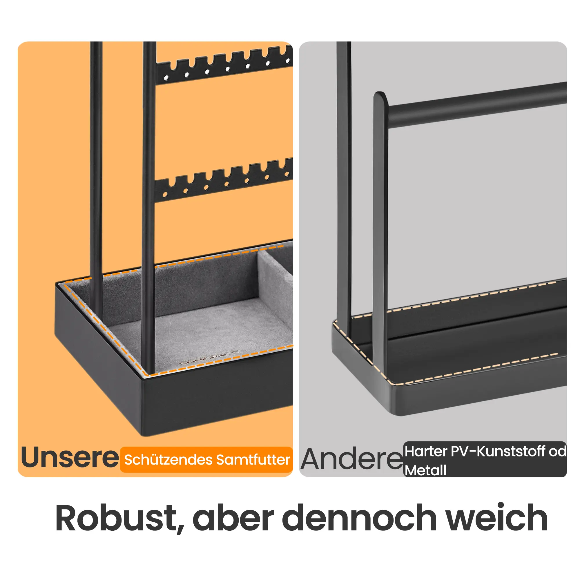 Koruteline, koruteline, koruteline sametti, korujen säilytys kaulakorut rannekorut korvakorut korvakorut sormukset, mattavalkoinen