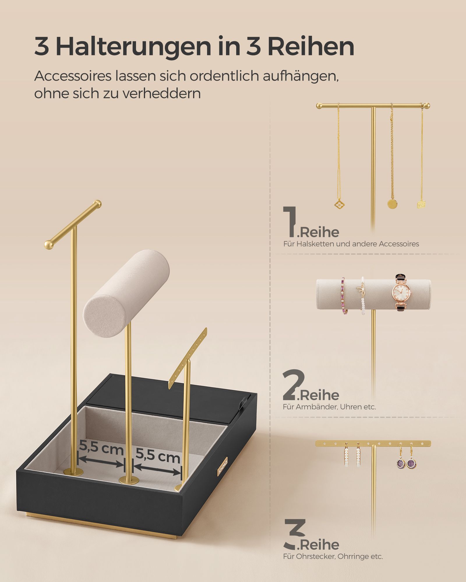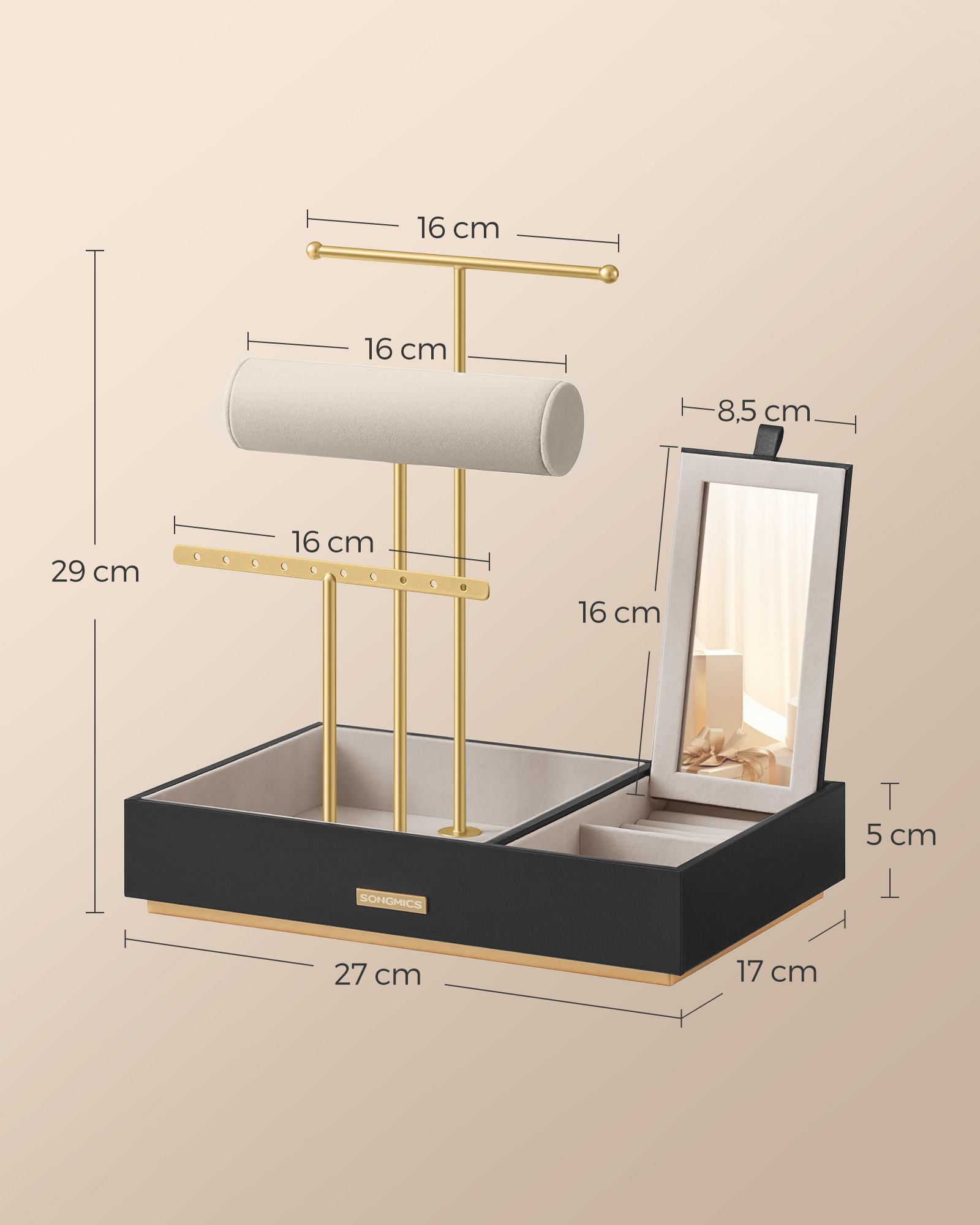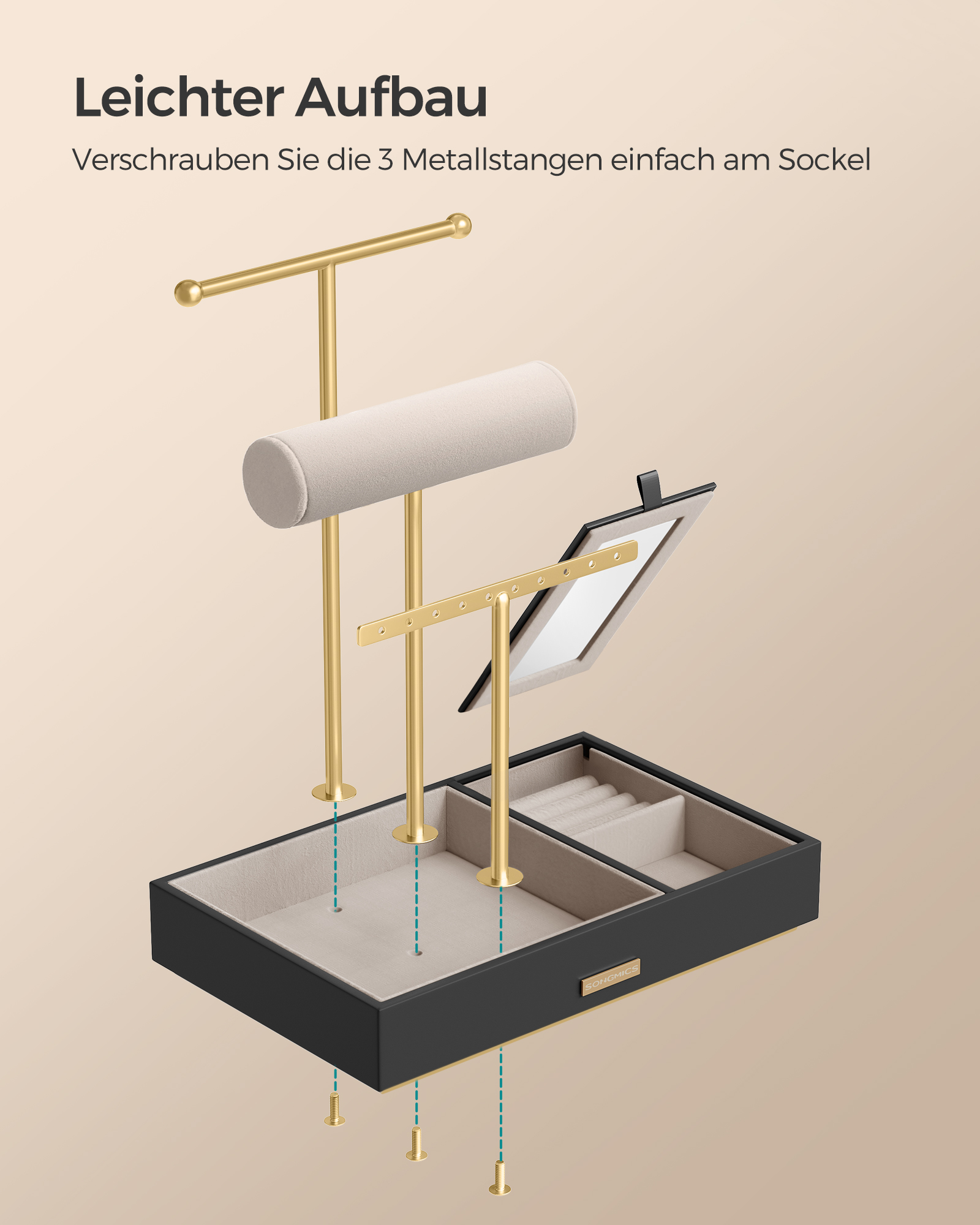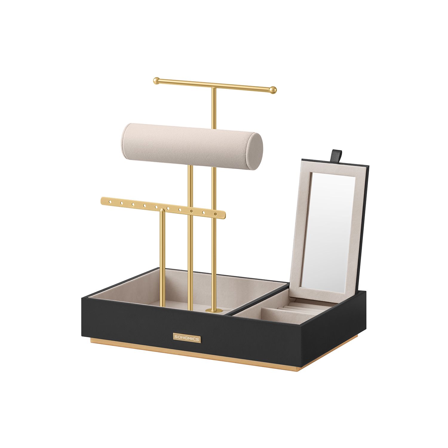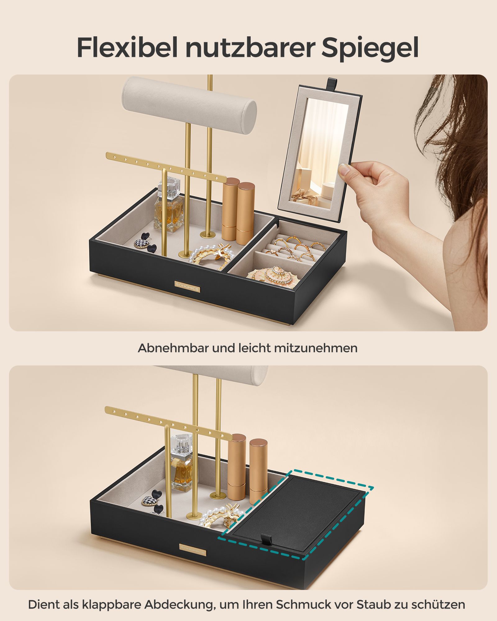 SONGMICS koruteline, koruteline, korvakoruteline metalli, koruteline peilillä, korujen säilytys kaulakoruille, rannekoruille, korvakoruille, sormuksille, lahjaidea