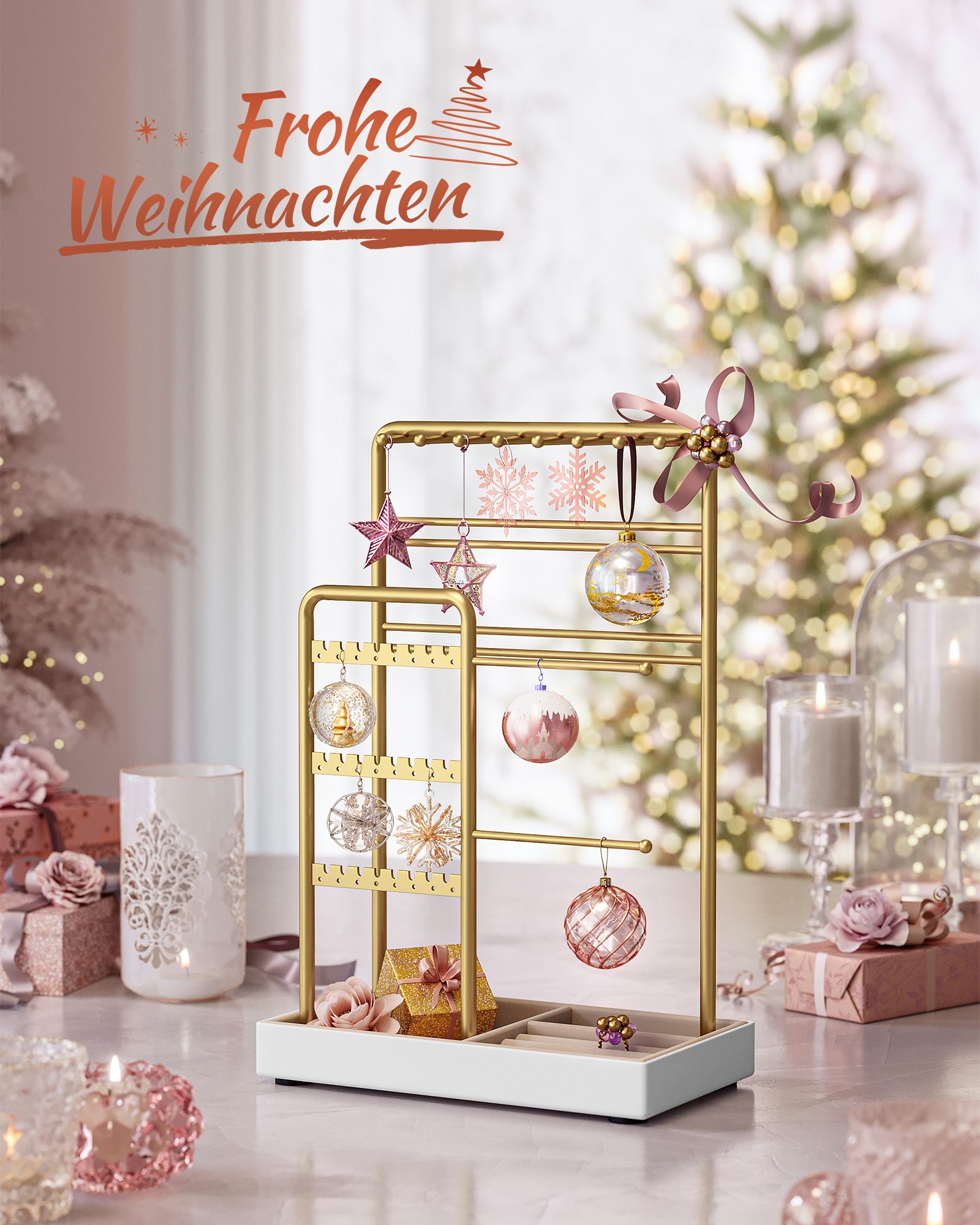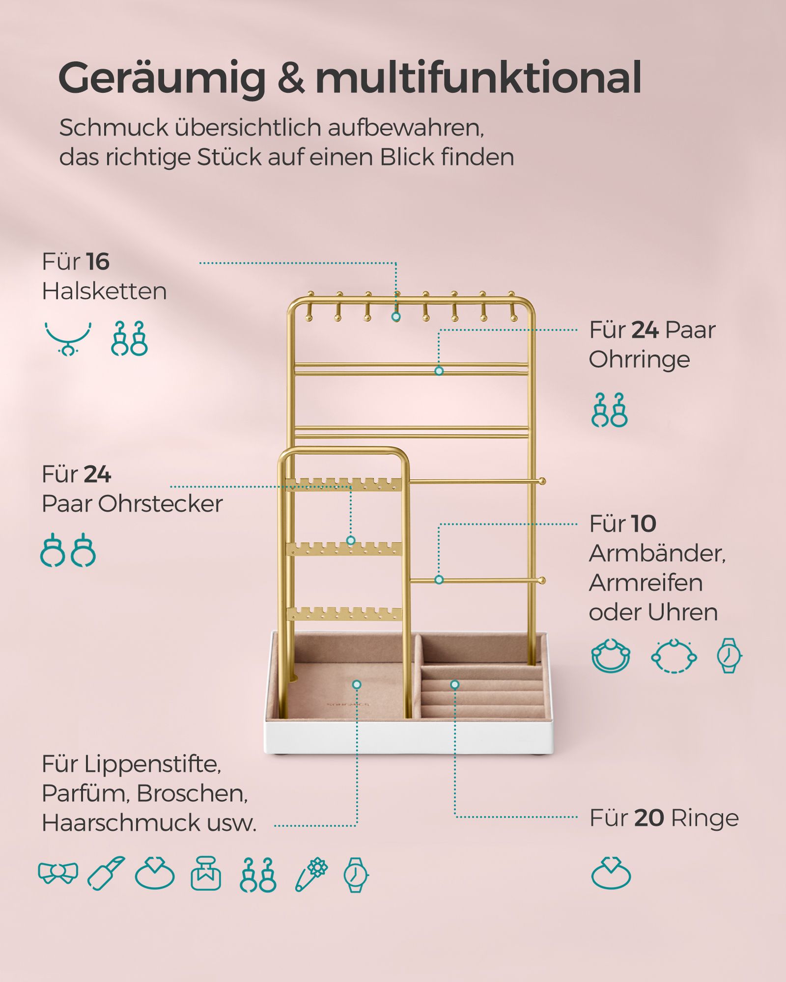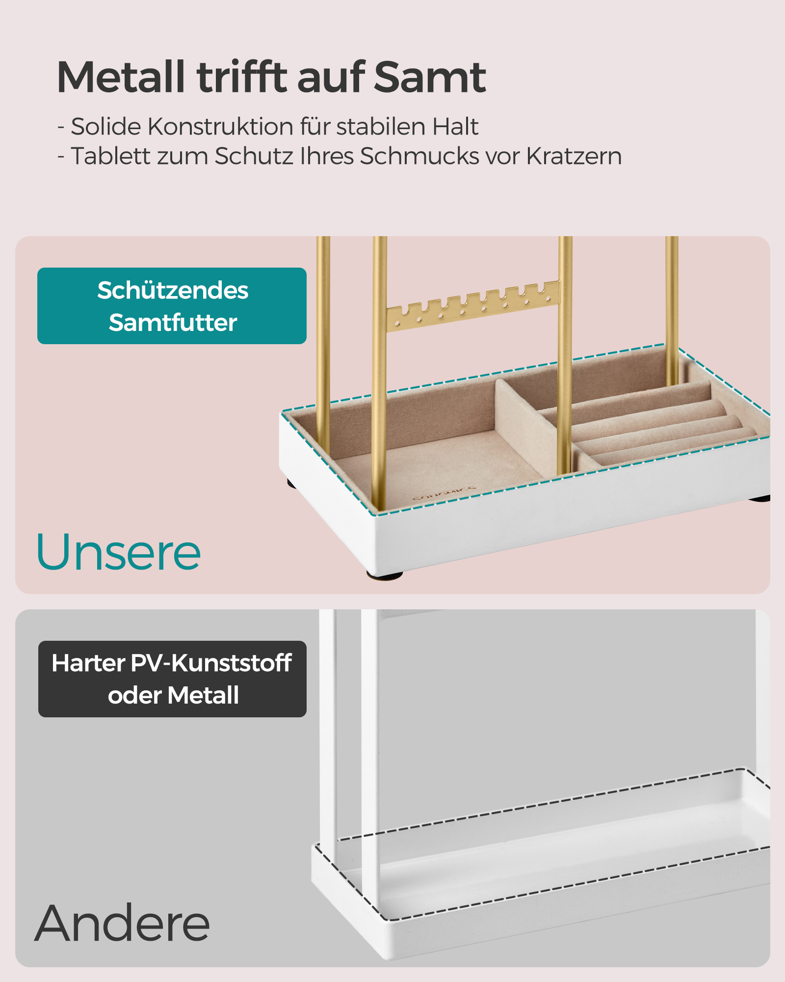 SONGMICS koruteline, koruteline, metallikehys, koruteline sametti, korujen säilytys kaulakoruille, rannekoruille, korvakoruille, nappikorvakoruille, sormuksille