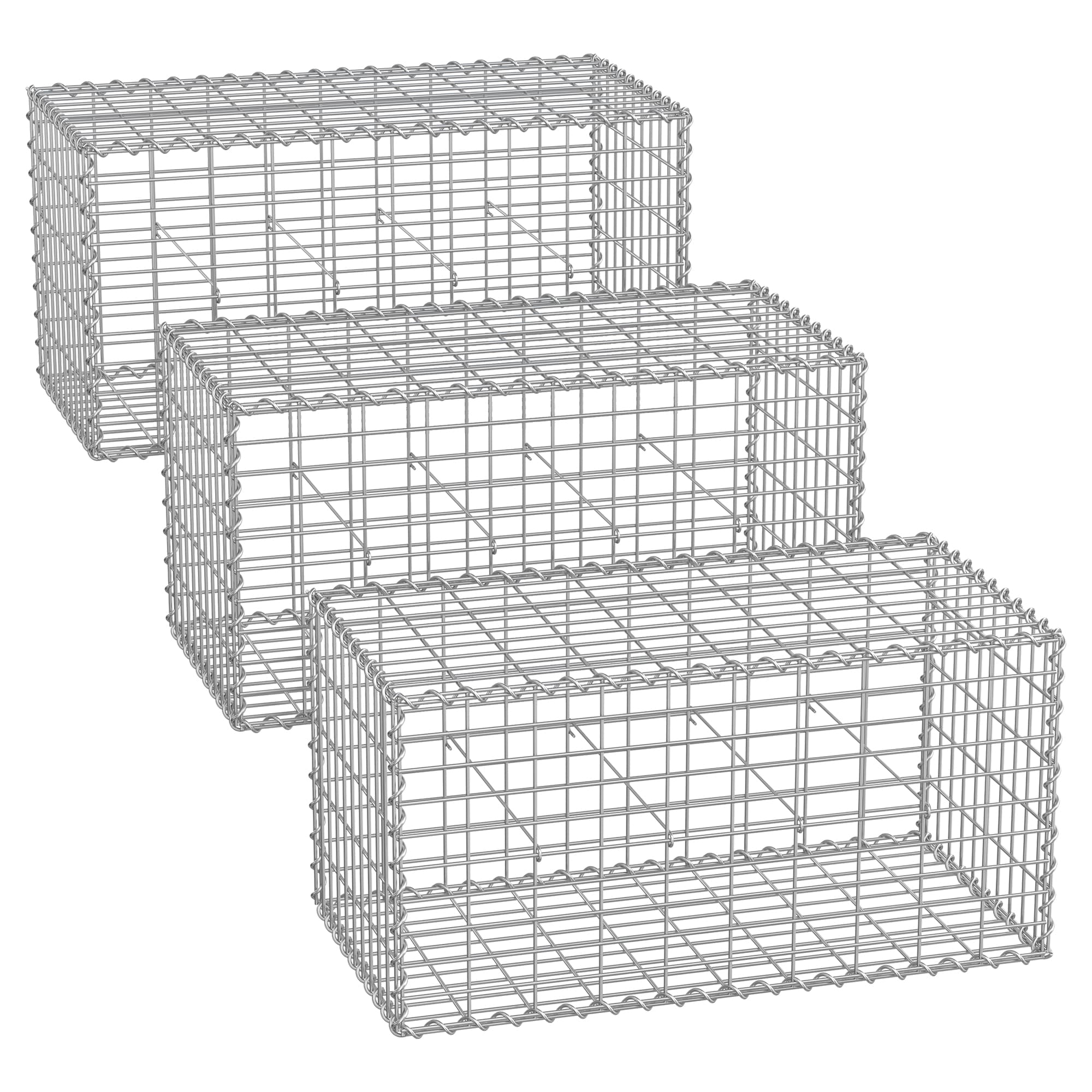 Gabionikori, metallinen kivikori, silmäkoon 5 x 10 cm, muurauskiville, galvanoitu, kivigabionimuuri, 100 x 50 x 50 cm, hopea