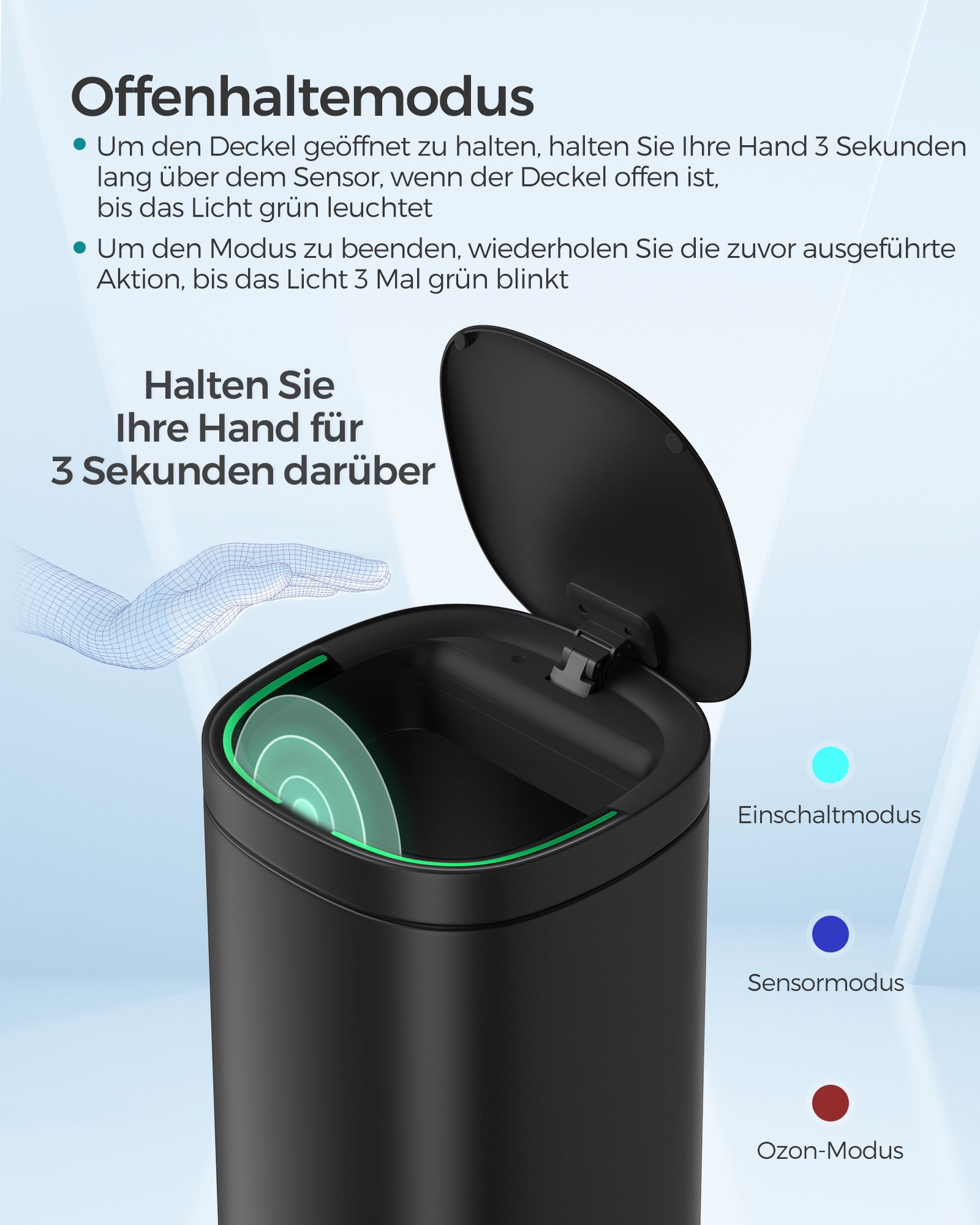 SONGMICS liiketunnistimella varustettu roskakori, automaattinen 50 litran keittiöroskakori, monivärinen merkkivalo, hajunpoisto otsonilla, kansi, jossa on auki-pitävä toiminto